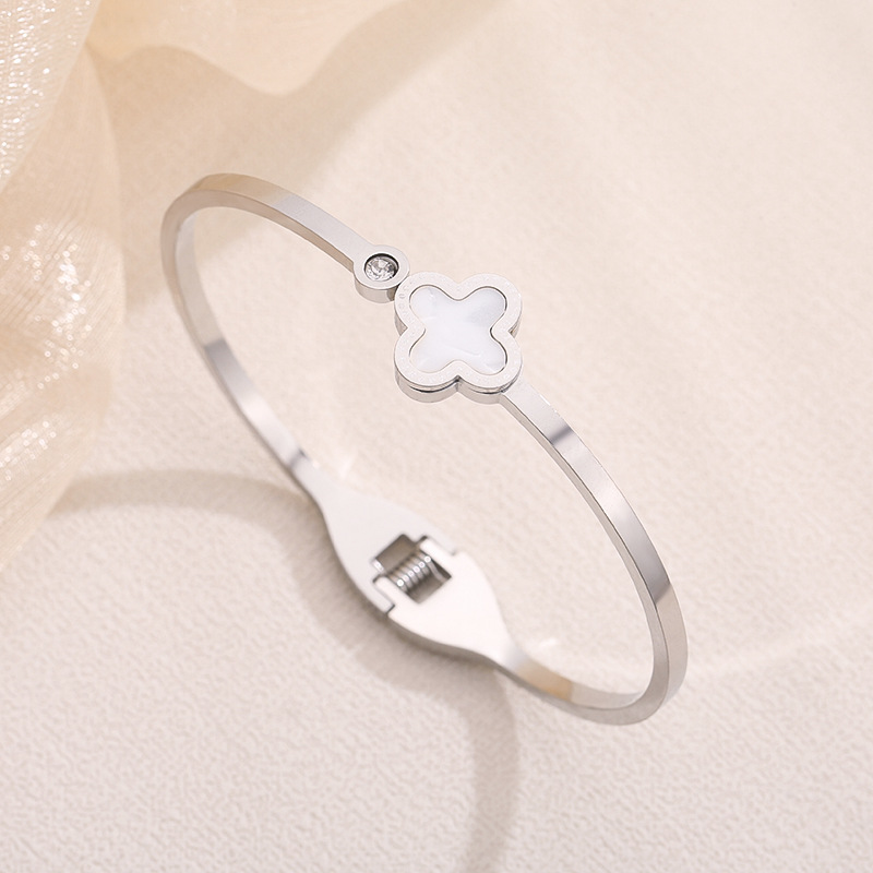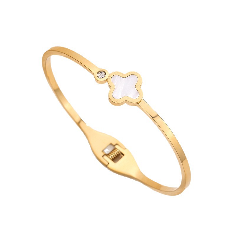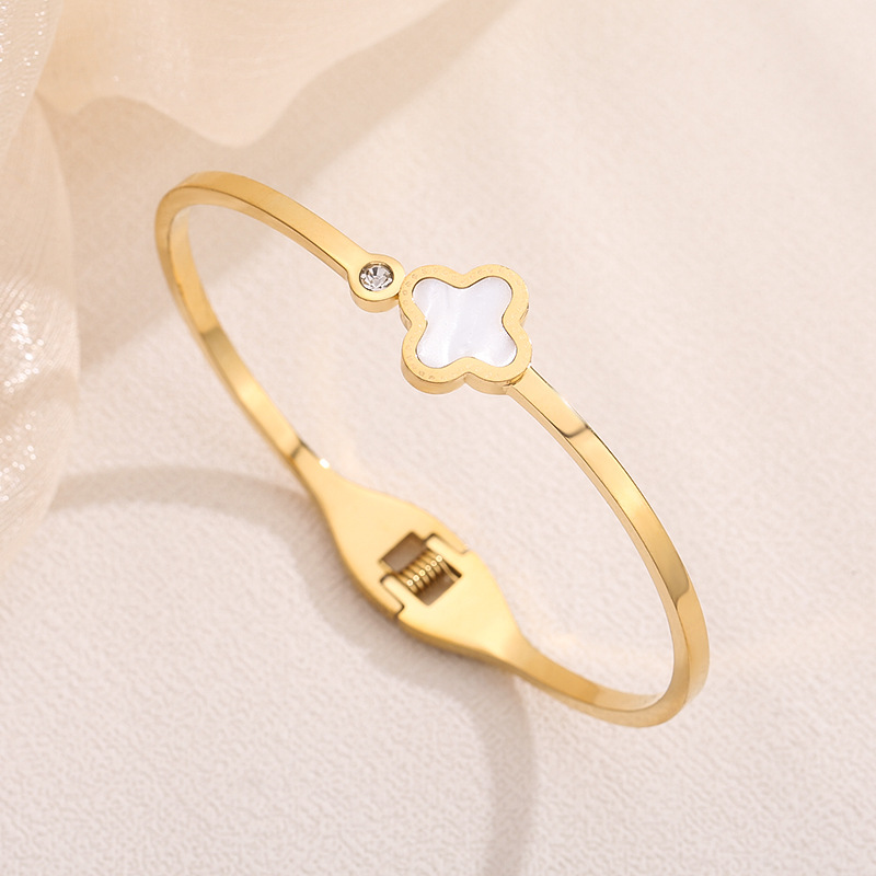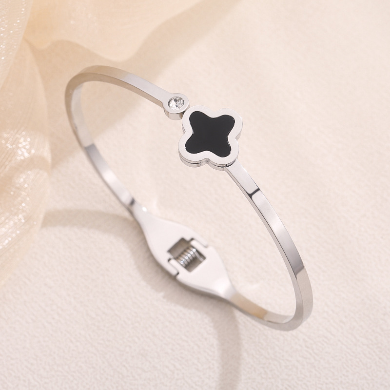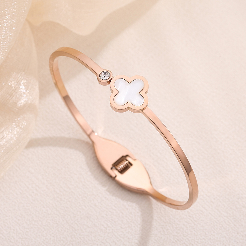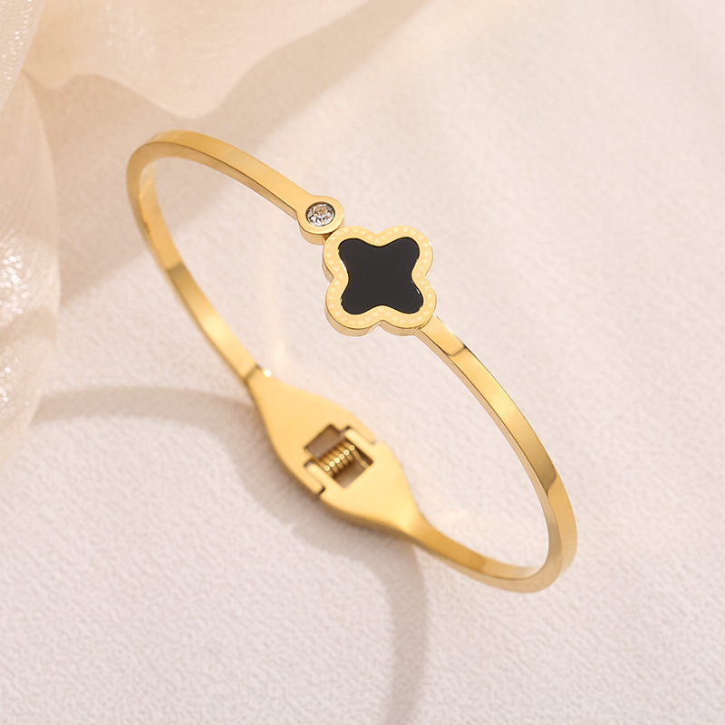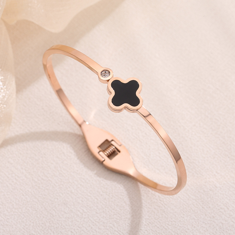 经典四叶草镶钻手镯钛钢女轻奢不掉色配饰简约时尚饰品轻奢风