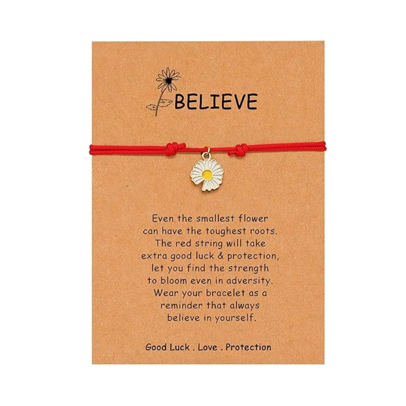跨境励志饰品BELIEVE 小雏菊红绳手链 可调节幸运祈福手绳