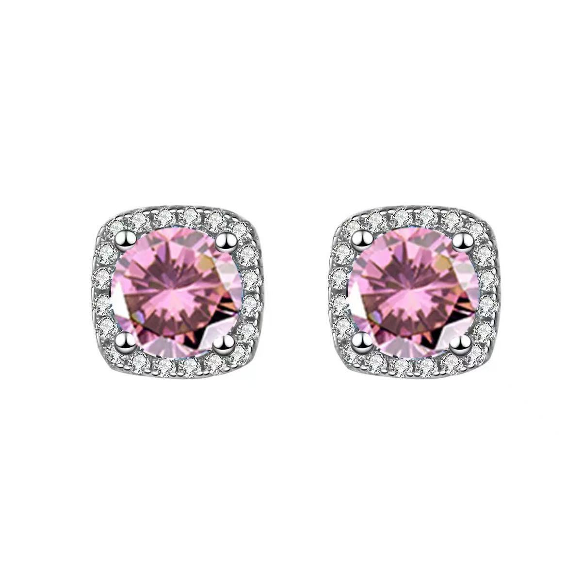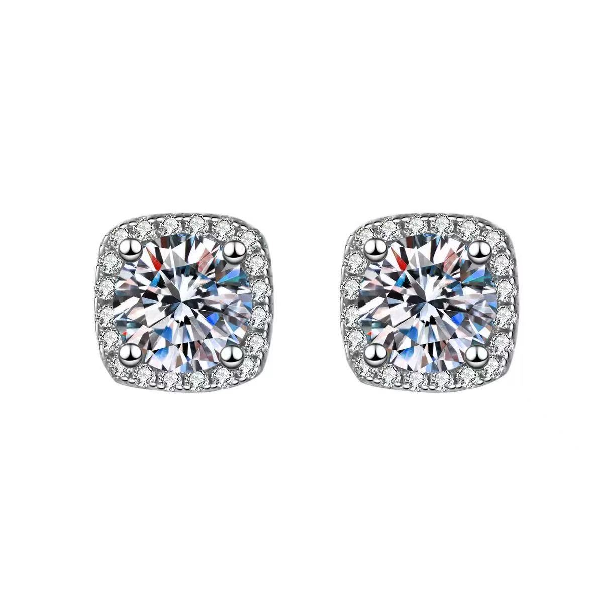 韩版方包微镶50分一克拉钻石女款耳钉套装首饰品耳环女士耳针