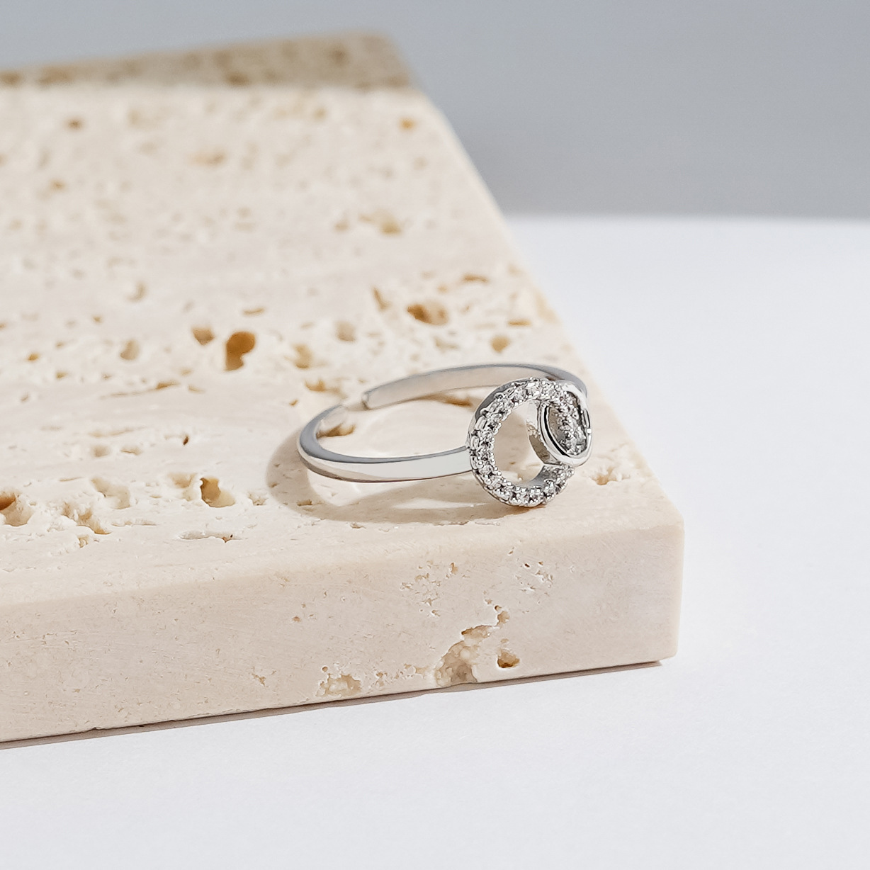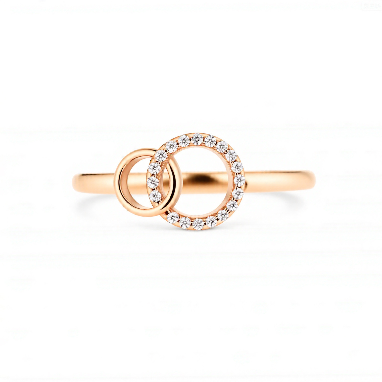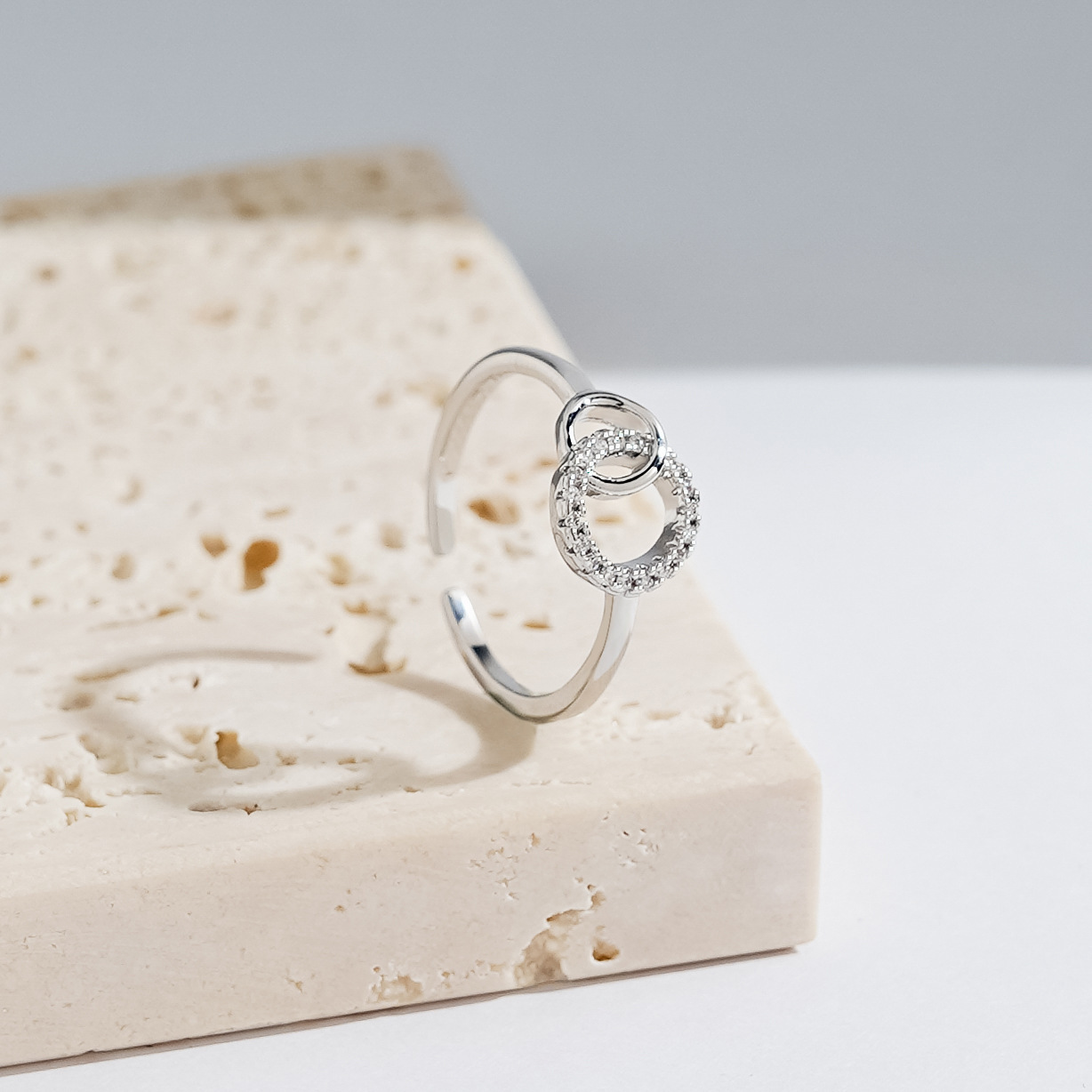 跨境热销双圆环相扣戒指女轻奢小众时尚欧美潮百搭镶钻手饰品批发