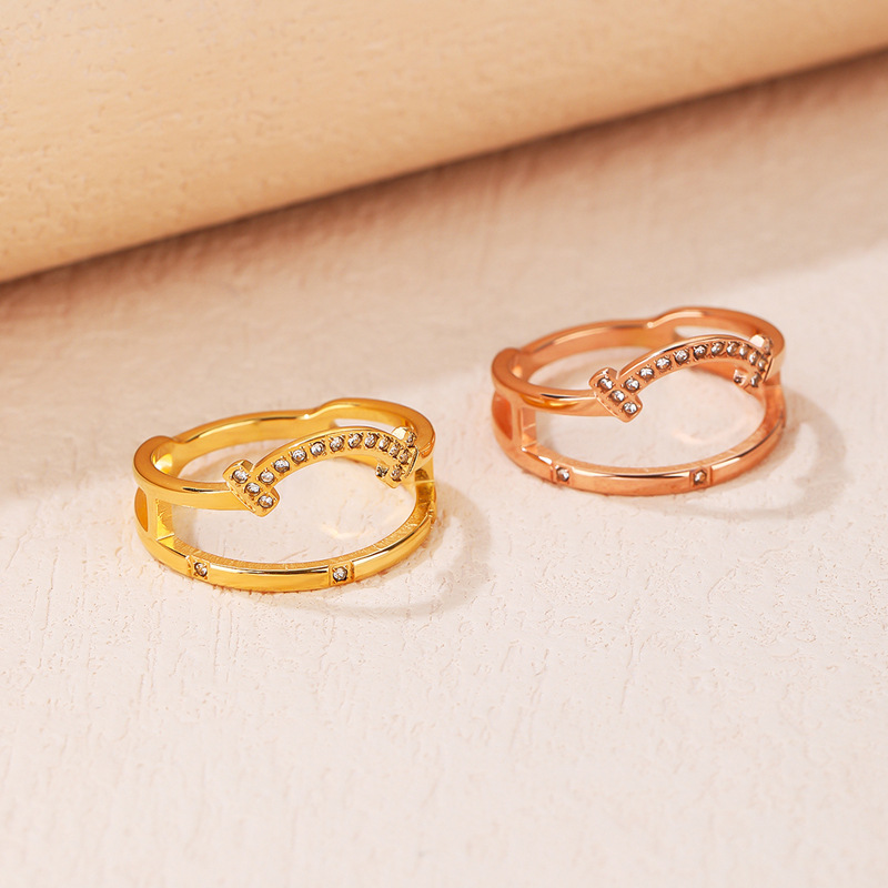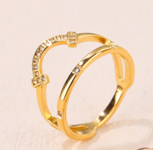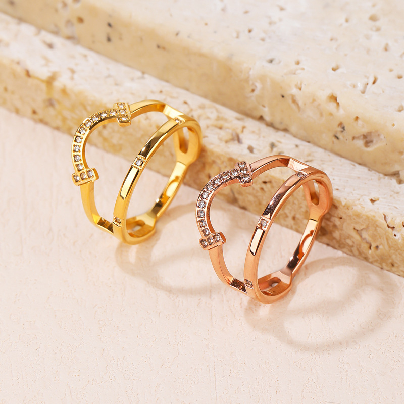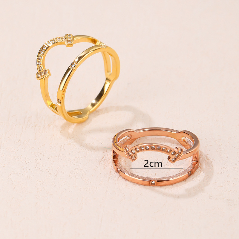 韩版轻奢钛钢戒指女设计感小众简约镶钻镂空气质网红ins潮流饰品