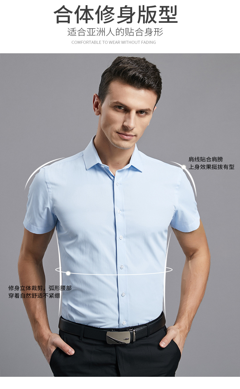 夏季男士商务青年短袖衬衫办公室上班职业装工作服棉白衬衣免打理
