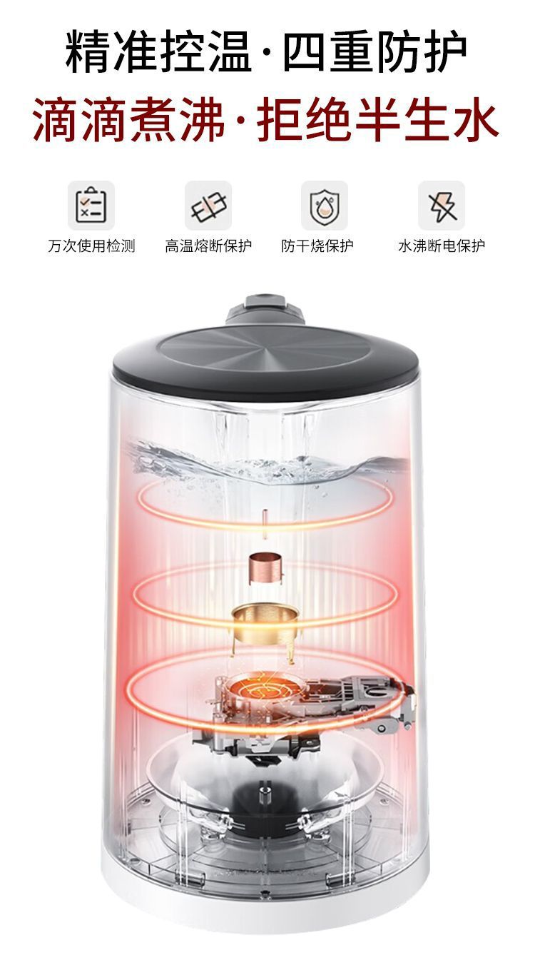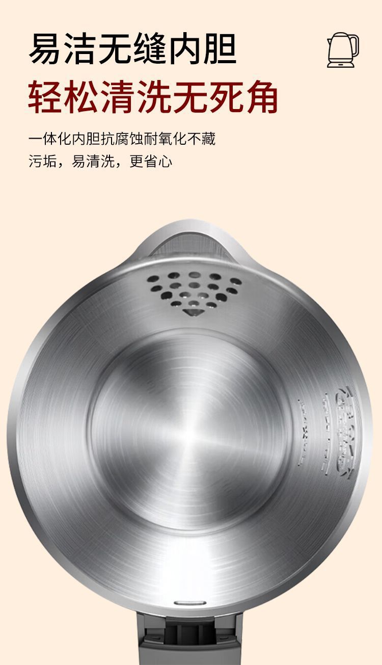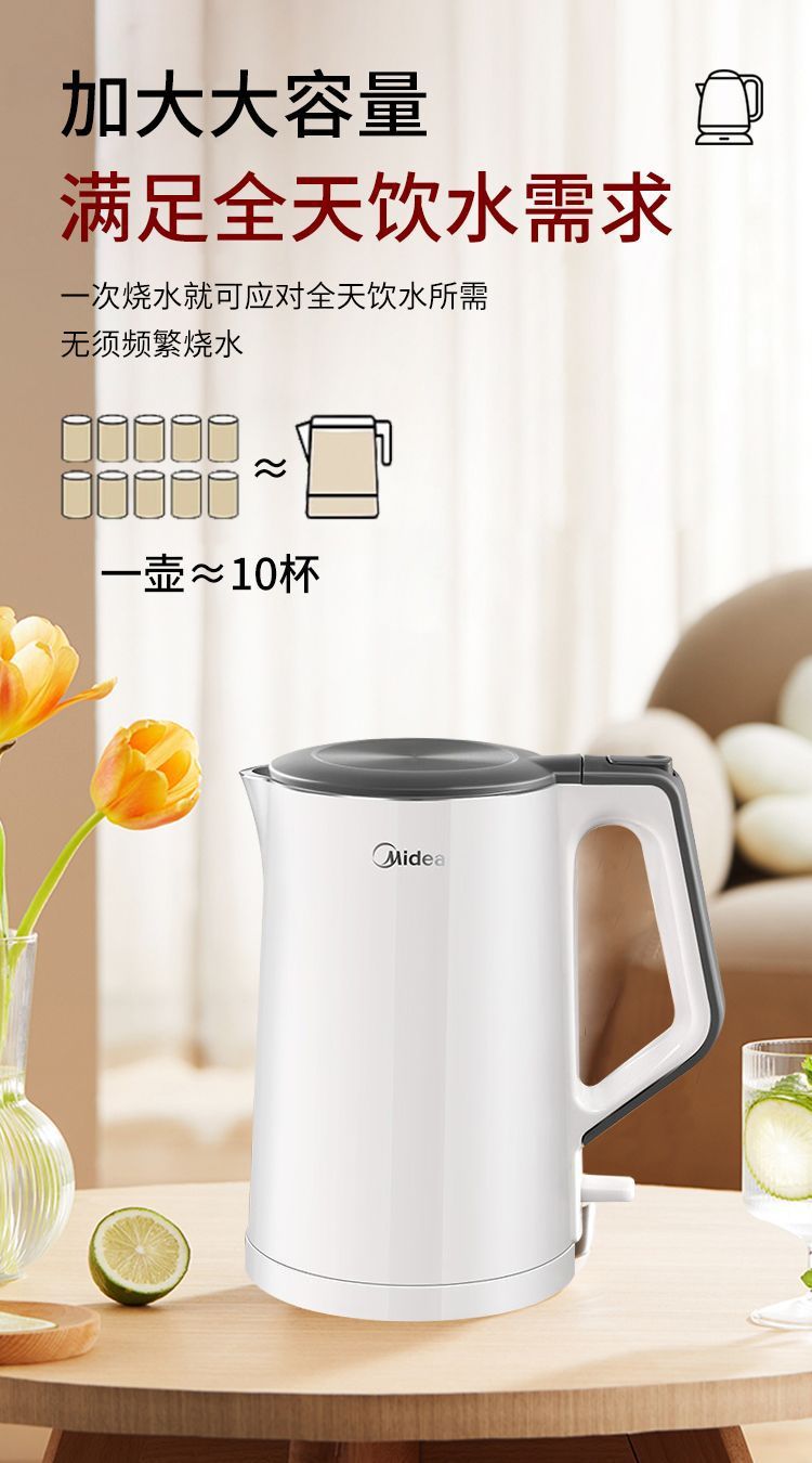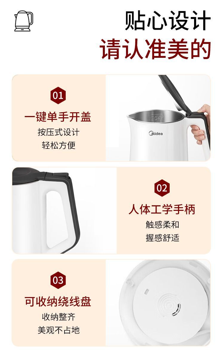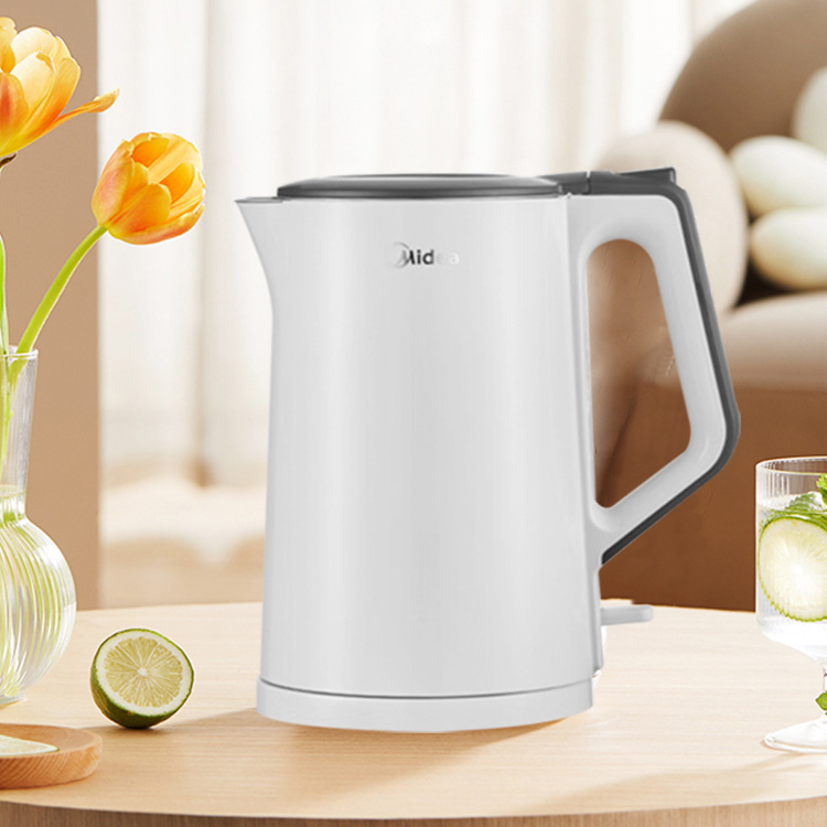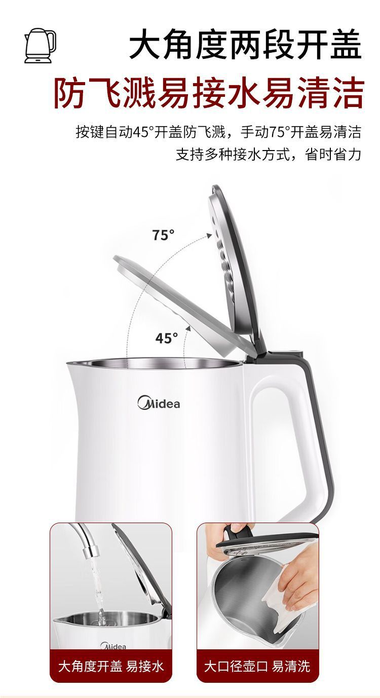 美的电热水壶家用烧水壶无缝一体内胆双层防烫烧水快速壶小型304