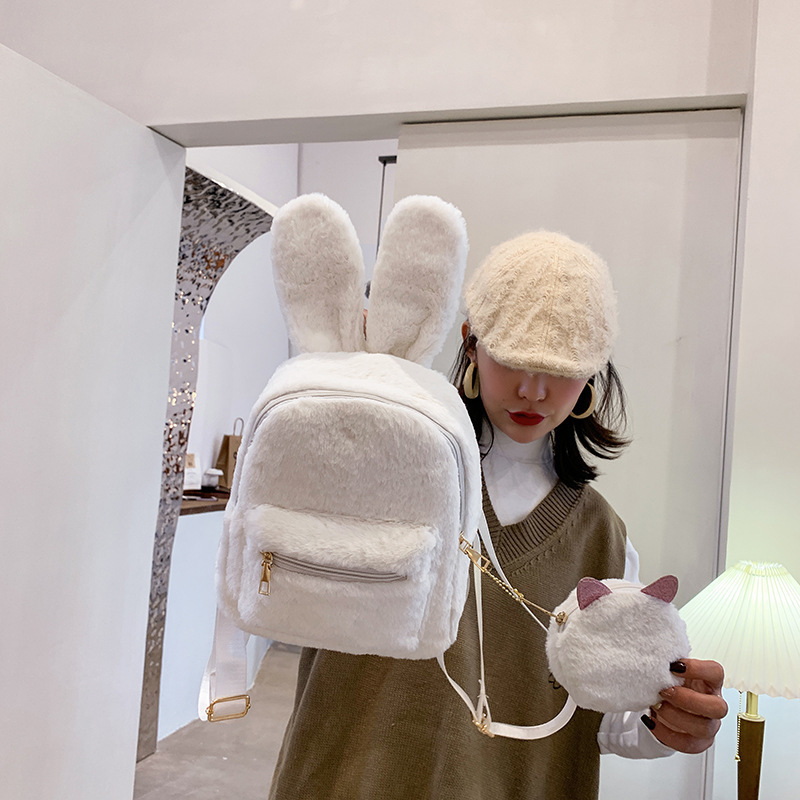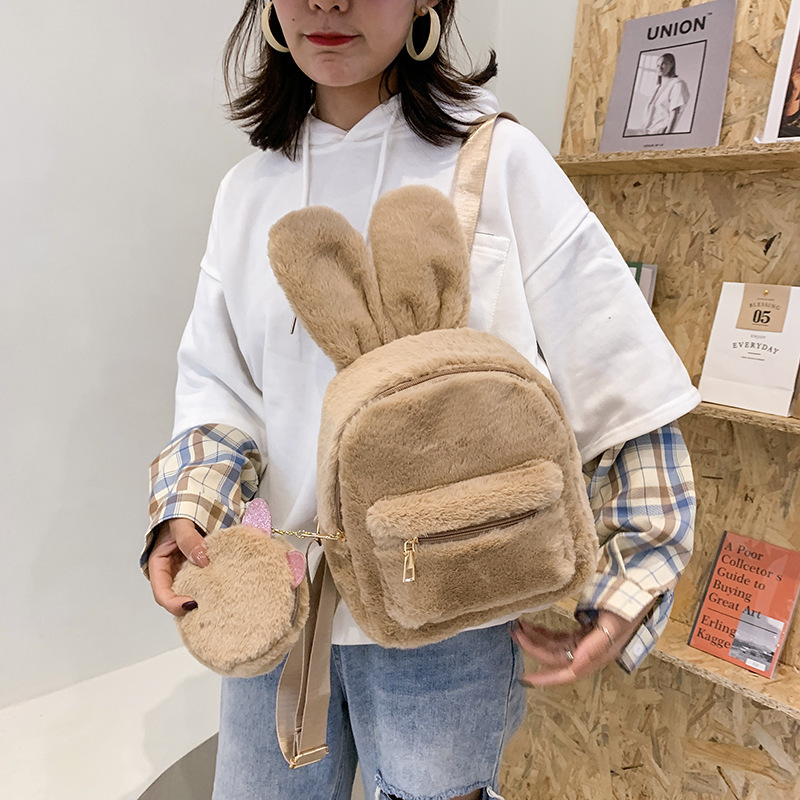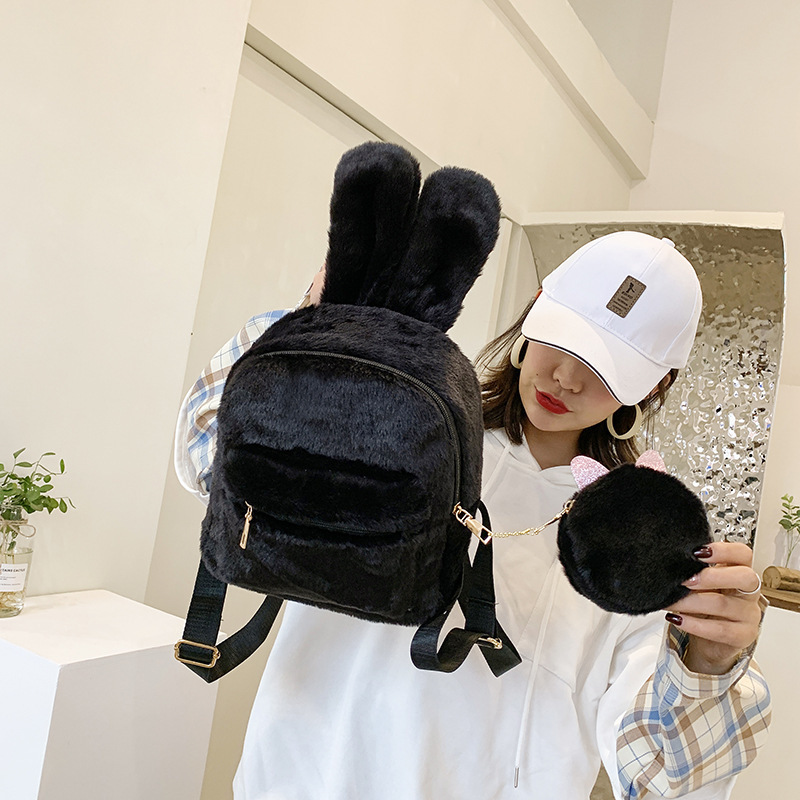 毛绒双肩包学生韩版可爱2026秋冬款迷你毛毛小背包外出时尚女包