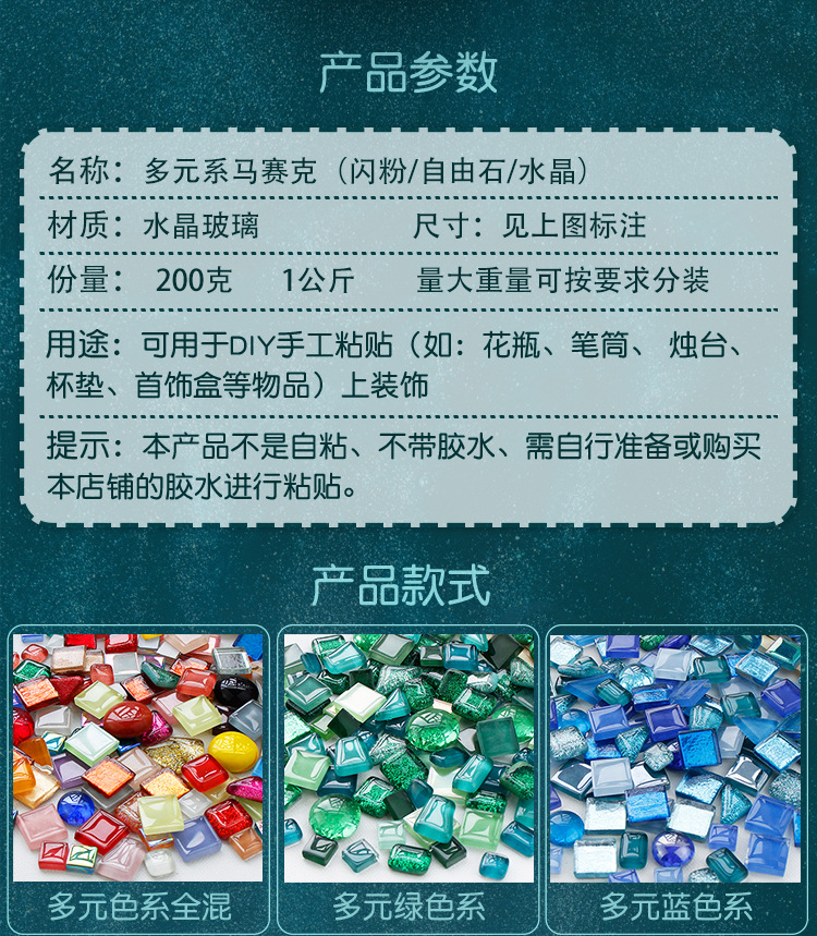 200克diy多元闪粉马赛克亮粉水晶自由石贴片儿童手工材料颗粒瓷砖