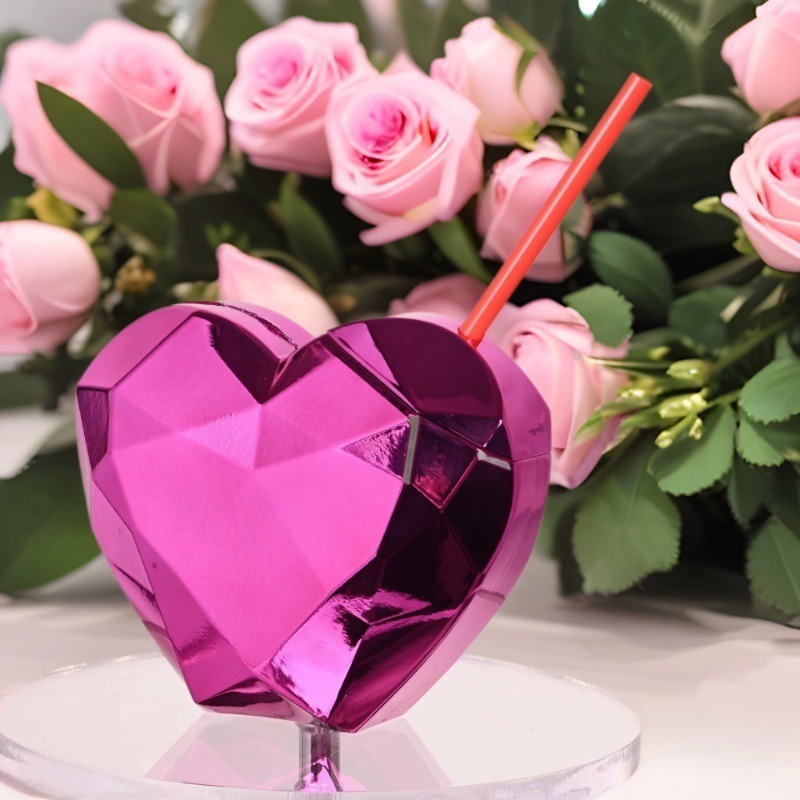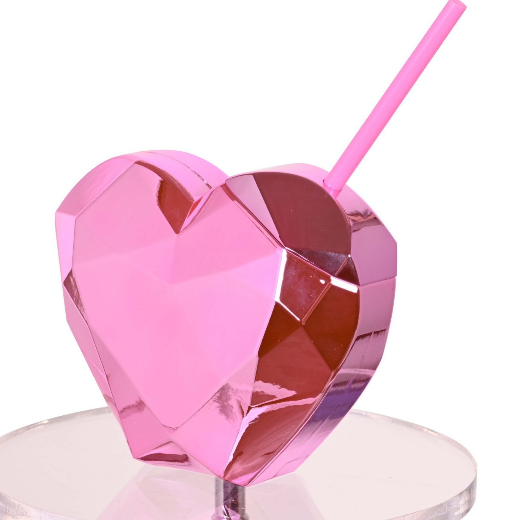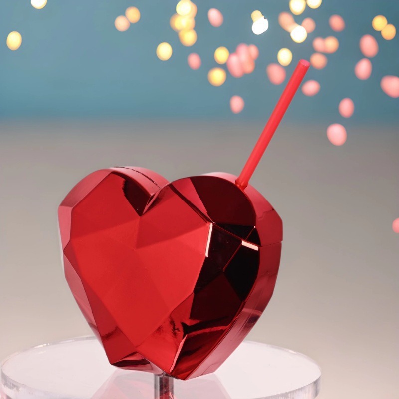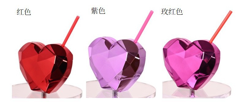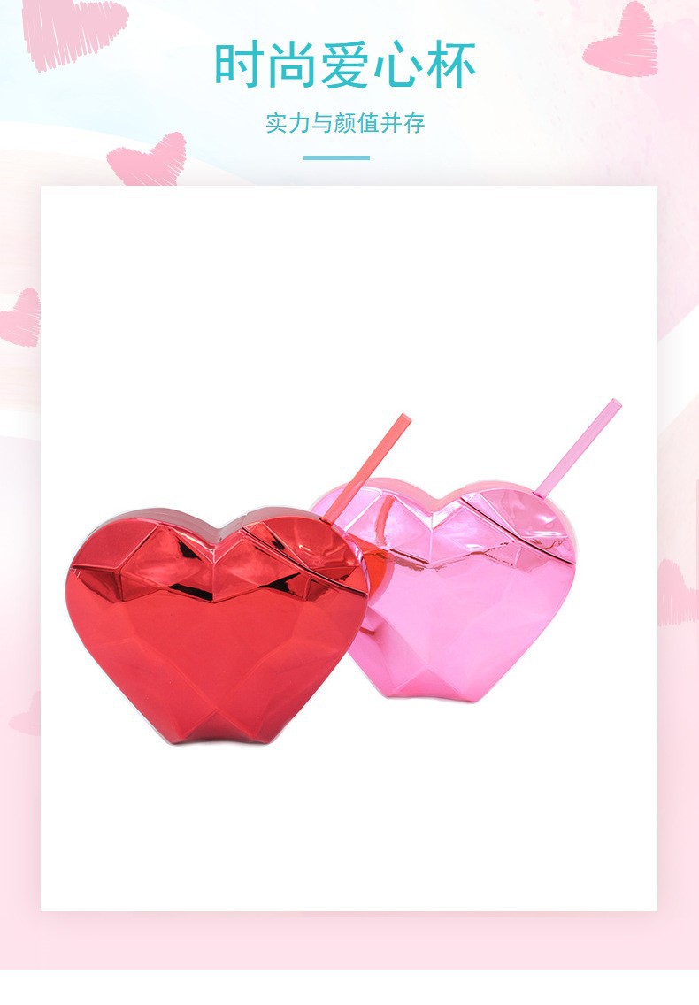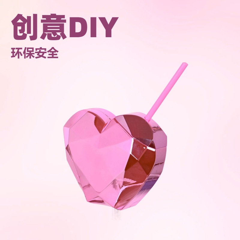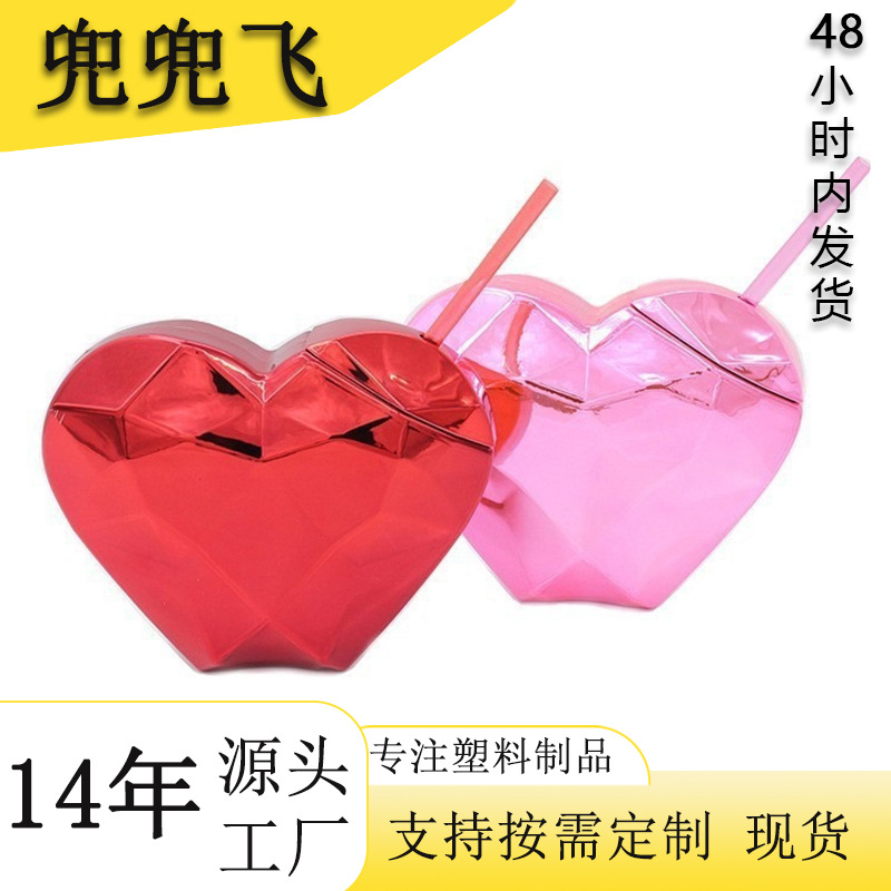 定制跨境爆款20OZ电镀爱心心形杯塑料吸管disco迪士科异形杯