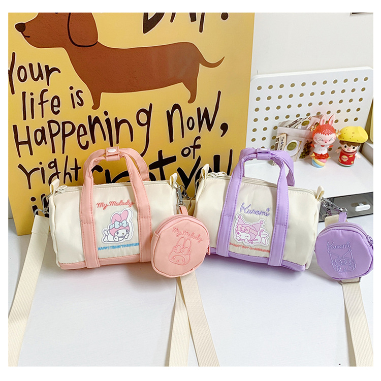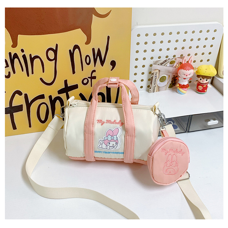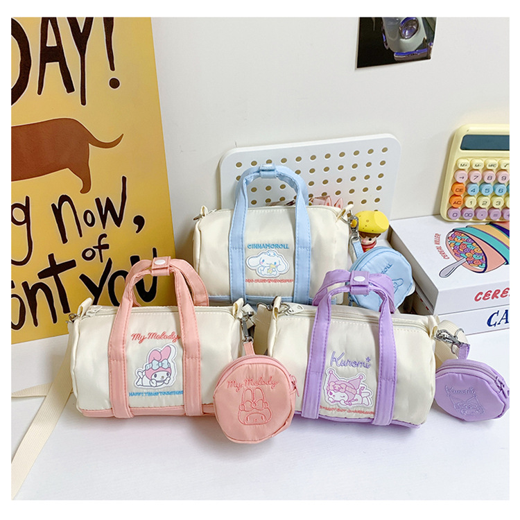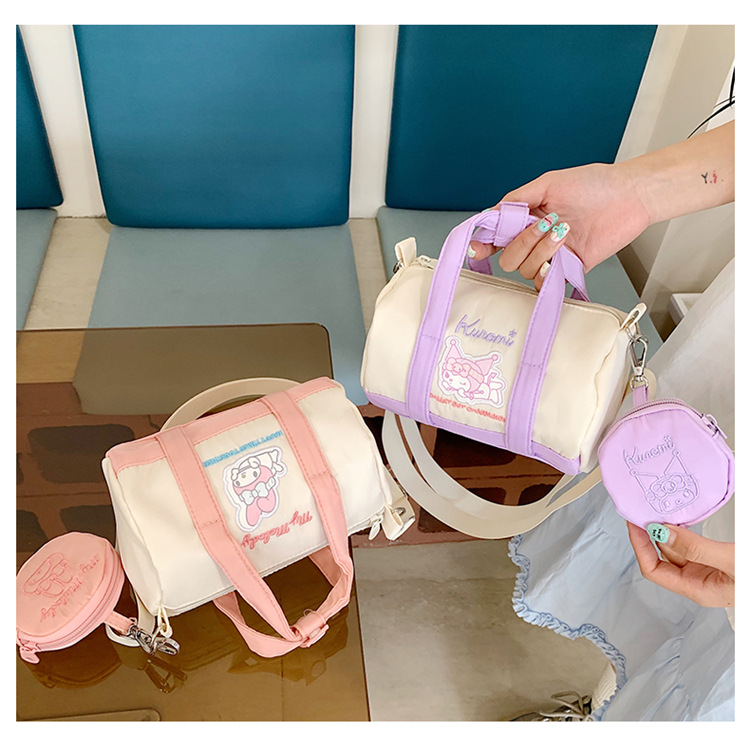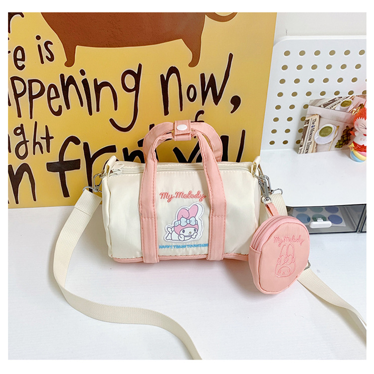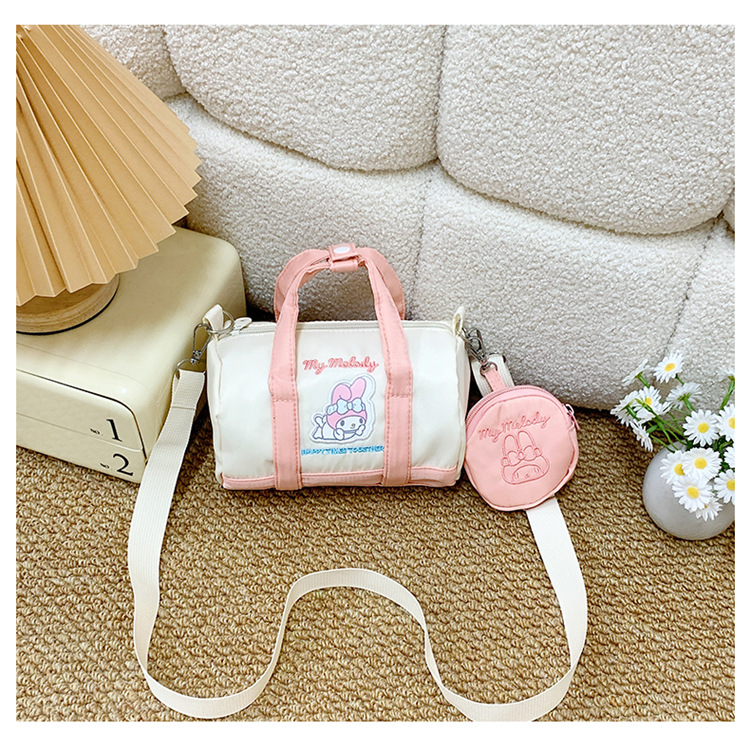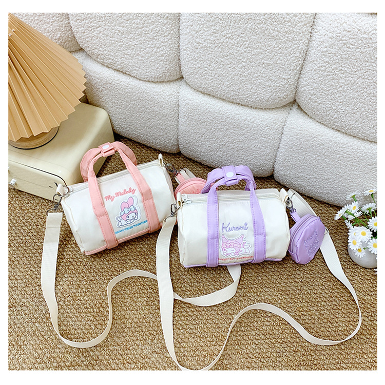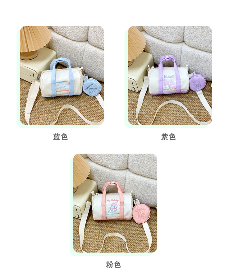 新款单肩圆筒包大容量简约百搭斜挎包卡通库洛米手提包女儿童包