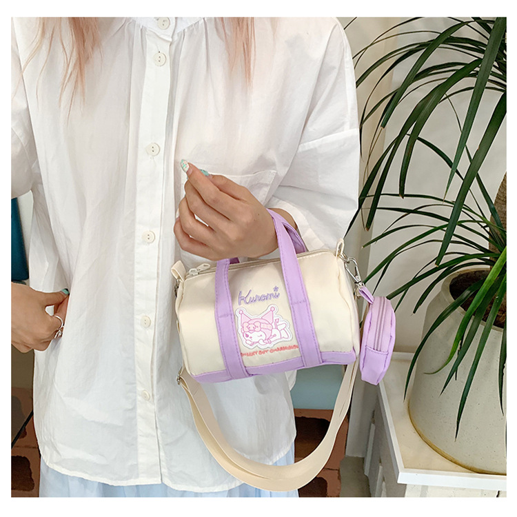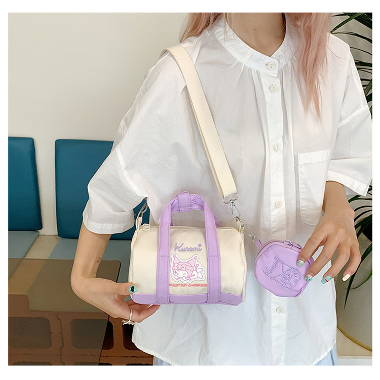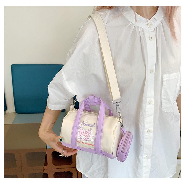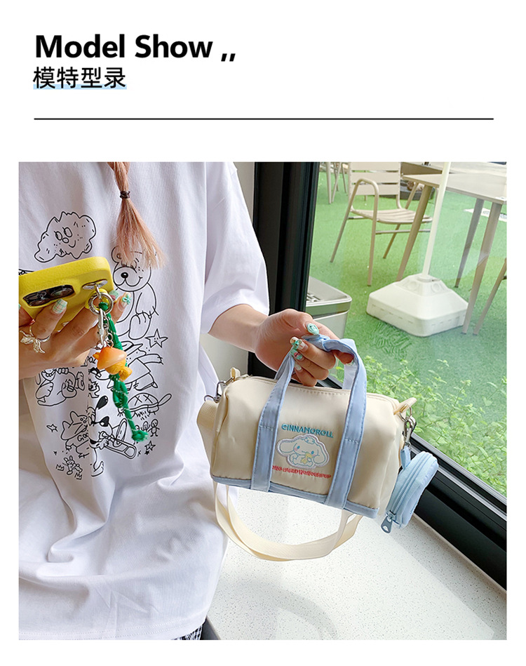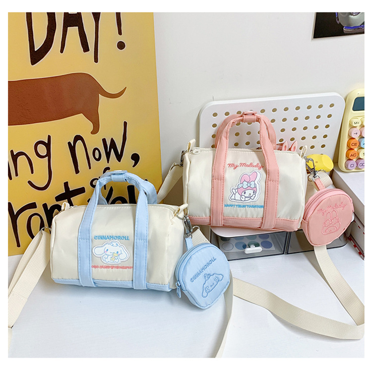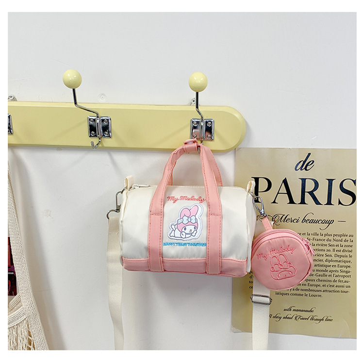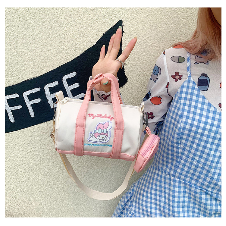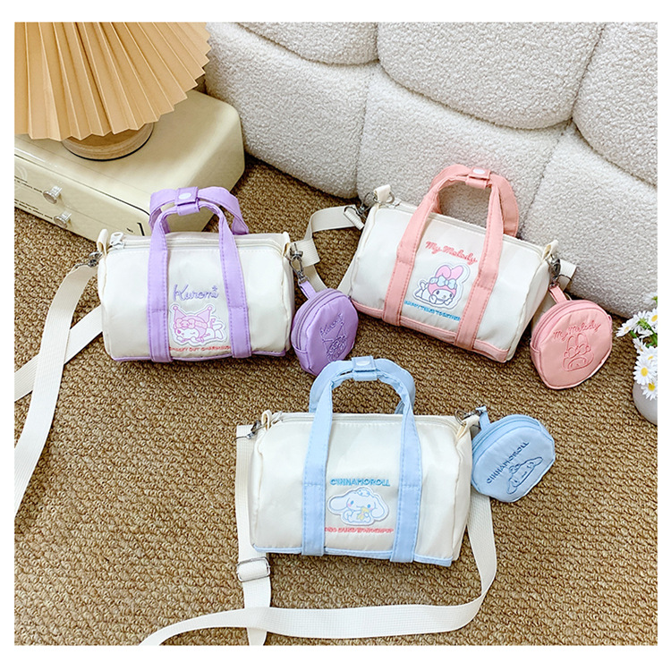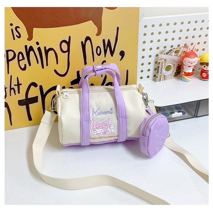 新款单肩圆筒包大容量简约百搭斜挎包卡通库洛米手提包女儿童包