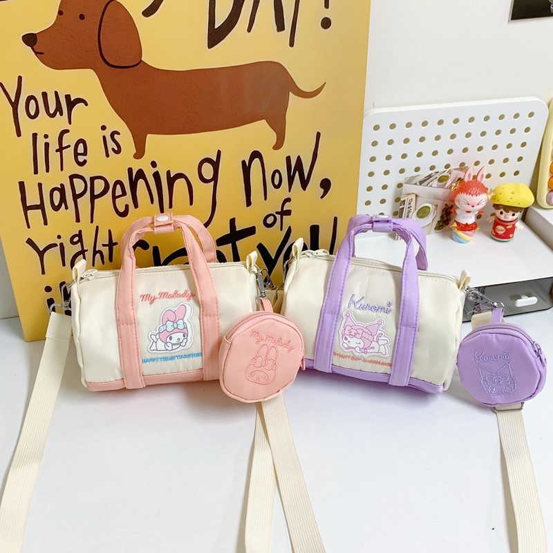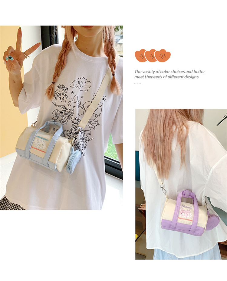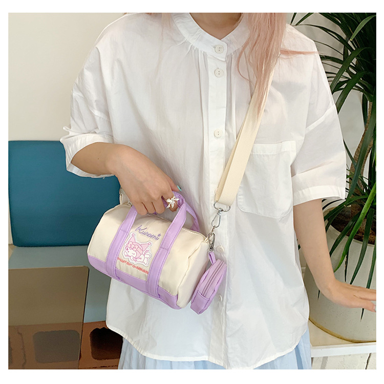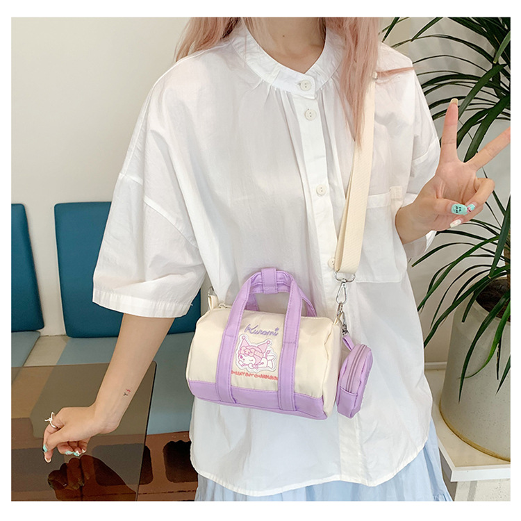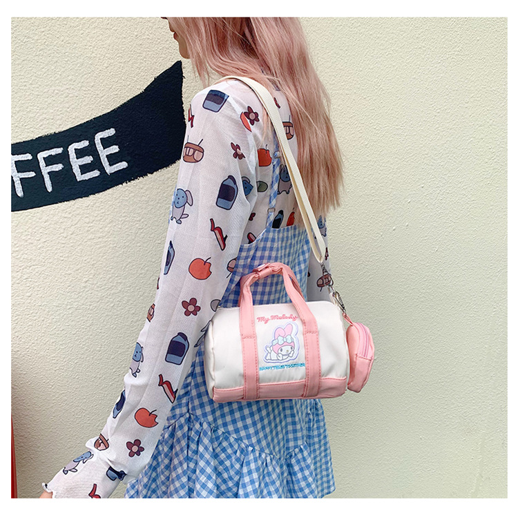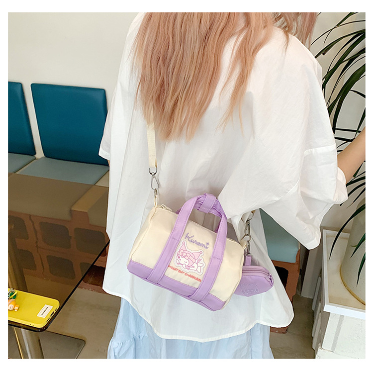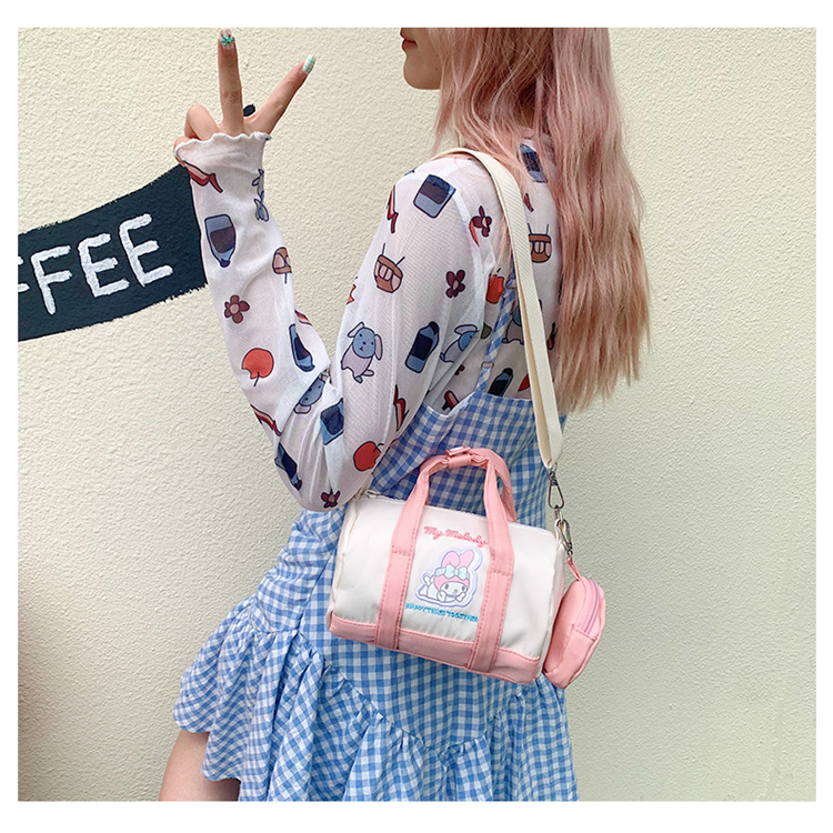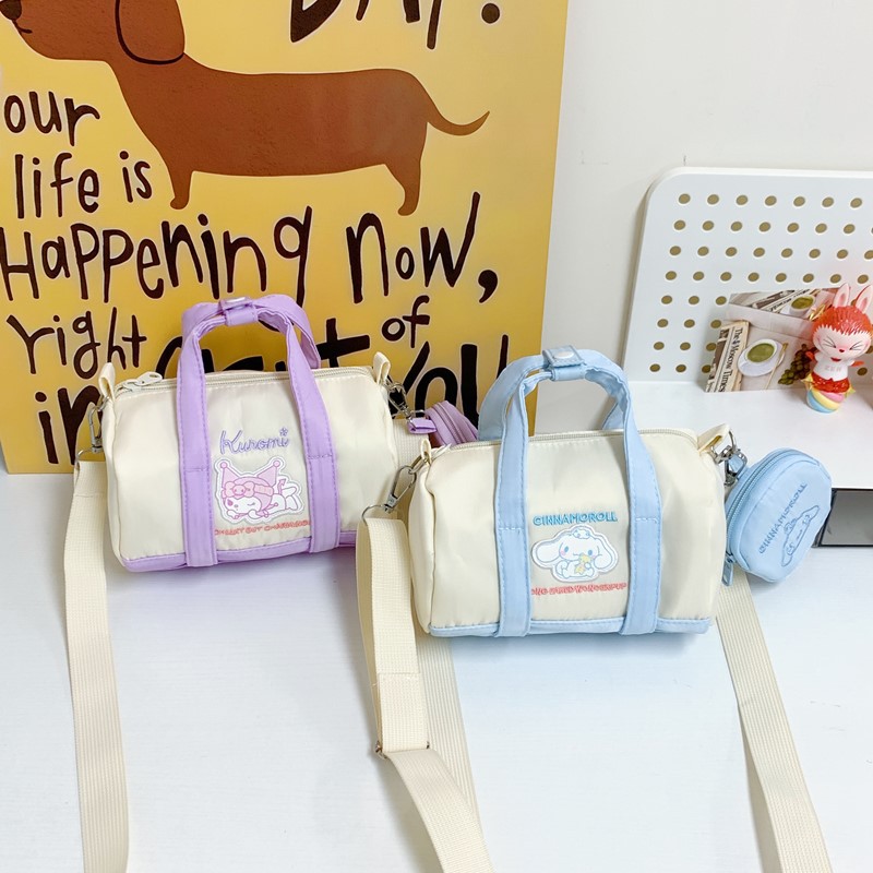 新款单肩圆筒包大容量简约百搭斜挎包卡通库洛米手提包女儿童包