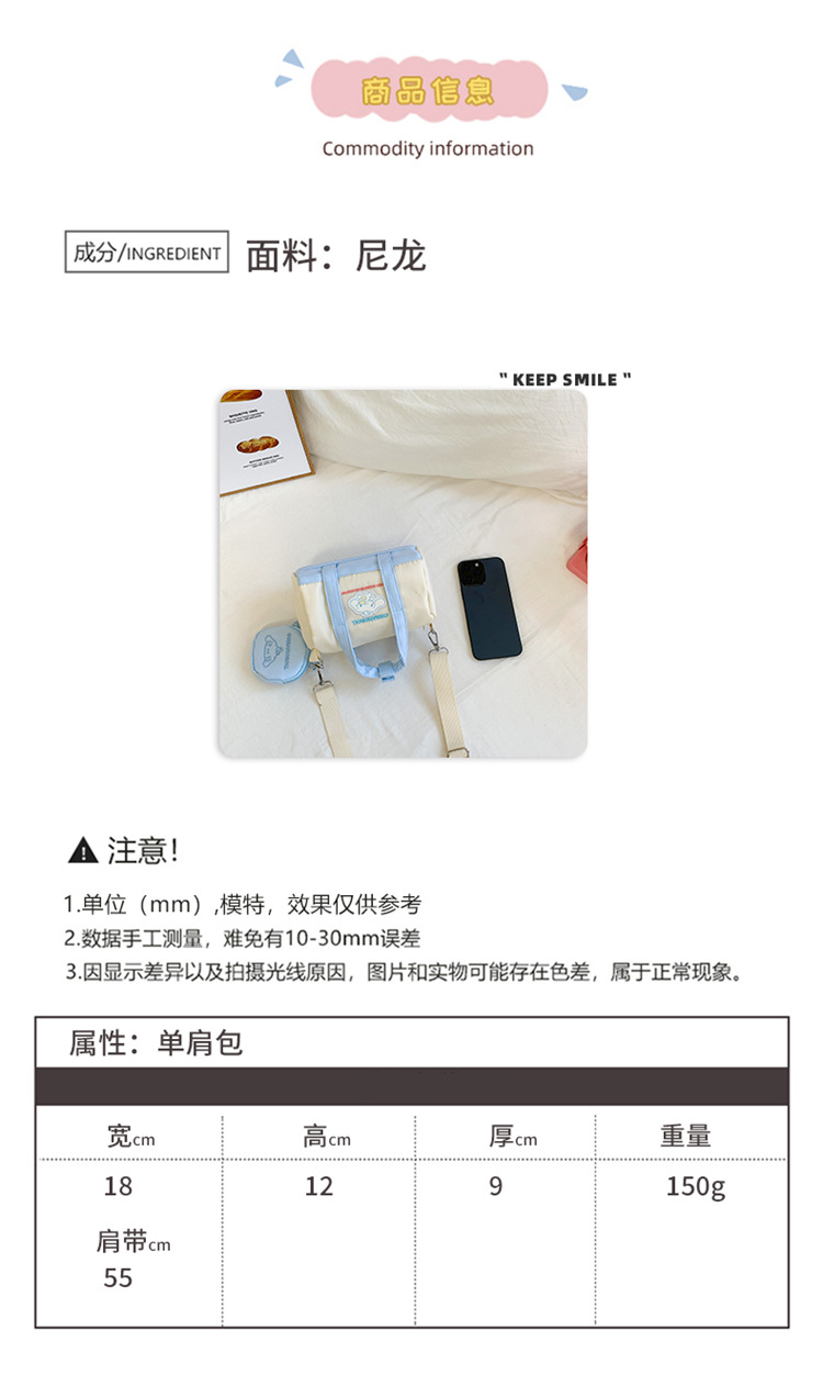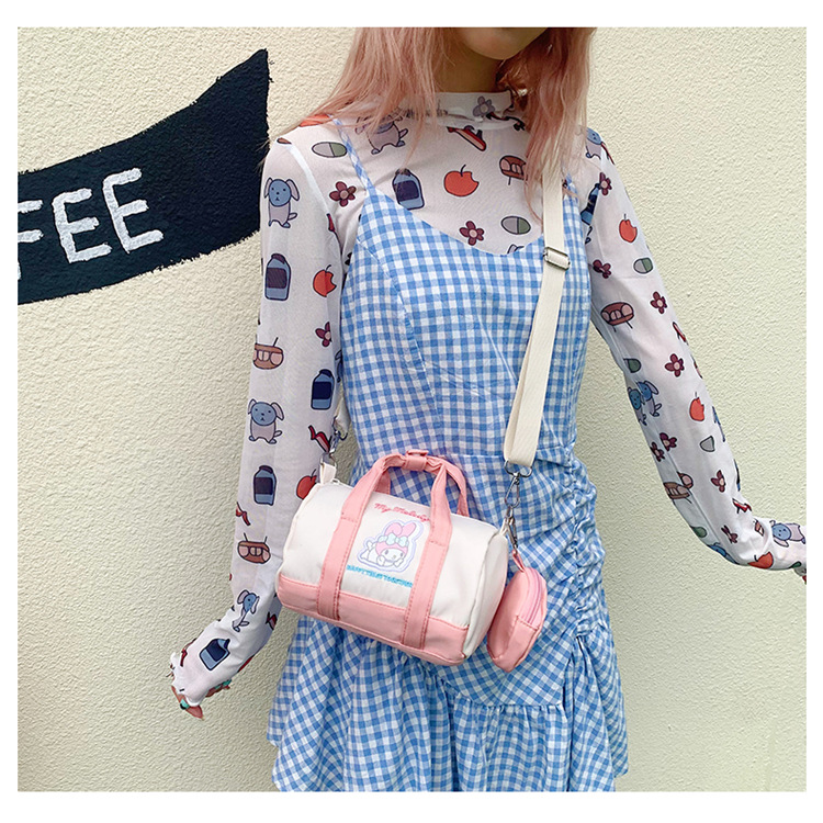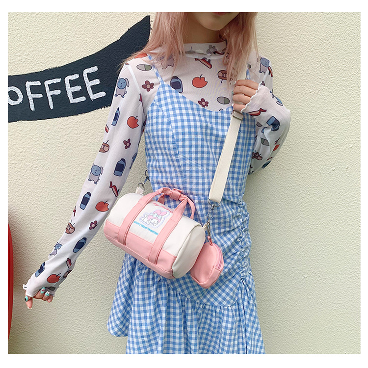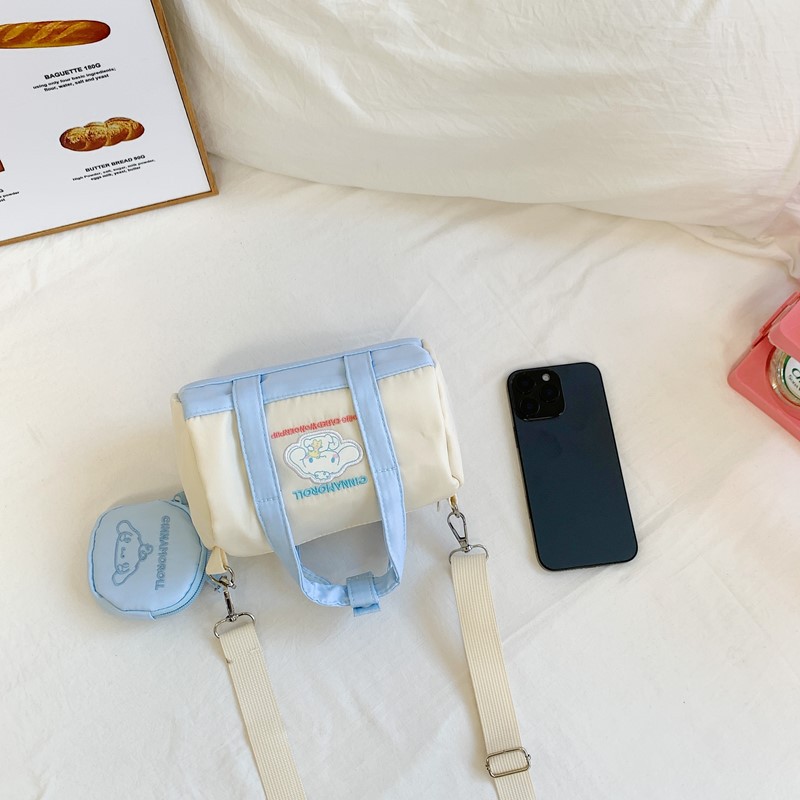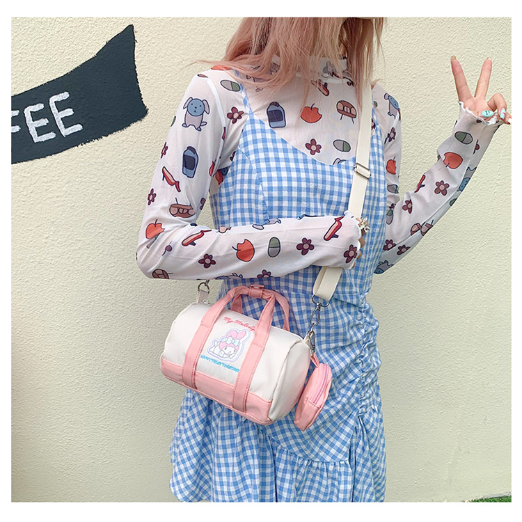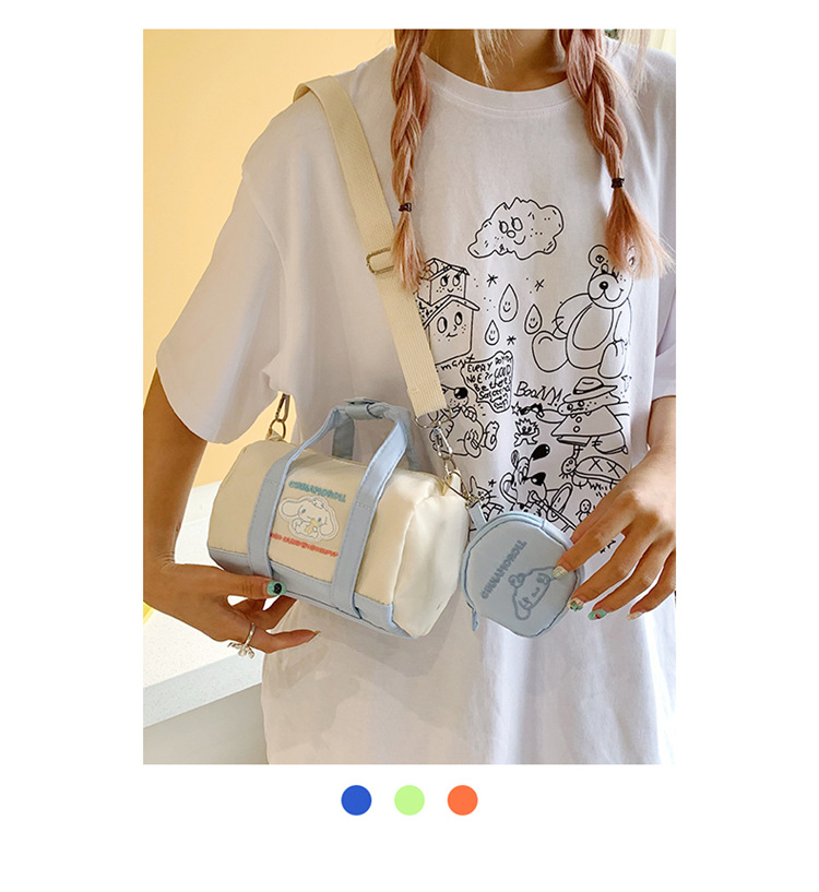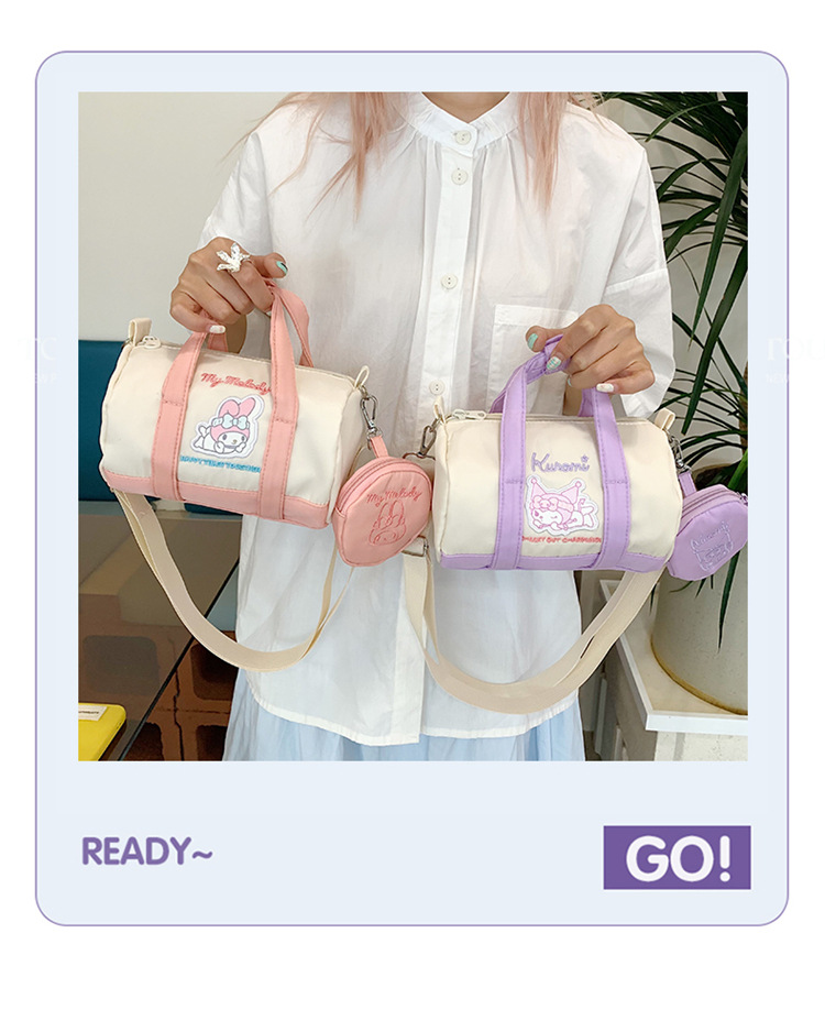 新款单肩圆筒包大容量简约百搭斜挎包卡通库洛米手提包女儿童包