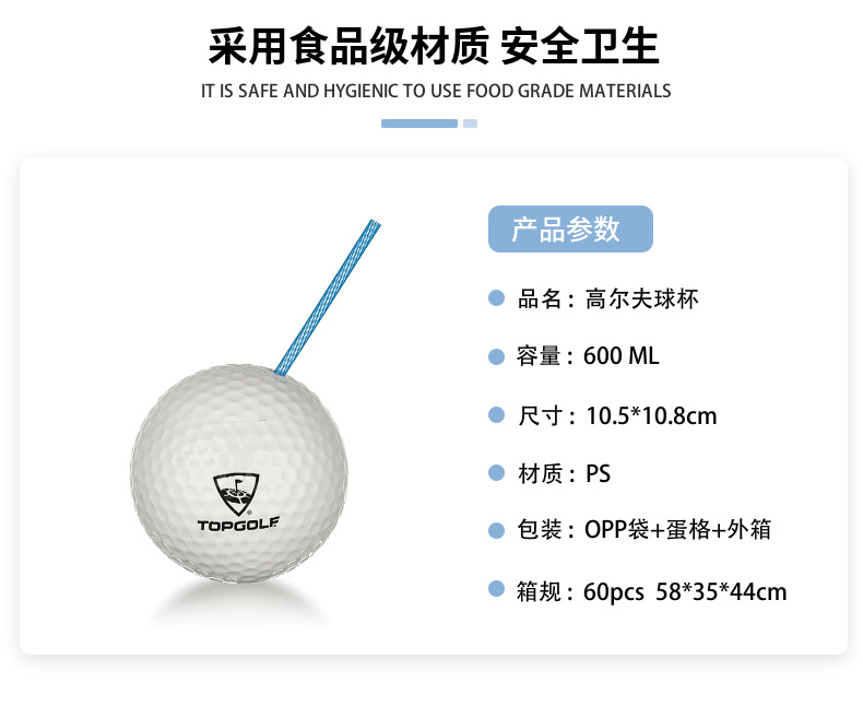 跨境600m高尔夫球杯篮球塑料吸管杯圆球杯杯少女杯disco杯球杯