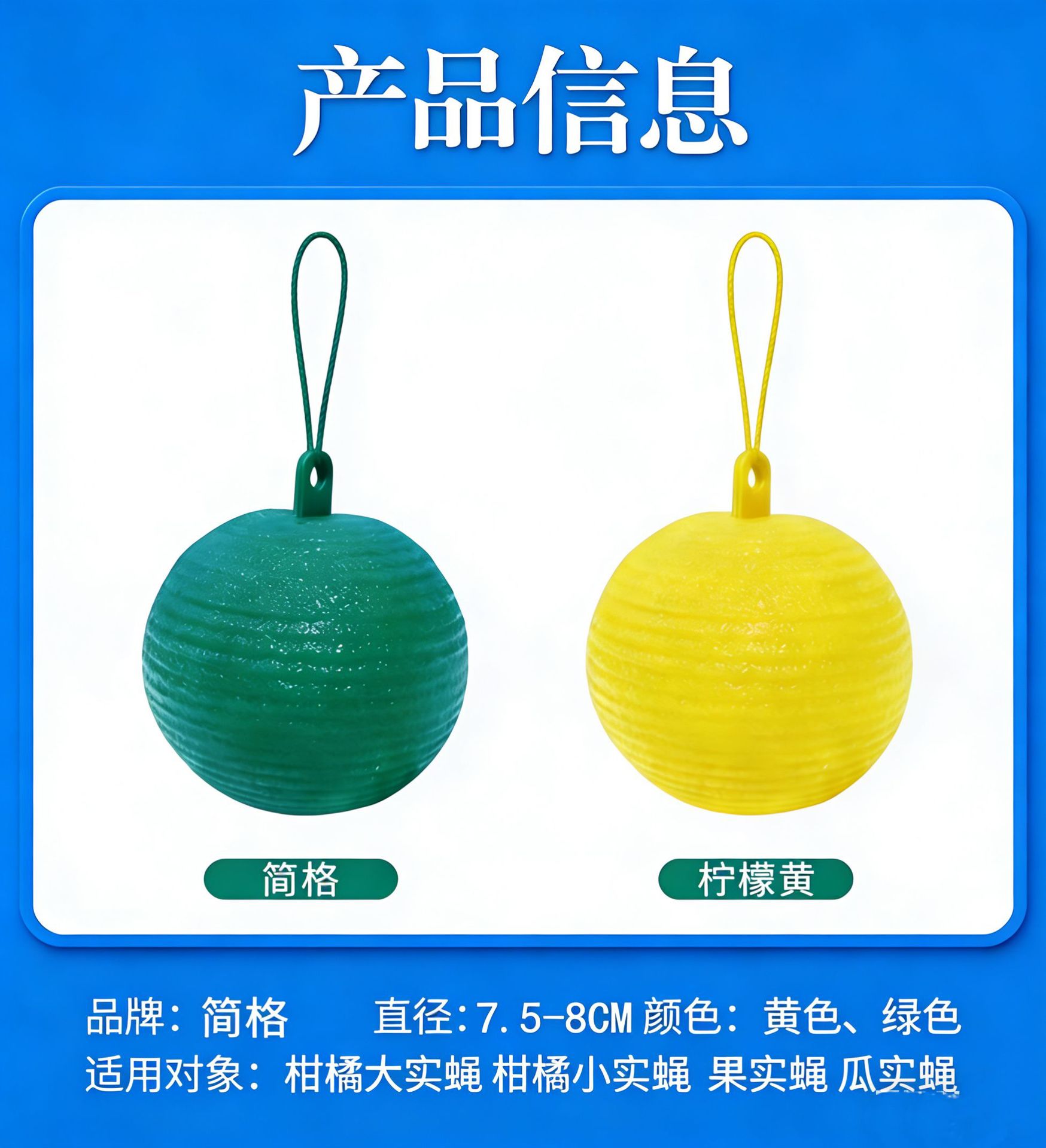 果蝇球诱蝇球黄色绿色诱虫球柑橘针蜂果实蝇蚊虫球果园陷阱粘蝇球