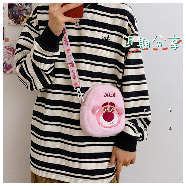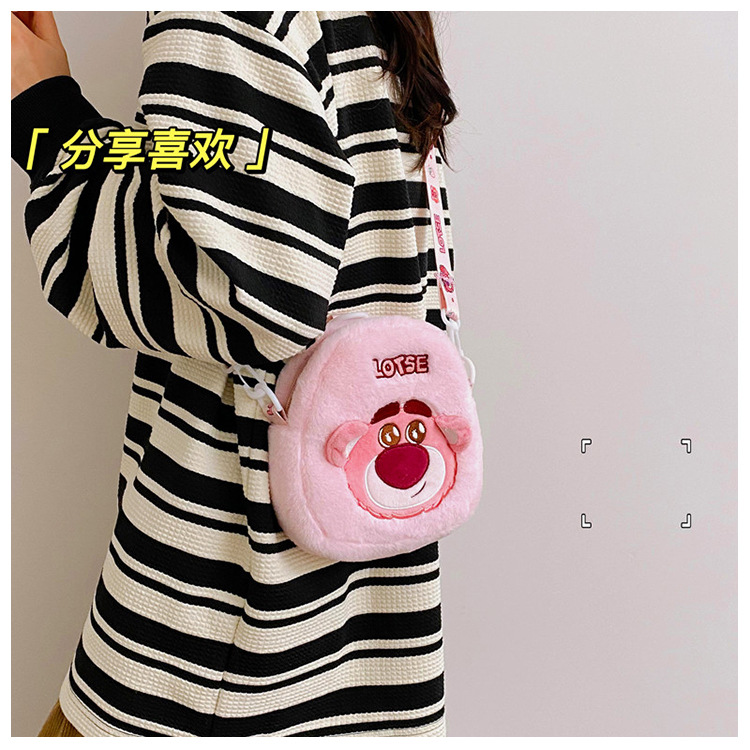 卡通女包新款小包玩偶包女草莓熊毛绒包包单肩包少女斜挎包儿童包