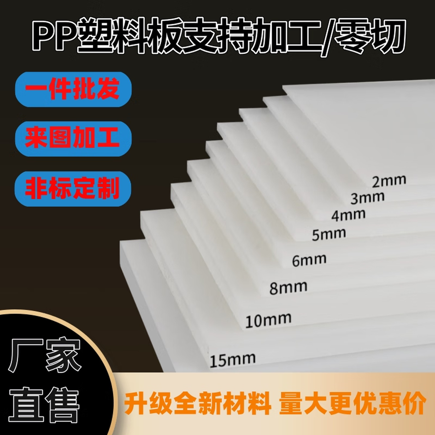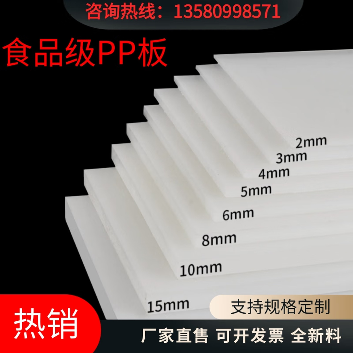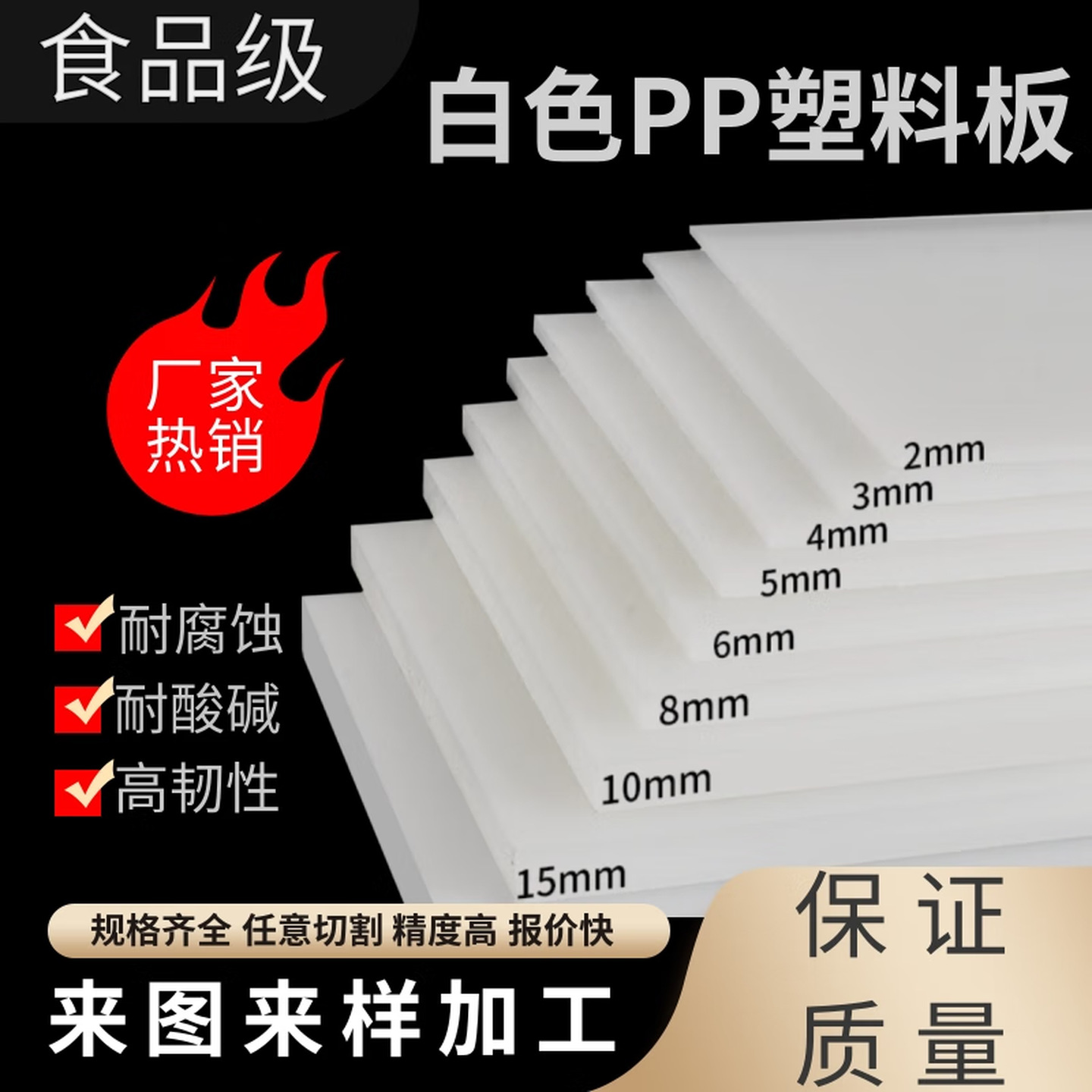 PP板白色塑料硬板材聚丙烯加工垫板防水耐磨隔板PE板方条零切批发