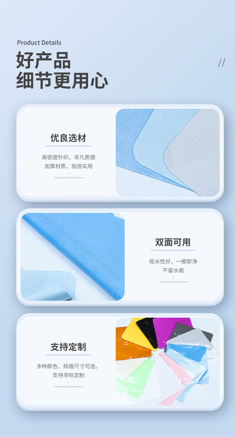 超细纤维麂皮绒眼镜布厂家批发可印字独立包装擦拭布乐器布批发