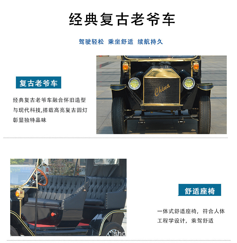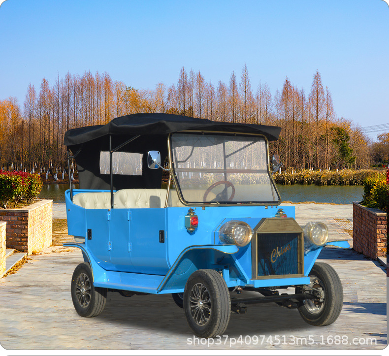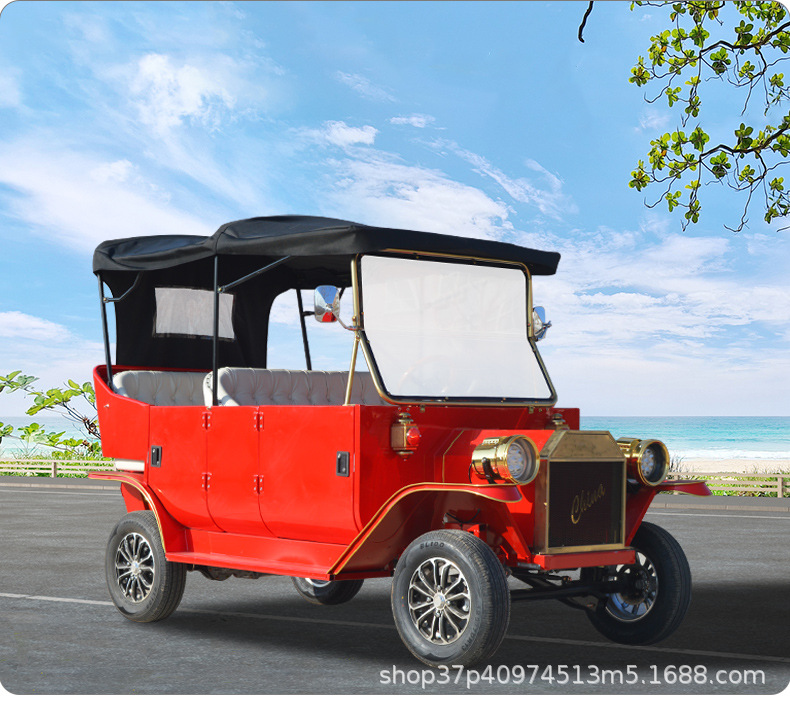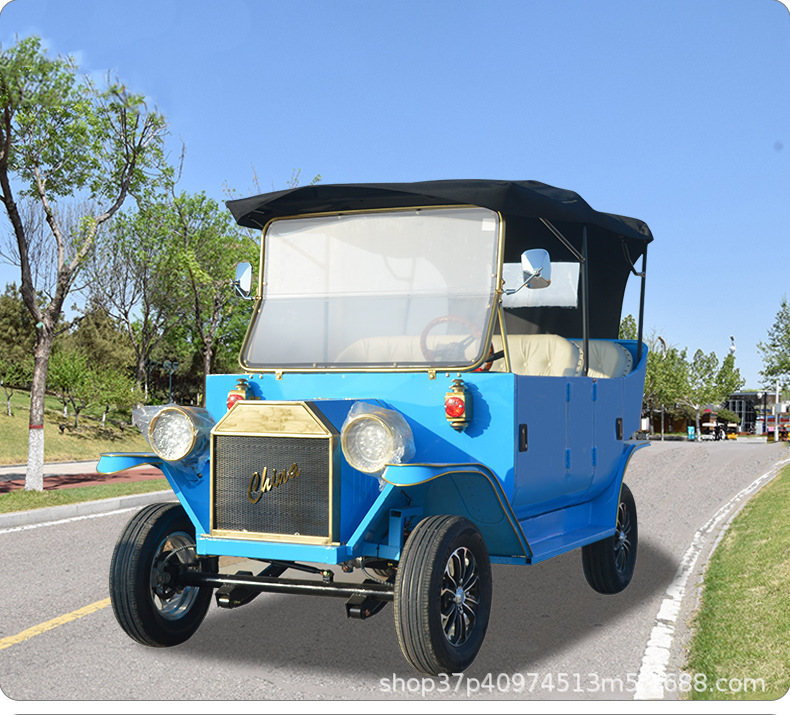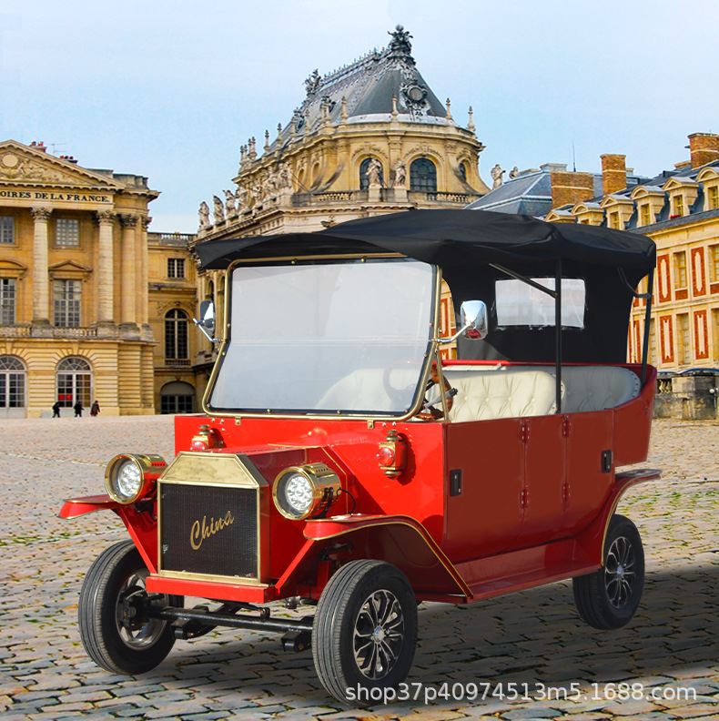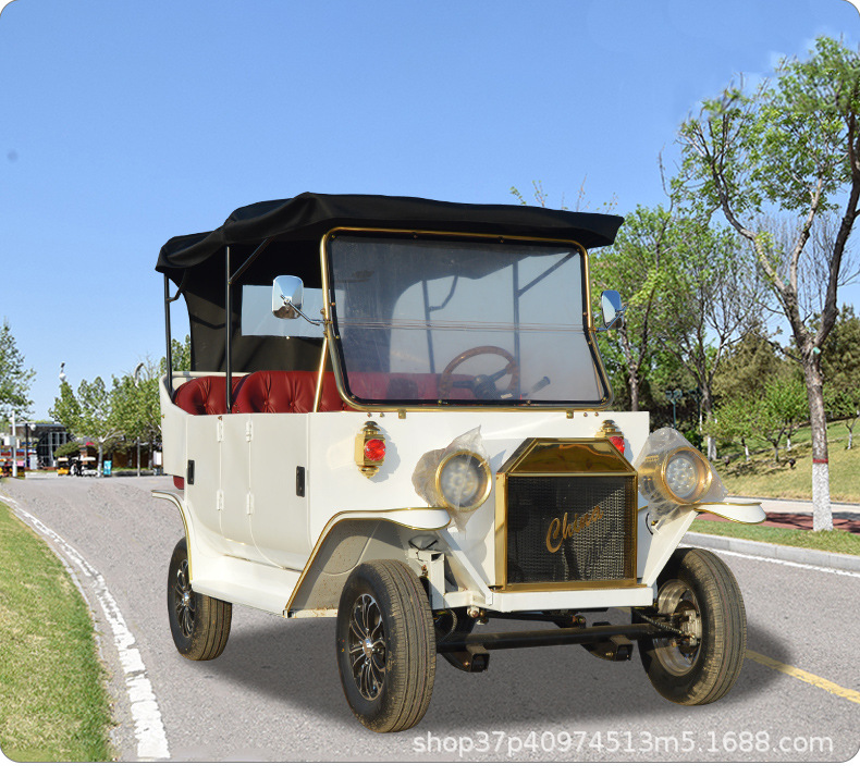 复古老爷车电动观光车四轮厂家直供景区旅游看房摆渡车高尔夫球车