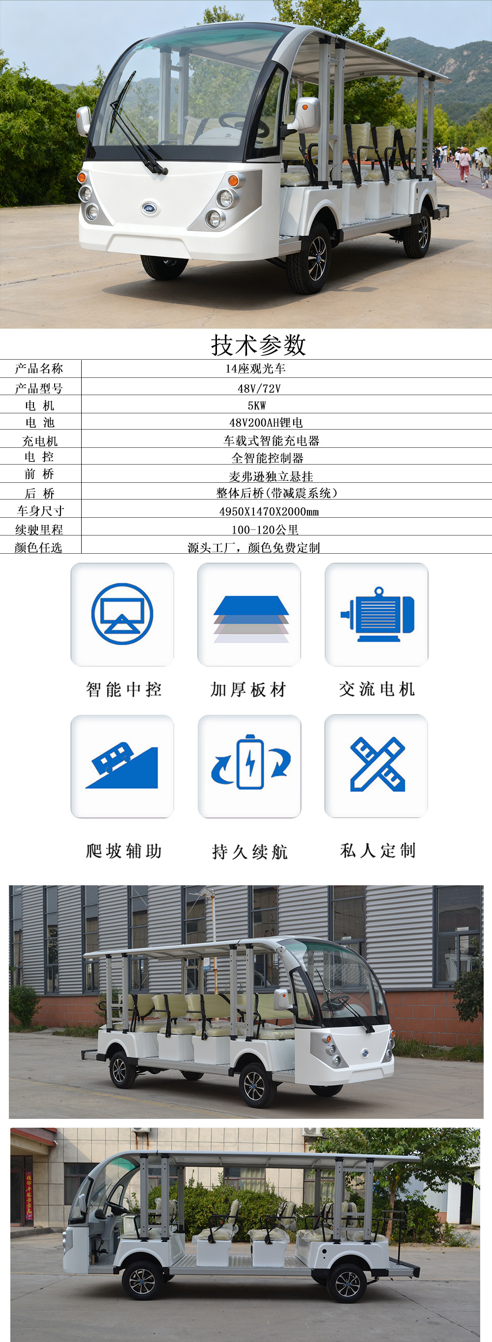 敞篷电动观光车14座园区接驳摆渡车电瓶旅游游览车观光车