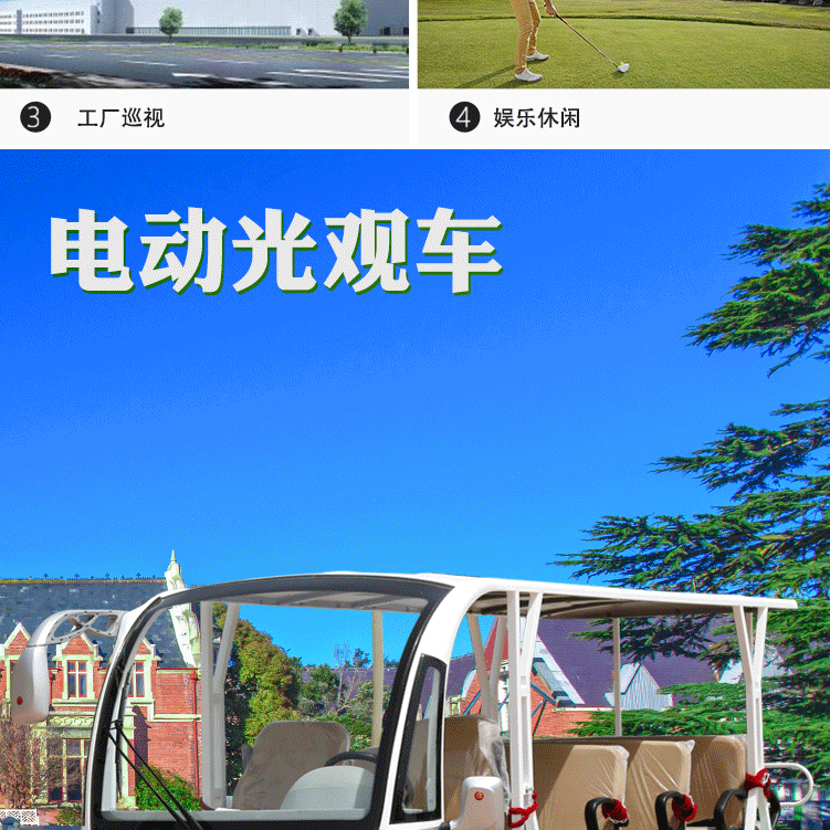 景区旅游摆渡电动车四排11座游览楼盘看房车电动观光车电瓶代步车