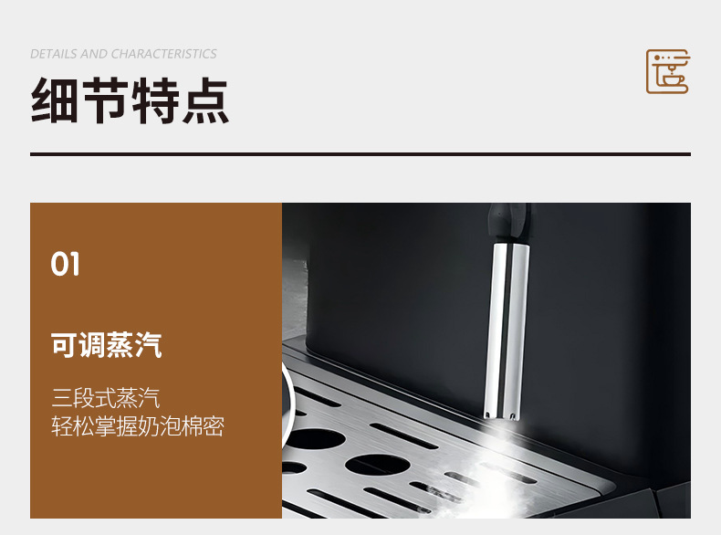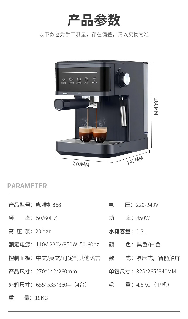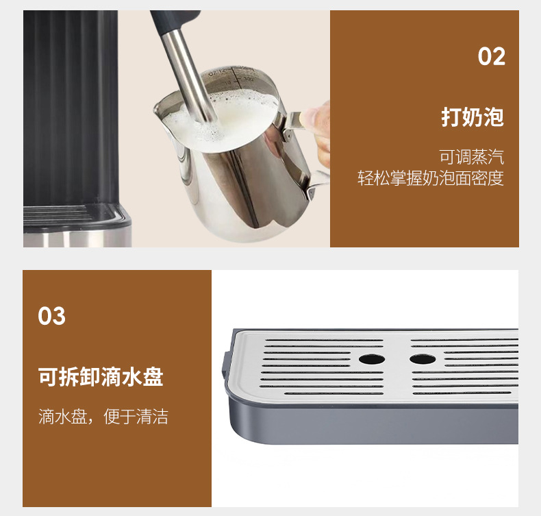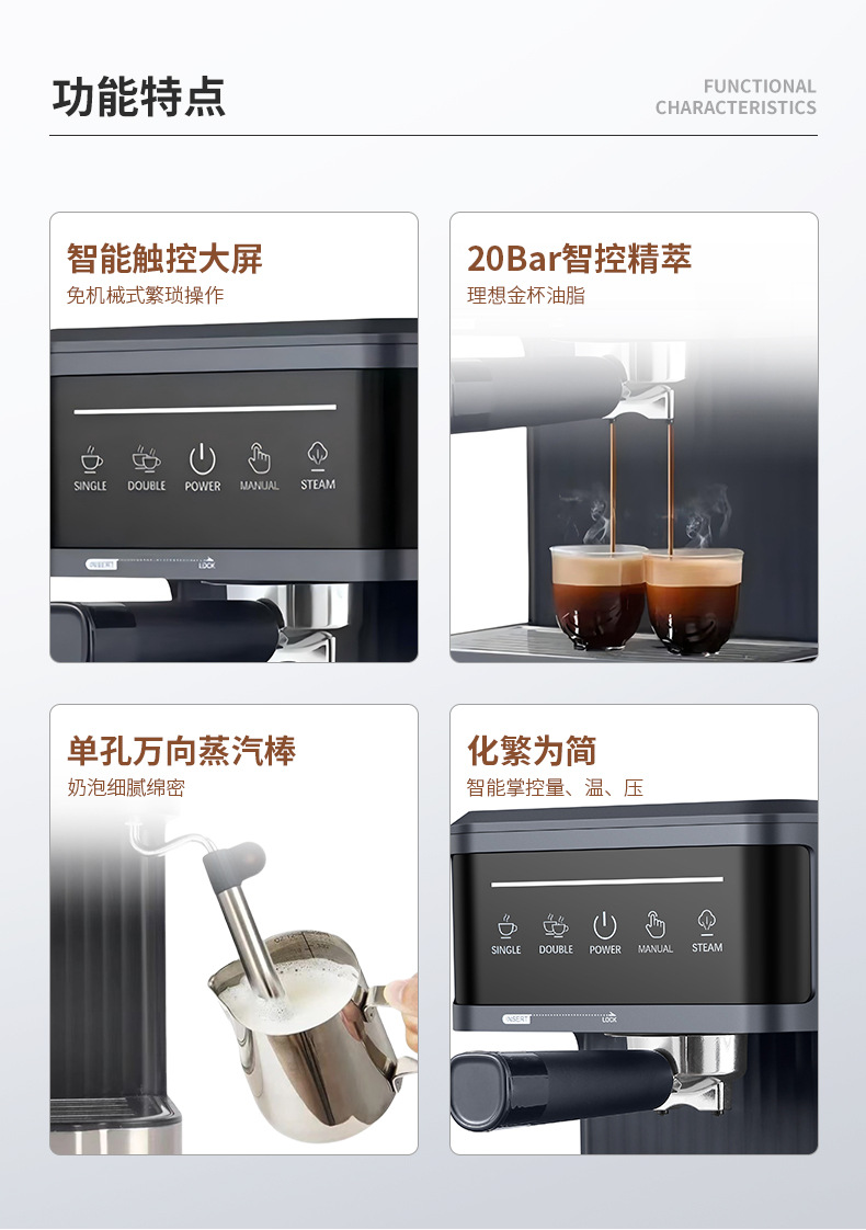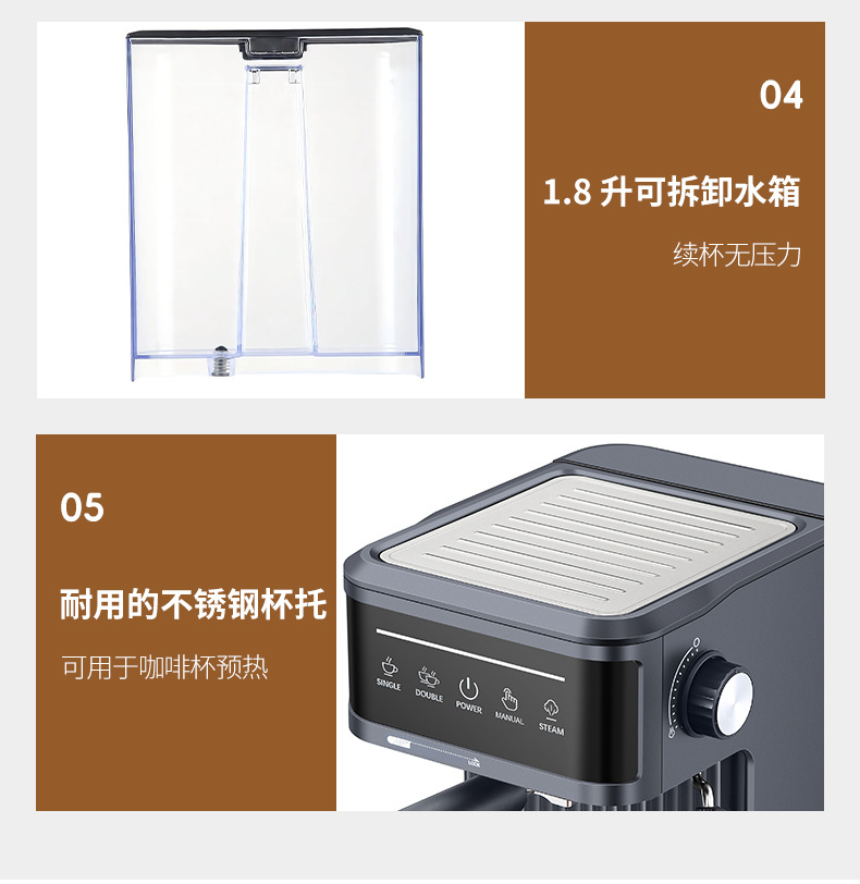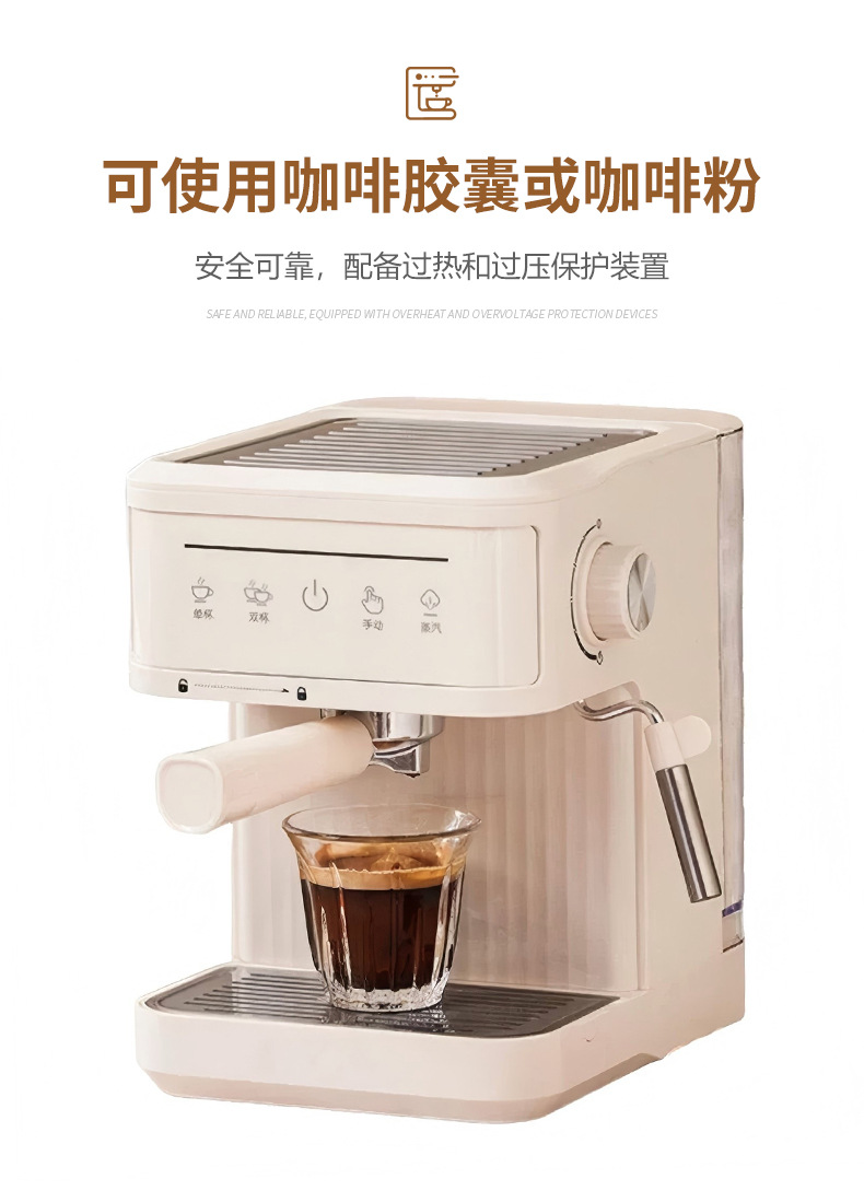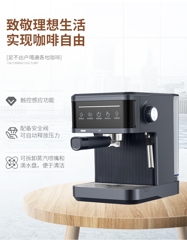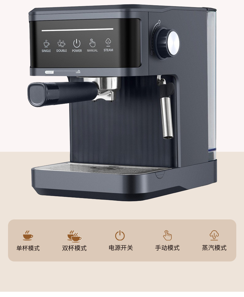跨境意式咖啡机家用加热萃取小型办公半自动意式浓缩蒸汽奶泡一体