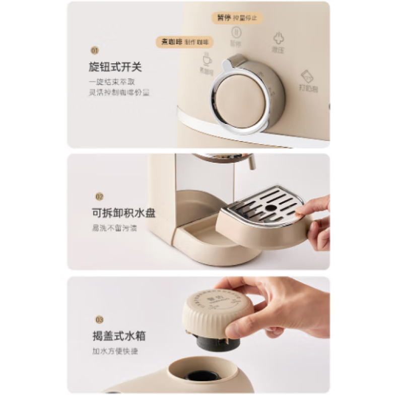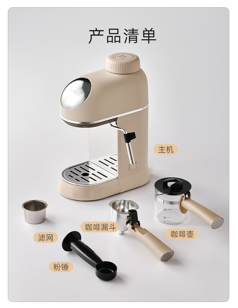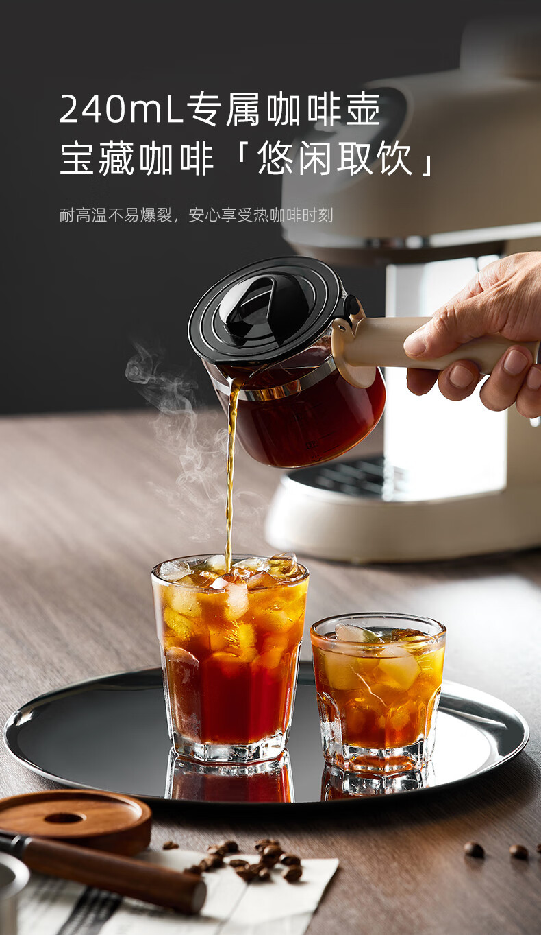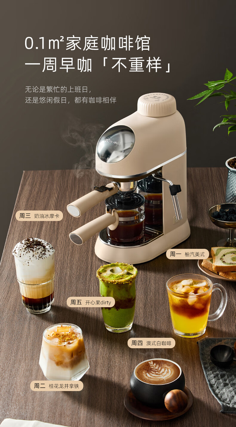 小熊咖啡机家用小型意式半全自动办公室一体机美式手磨研煮咖啡壶