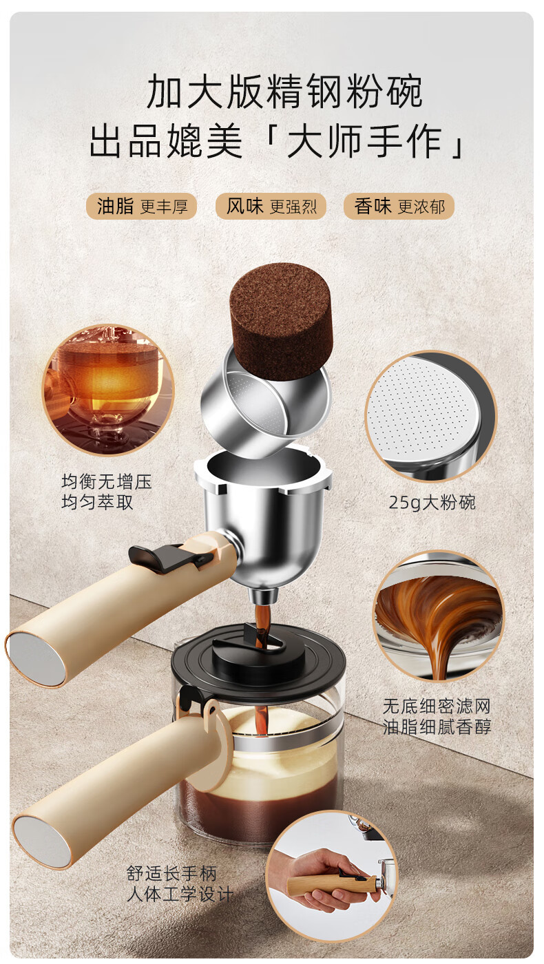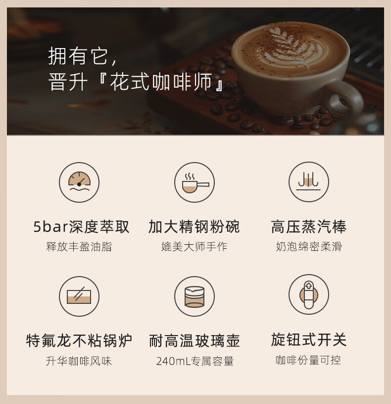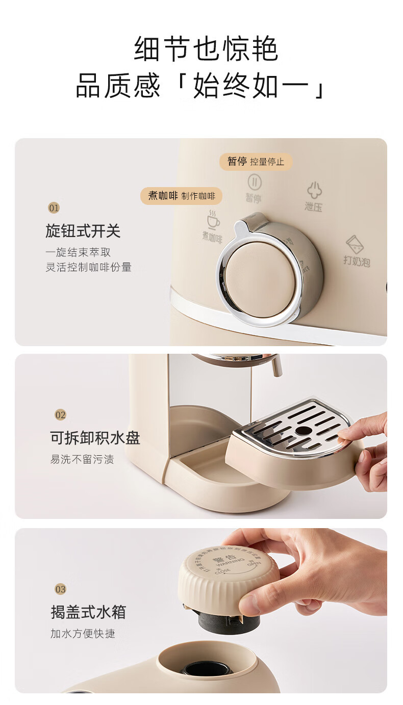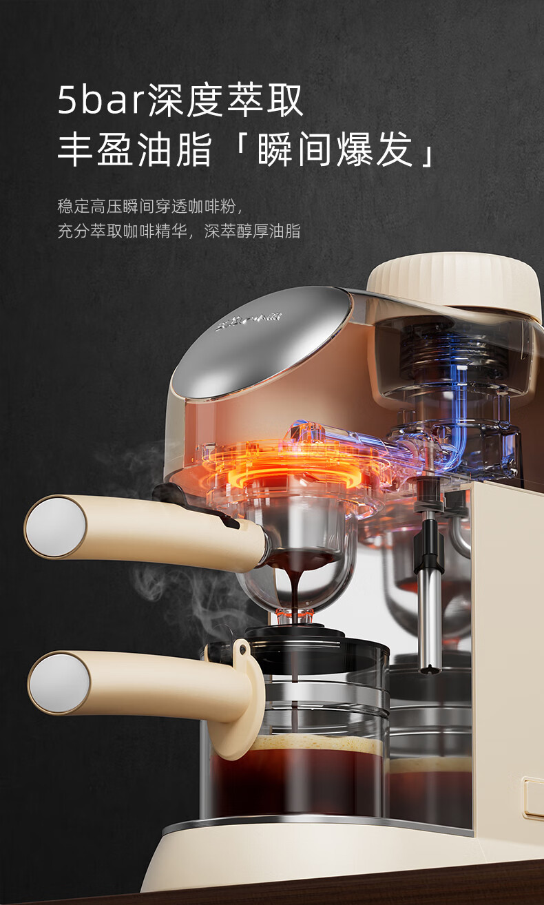 小熊咖啡机家用小型意式半全自动办公室一体机美式手磨研煮咖啡壶