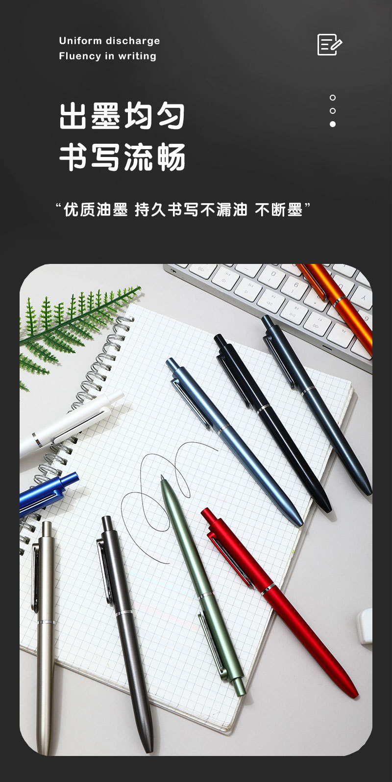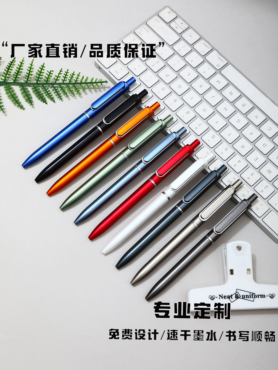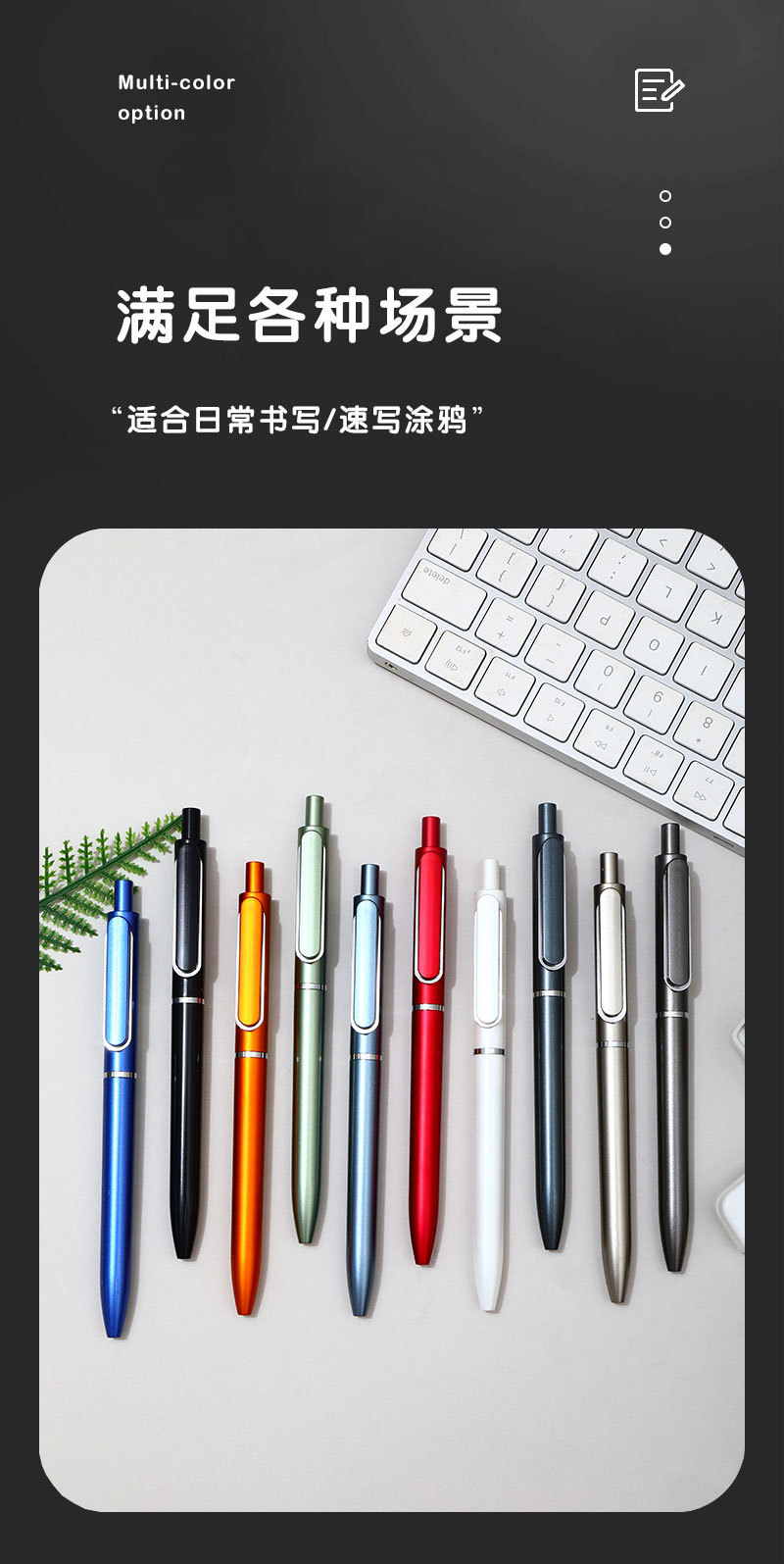 商务办公文具按动签字笔质感可印LOGO高颜值黑广告公司圆珠中性笔