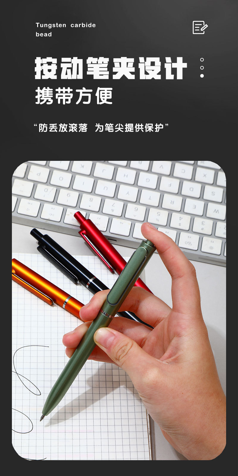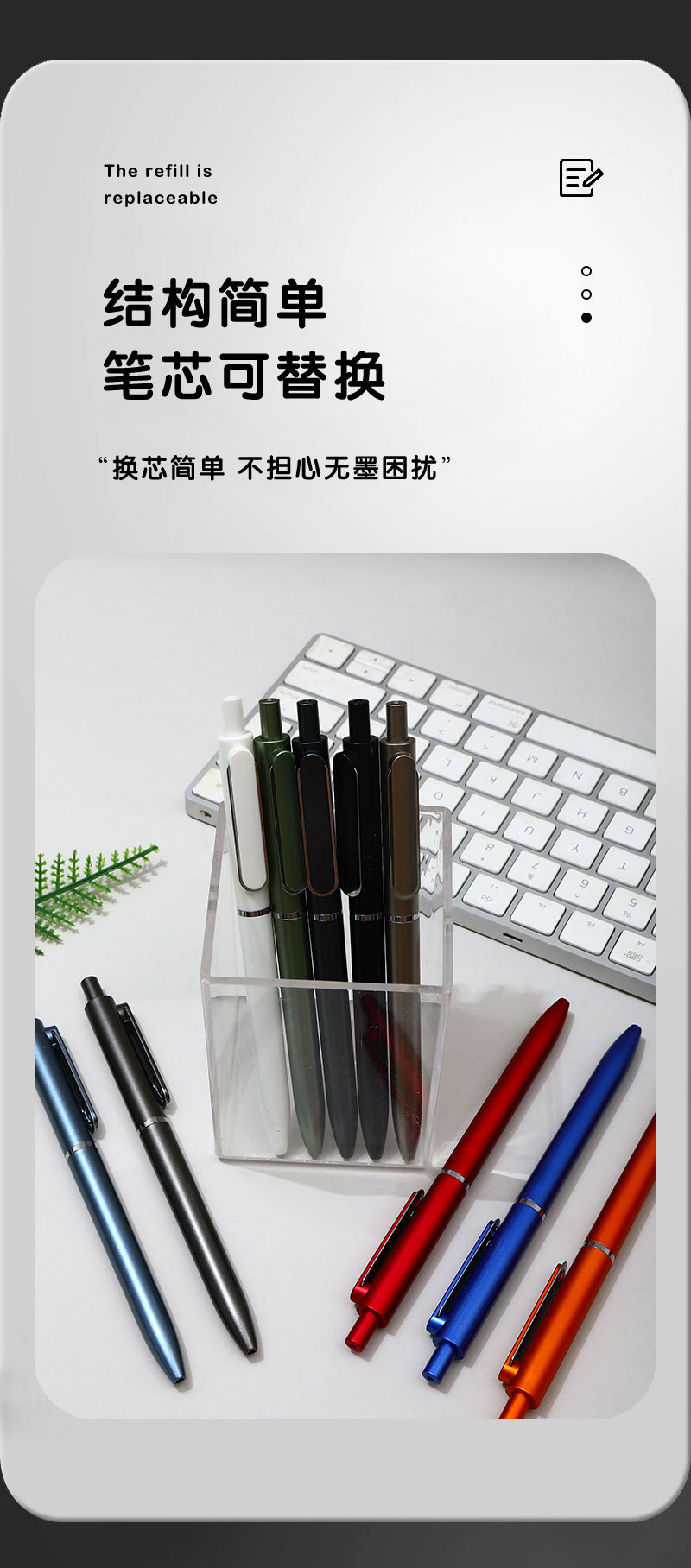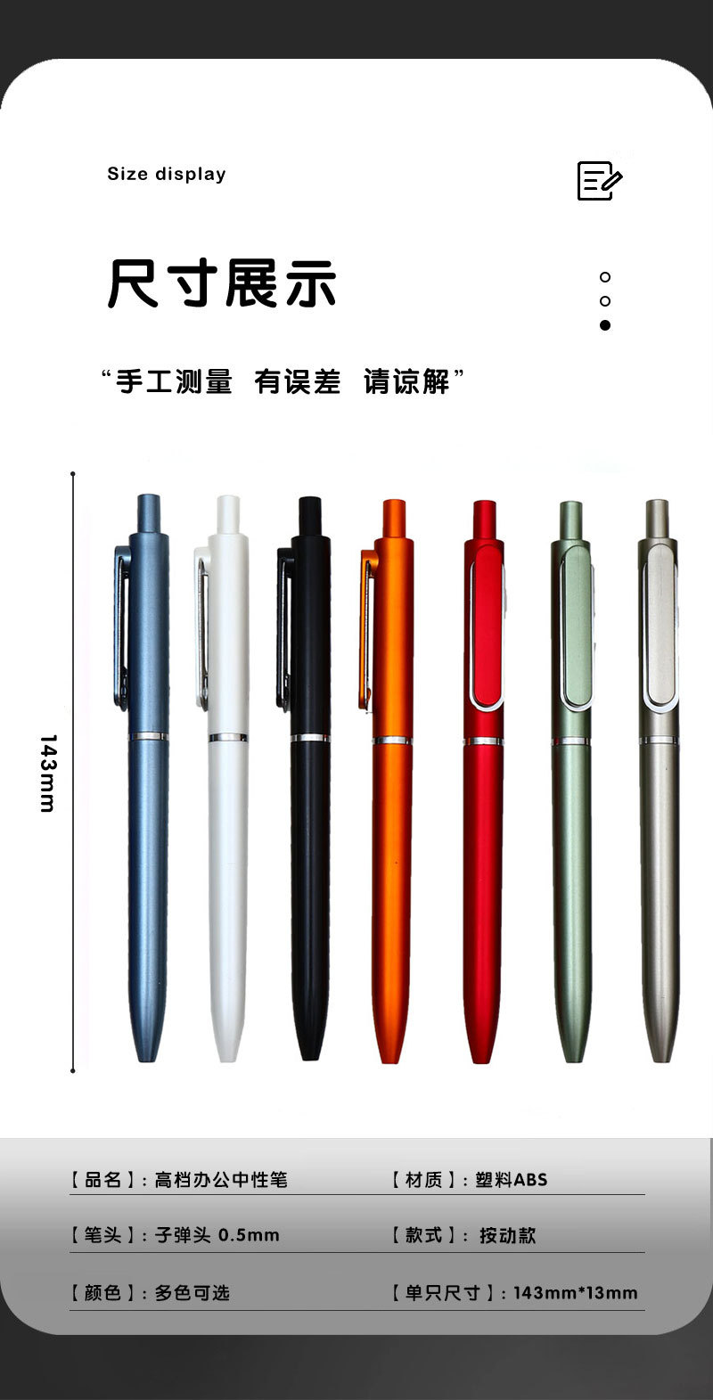商务办公文具按动签字笔质感可印LOGO高颜值黑广告公司圆珠中性笔