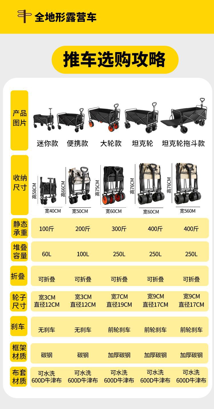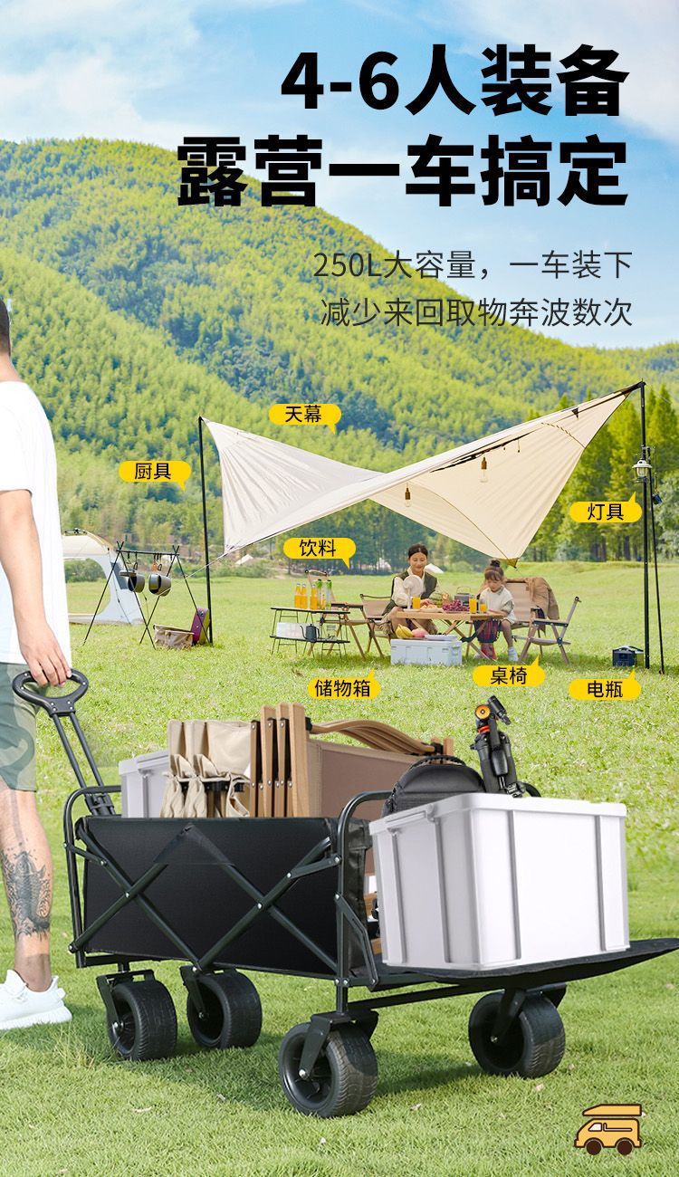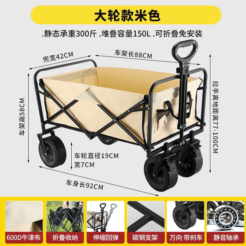 可折叠户外旅行购物手推野餐小拉车野营手拉车露营推车营地拖车