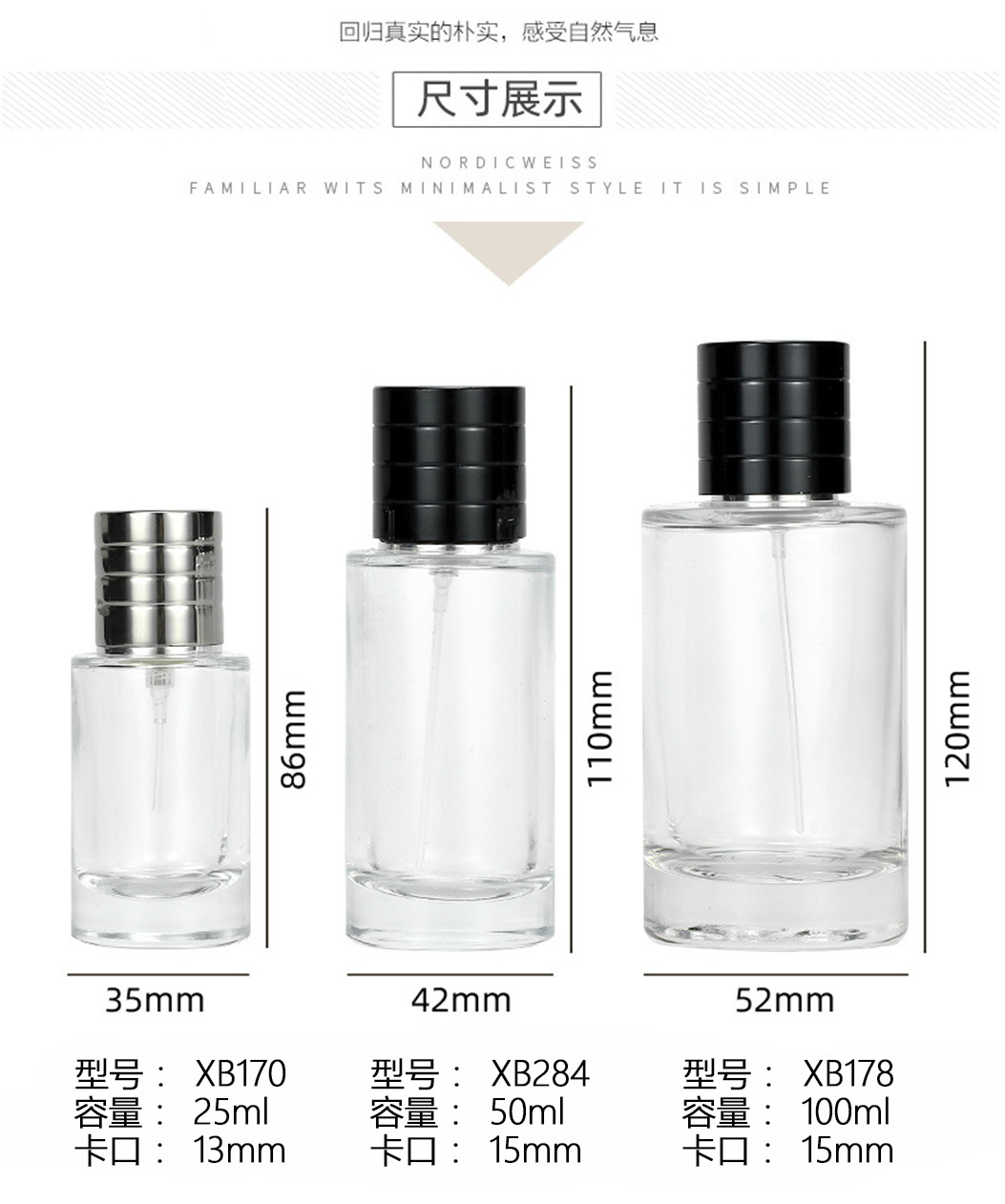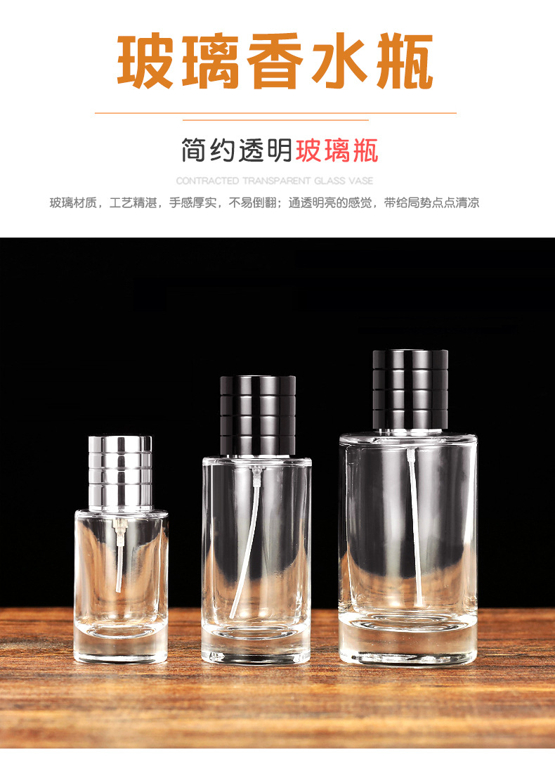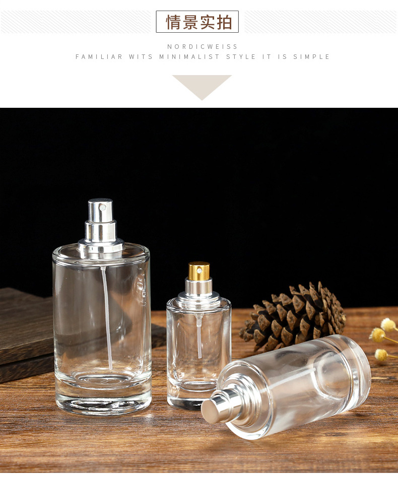现货香水瓶子100ml透明玻璃小分装瓶喷雾瓶圆形化妆品盖空瓶批发