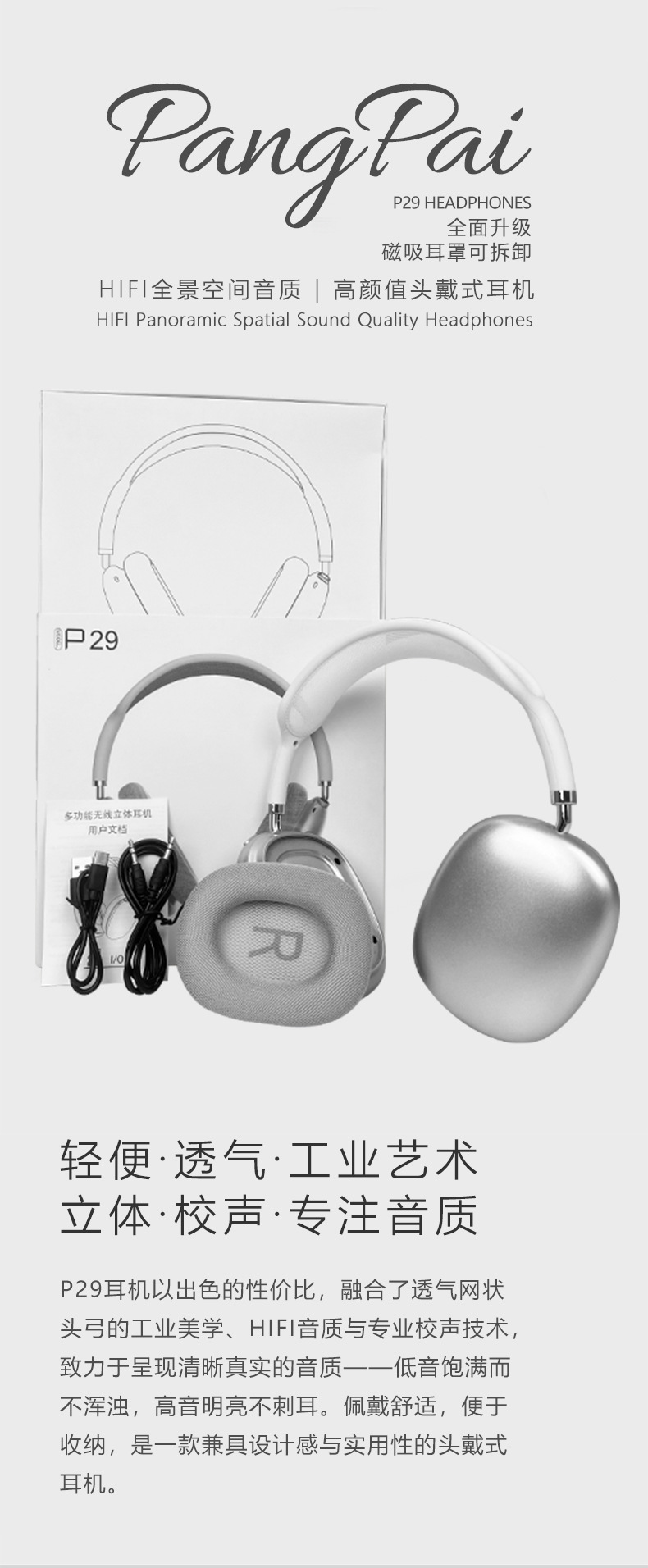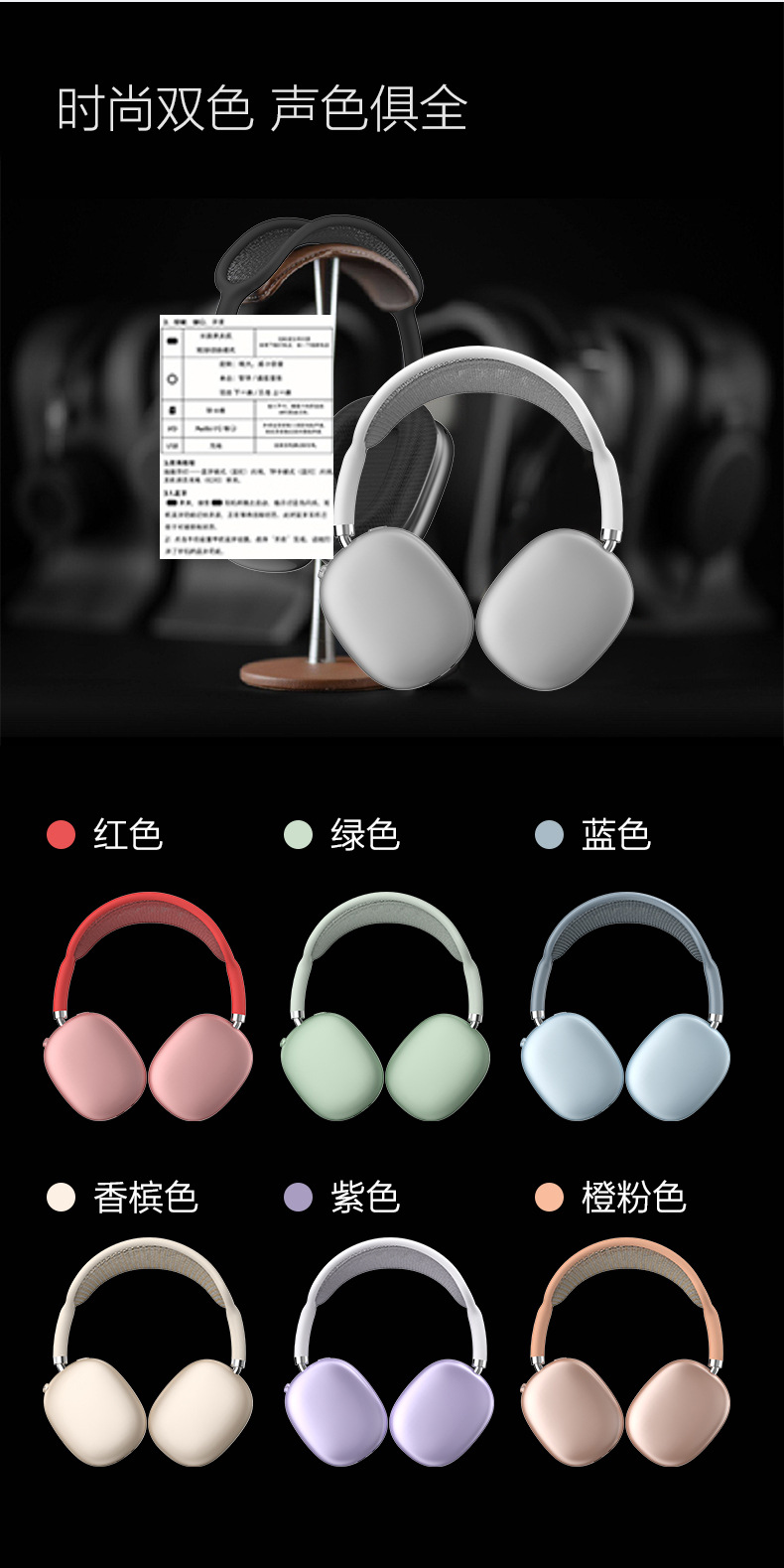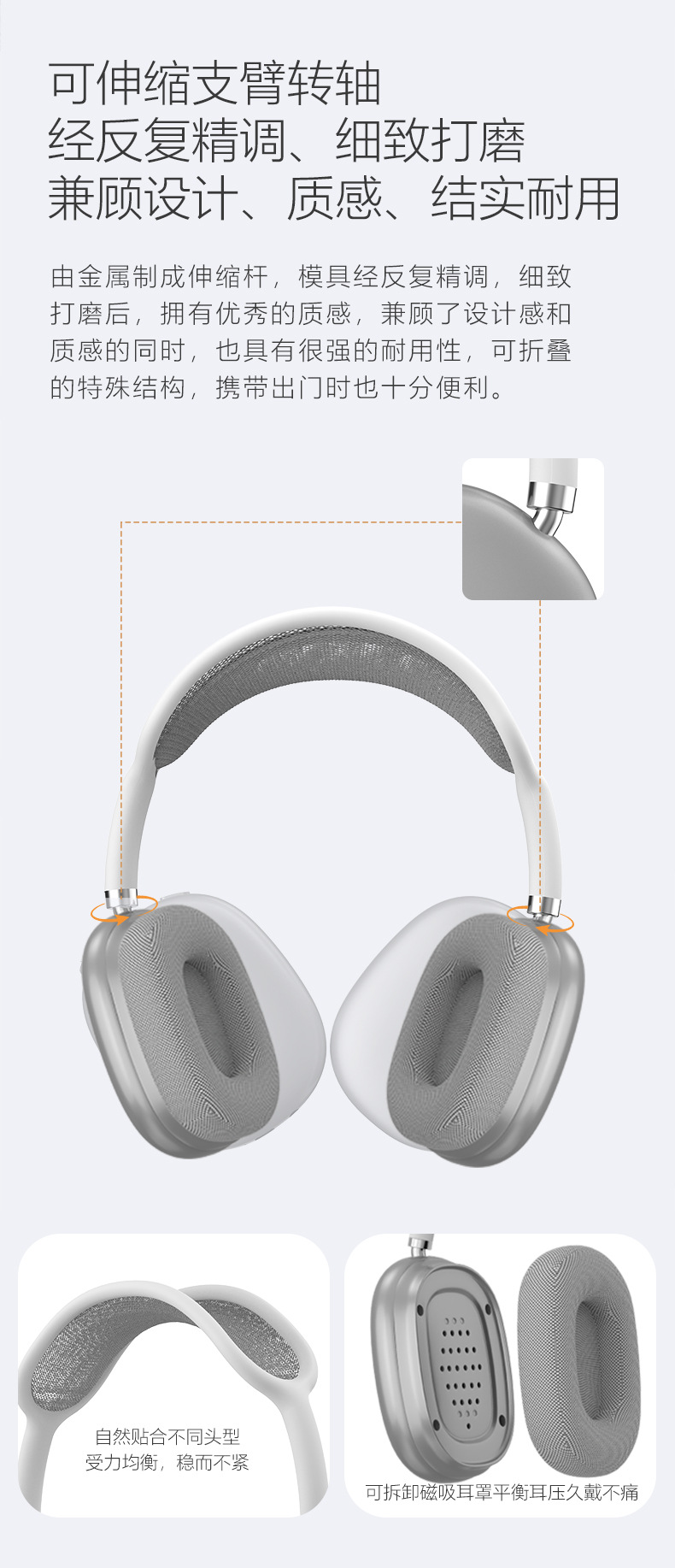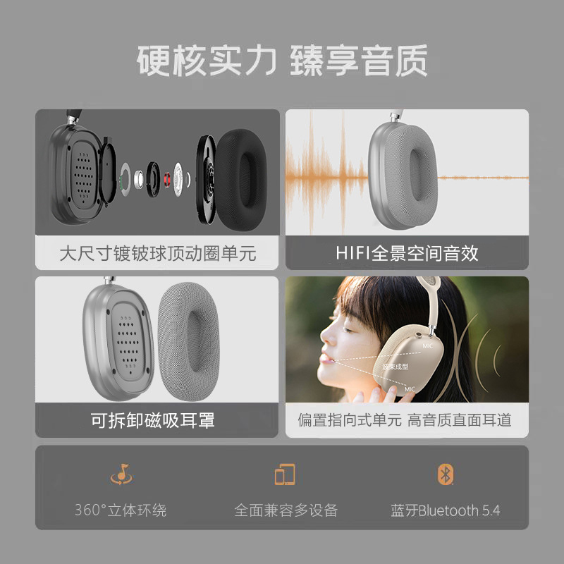 2026高品质磁吸耳罩无线头戴式蓝牙耳机网状头弓旋钮键手机通用TF