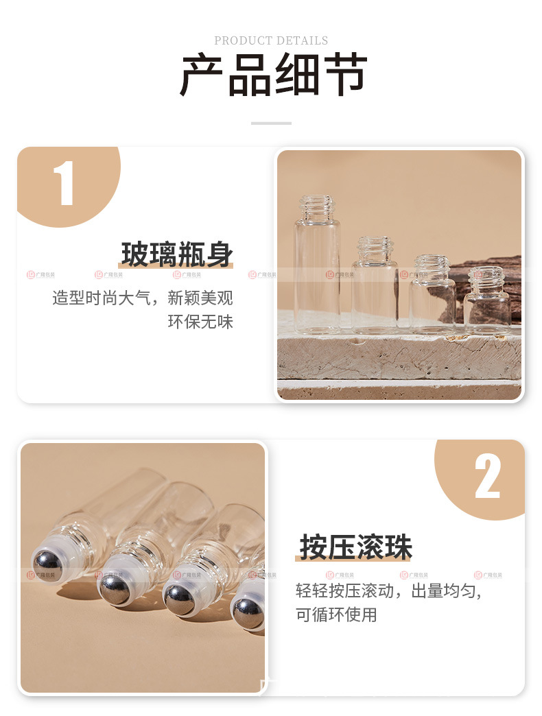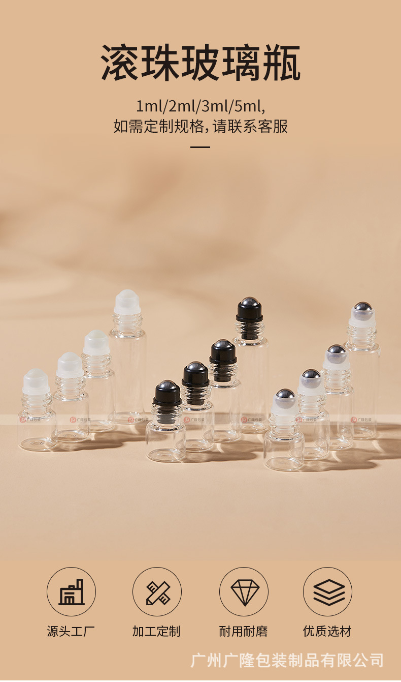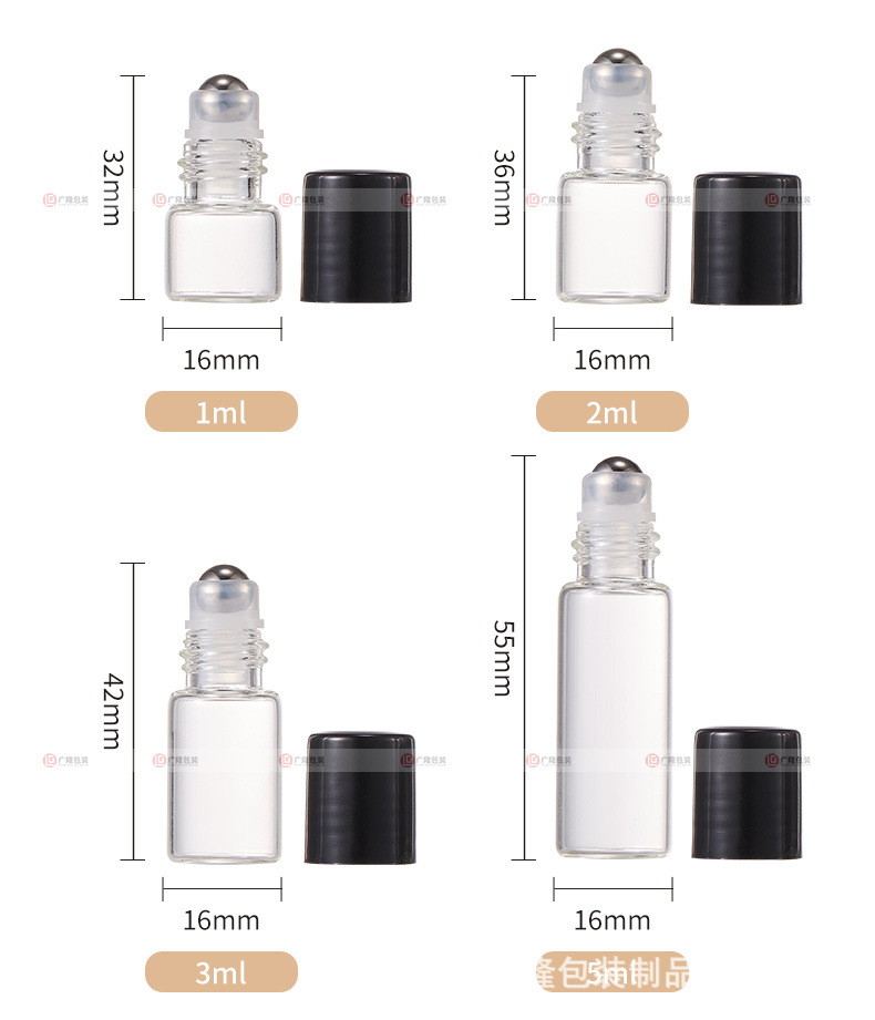 1ml滚珠分装瓶空瓶2ml小样香水走珠瓶3ml透明精油瓶子5ml小玻璃瓶