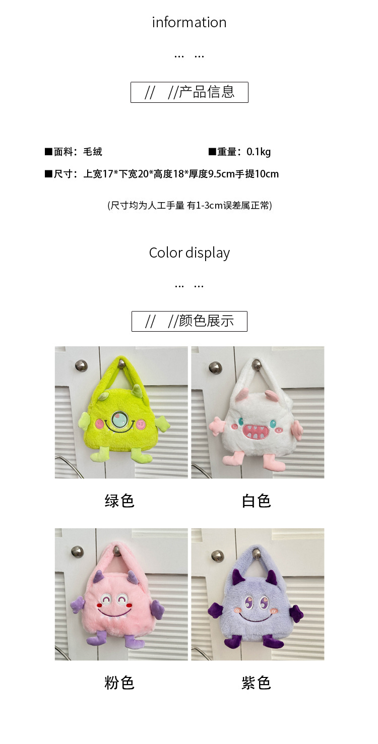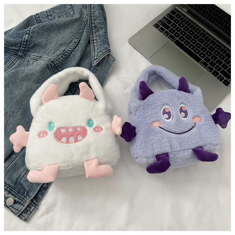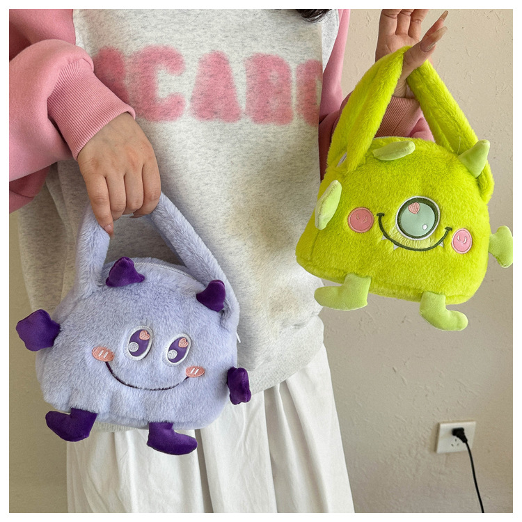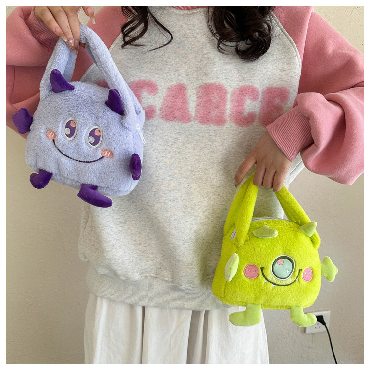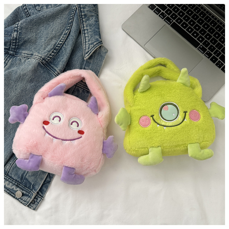 超萌小怪兽手提包精灵玩偶公仔毛绒玩具柔软毛绒儿童包卡通单肩包