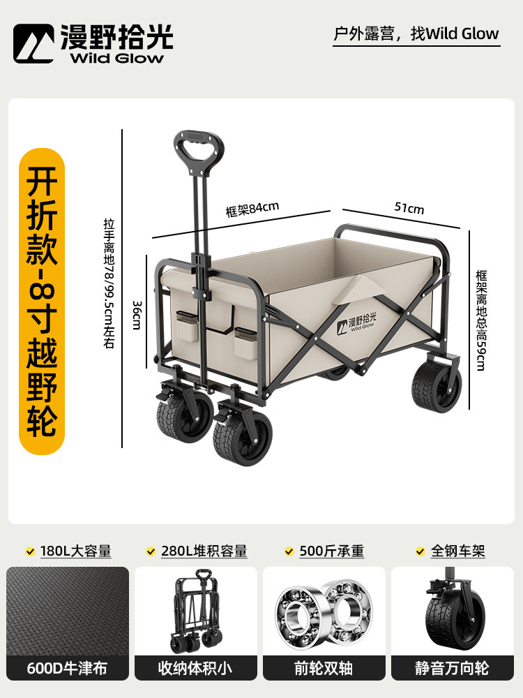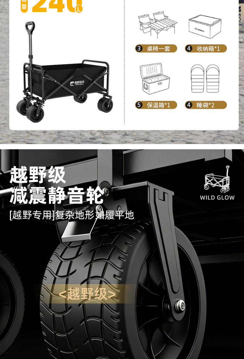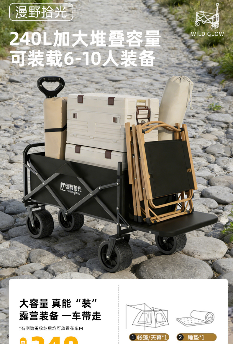 露营车户外折叠推车手拉车野餐大号营地车可躺旅行野营小拖车批发