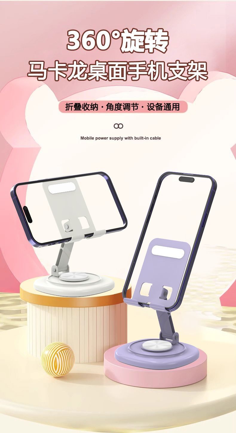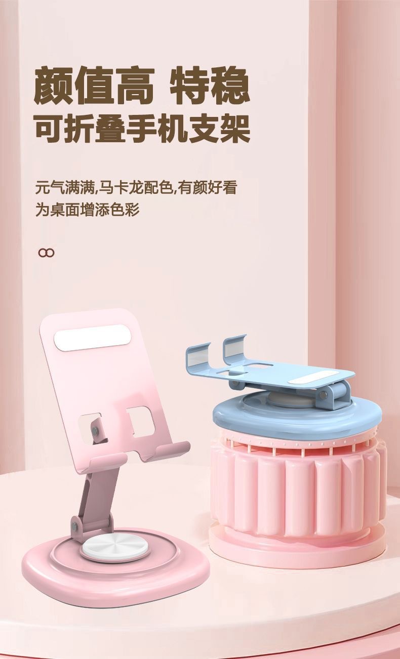 新款桌面手机支架360度旋转折叠支撑架马卡龙色系金属架 可做logo