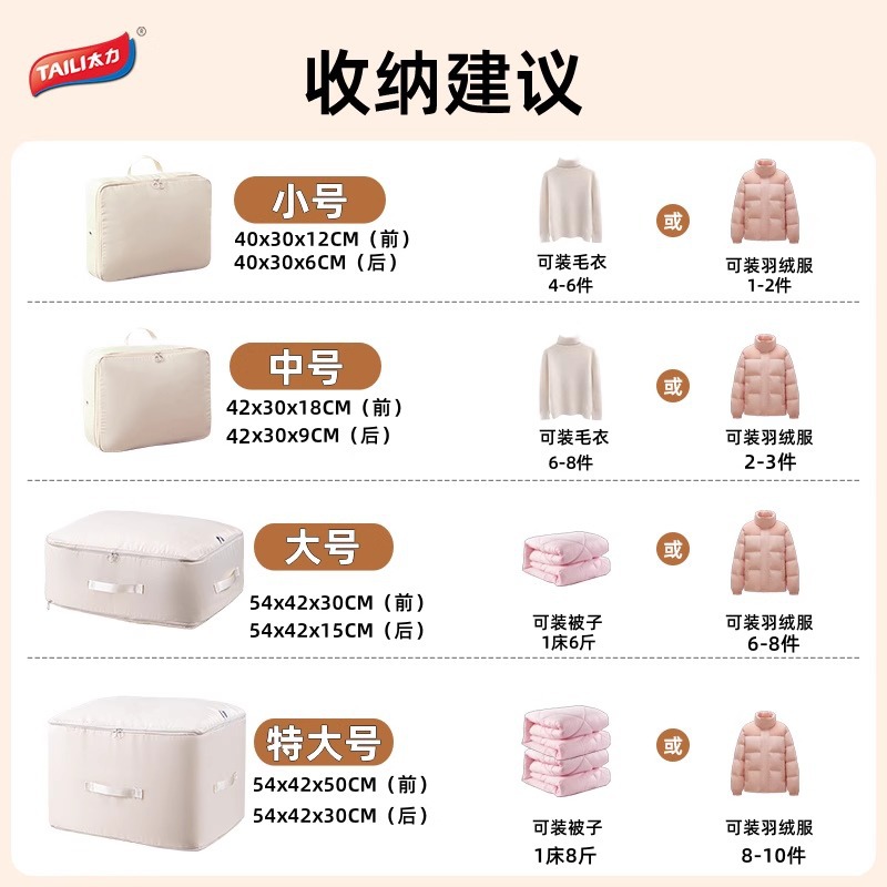 太力被子收纳袋羽绒服旅行装衣服棉被收纳袋大容量搬家袋子搬家用
