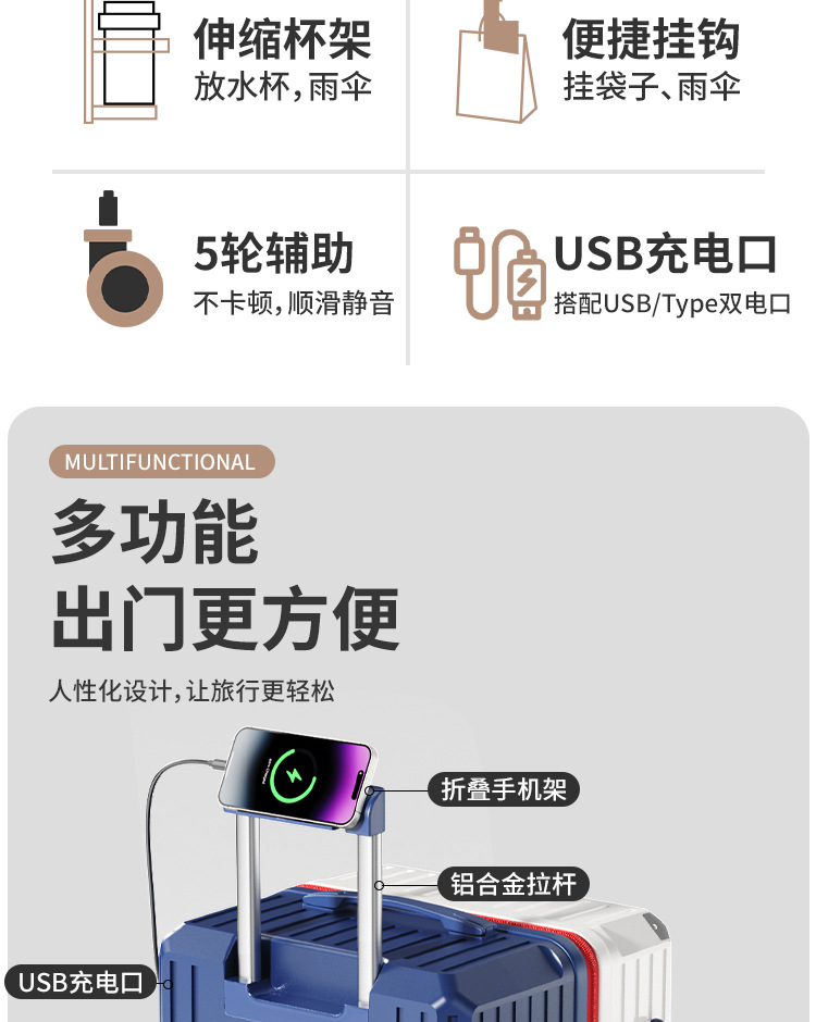 超大容量五轮行李箱刹车减震轮结实耐用密码箱新款万向轮拉杆箱子