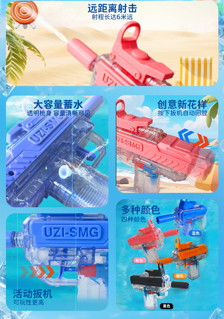 新款乌兹儿童喷水枪迷你手动连发夏季户外沙滩戏水小水枪玩具批发