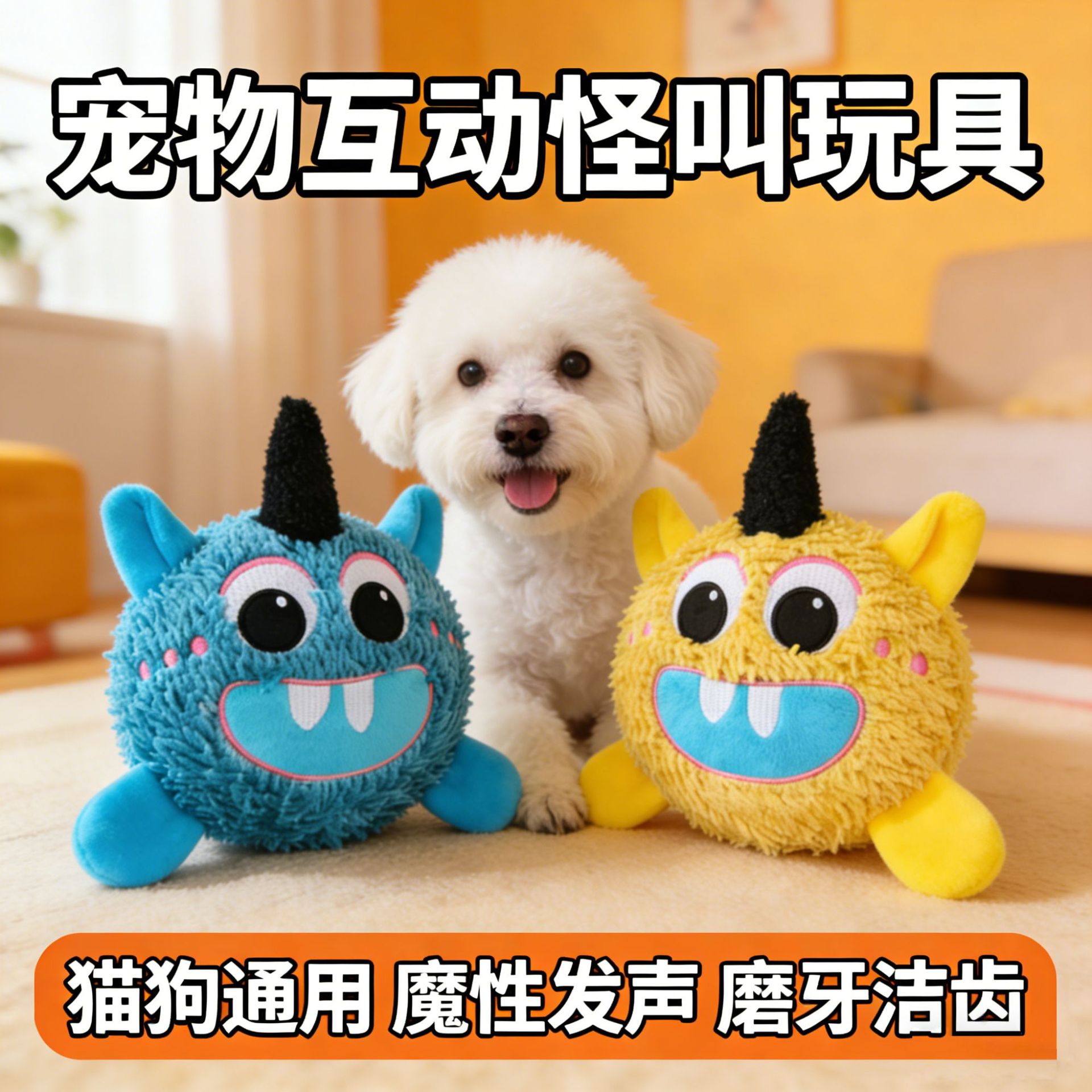 狗狗玩具互动怪叫发声拖把绒独角兽金毛柯基泰迪比熊宠物毛绒玩具