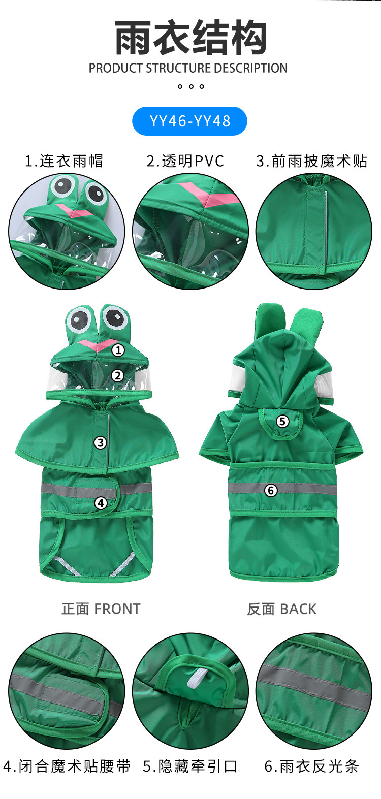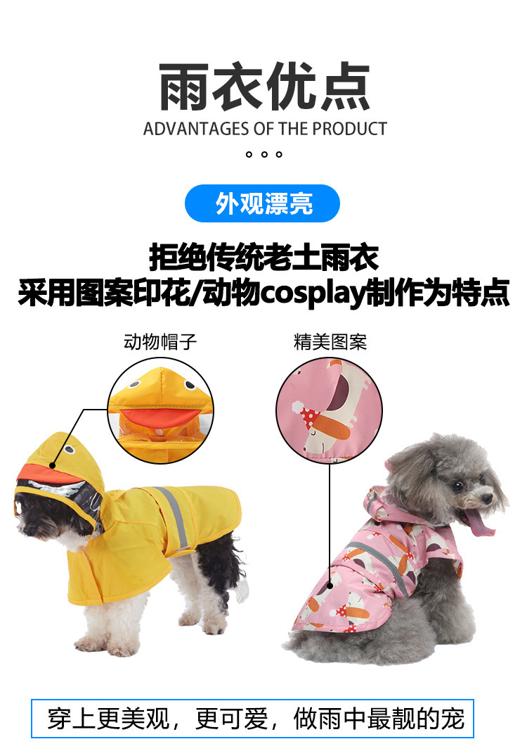 跨境狗狗专用雨衣动物造型连脚包肚可牵引小中大型犬通用宠物雨披