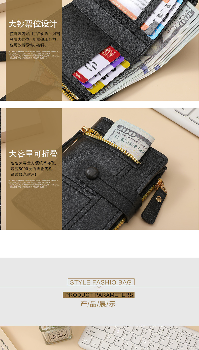 大容量短款零钱包双折女士钱包ins女小钱包女款高级感小折叠钱包