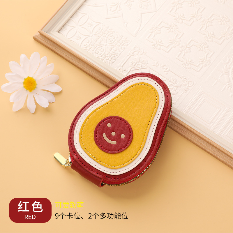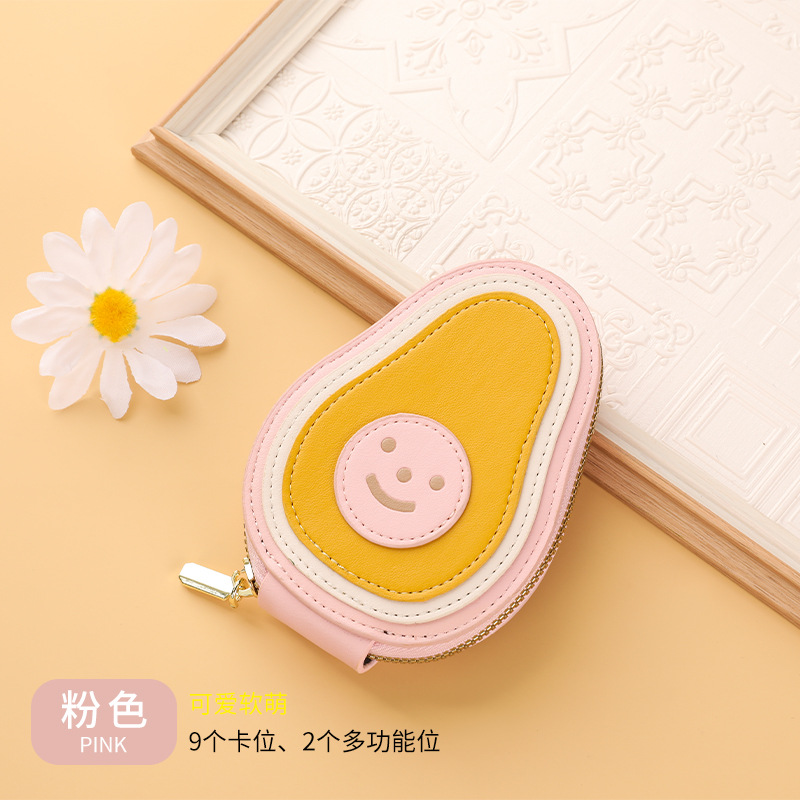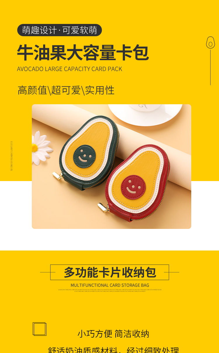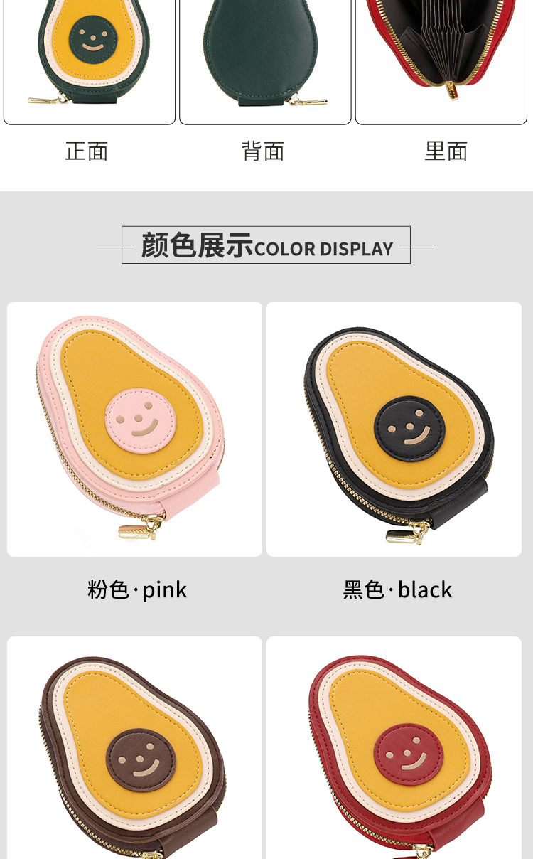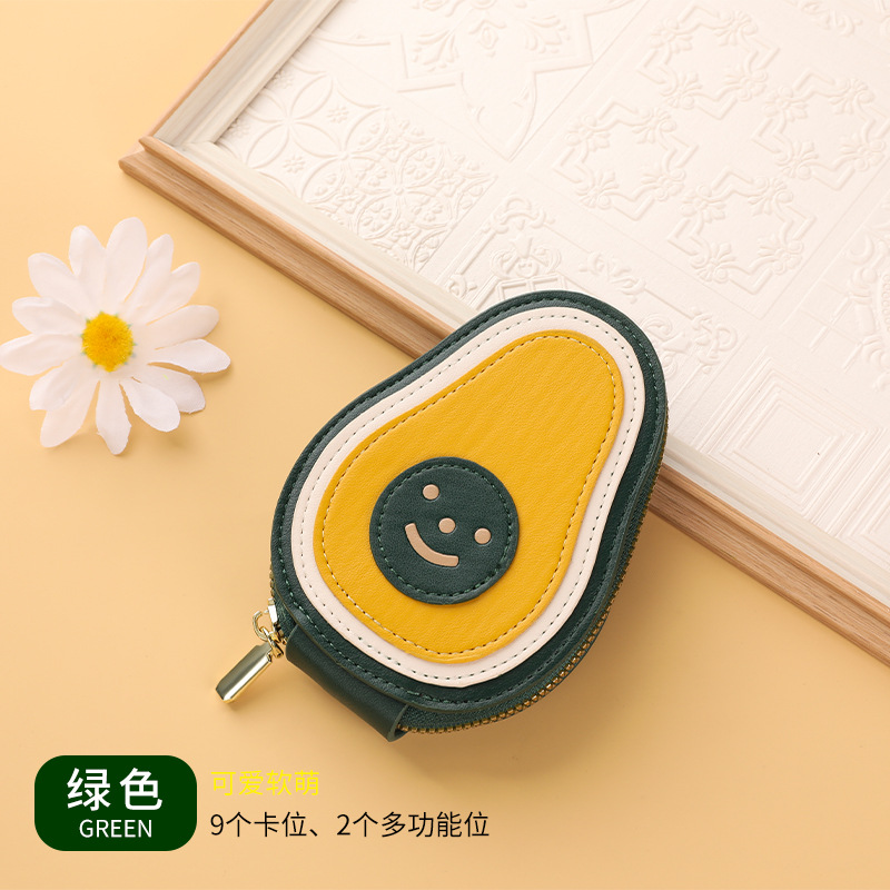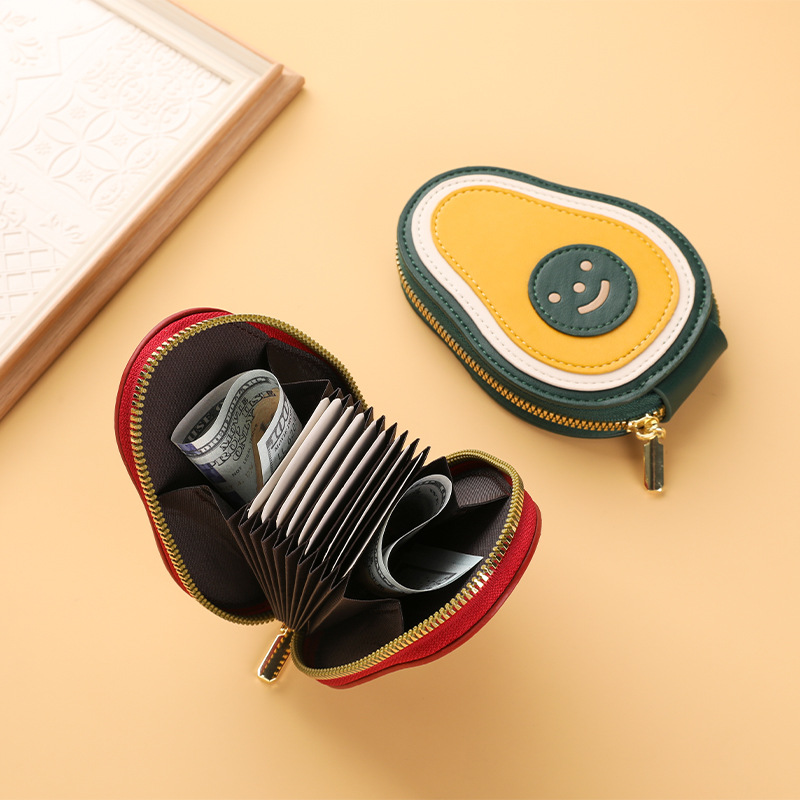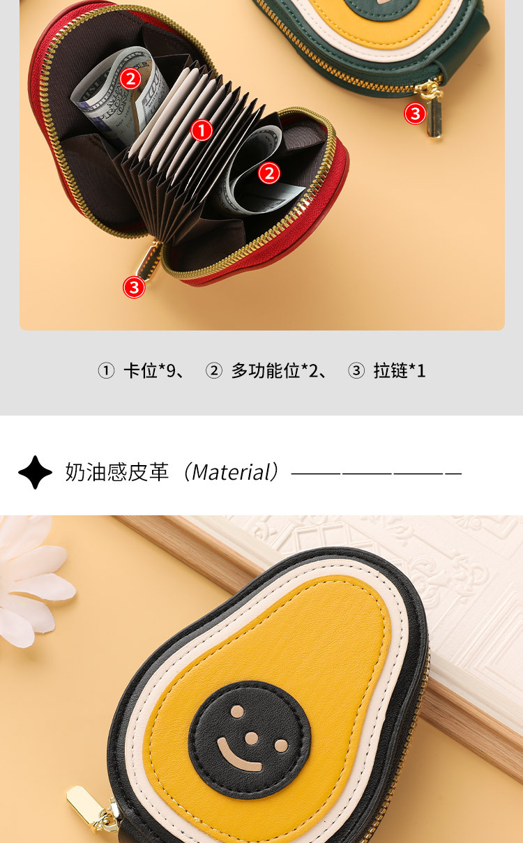 新款多卡位证件零钱包卡通牛油果卡包创意新潮牛油果型风琴卡包