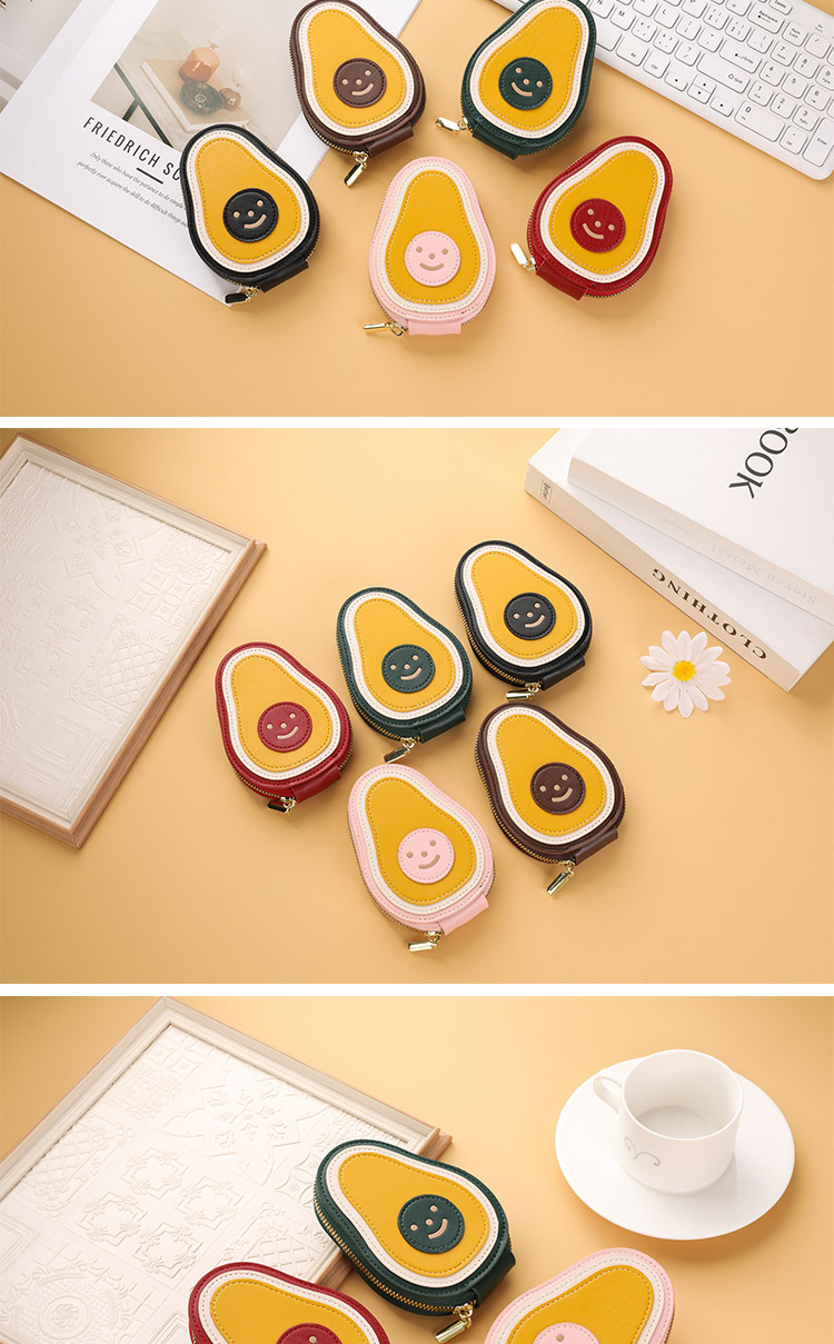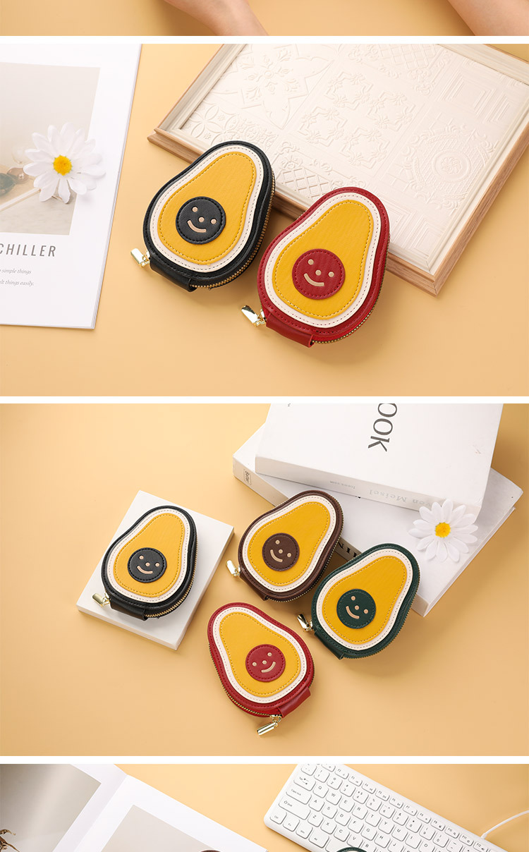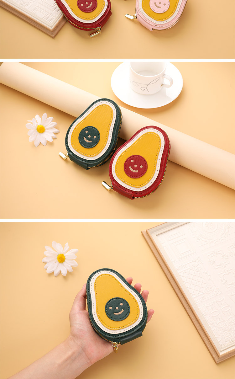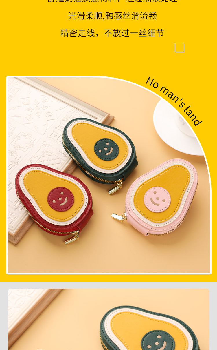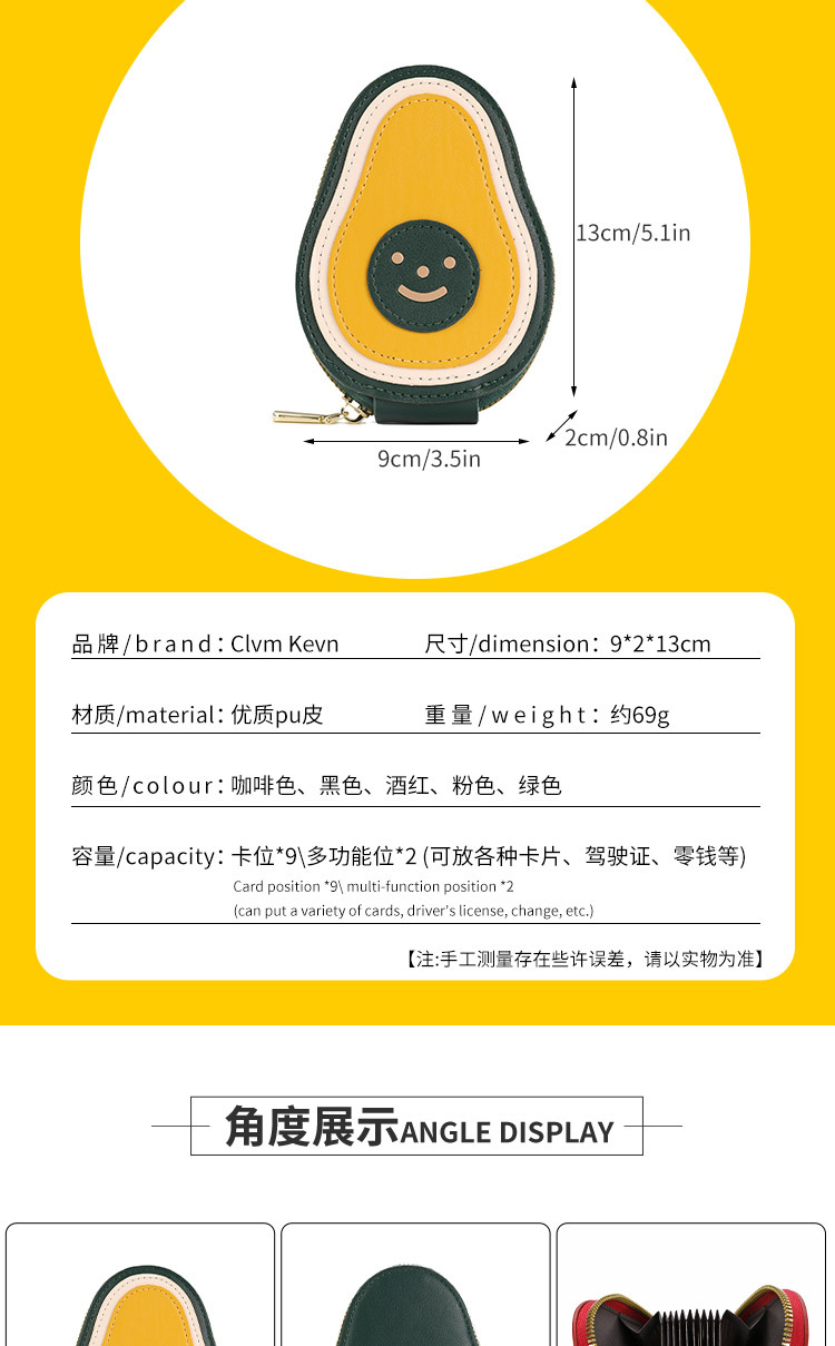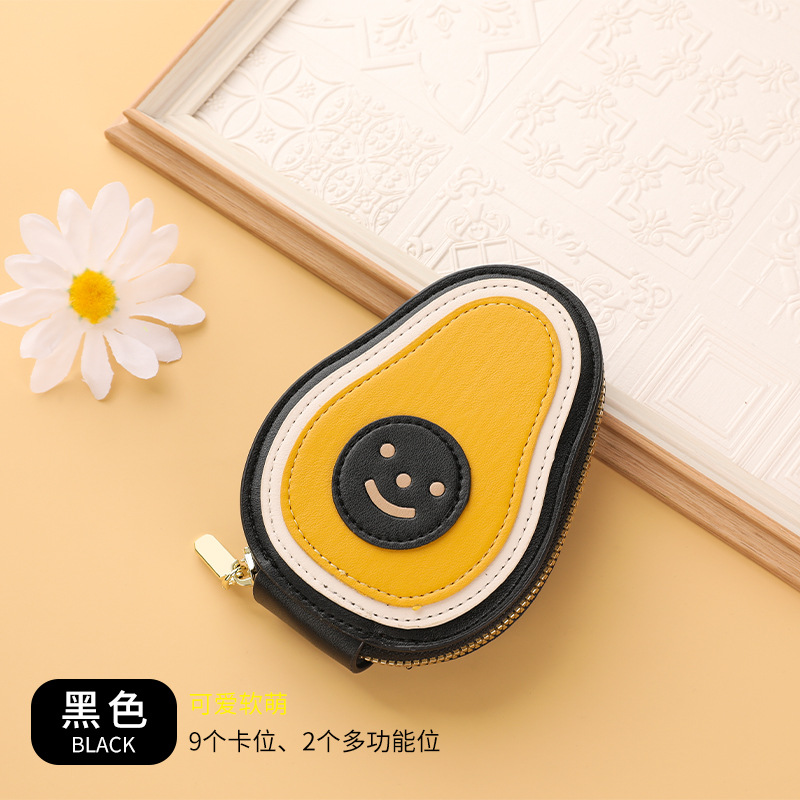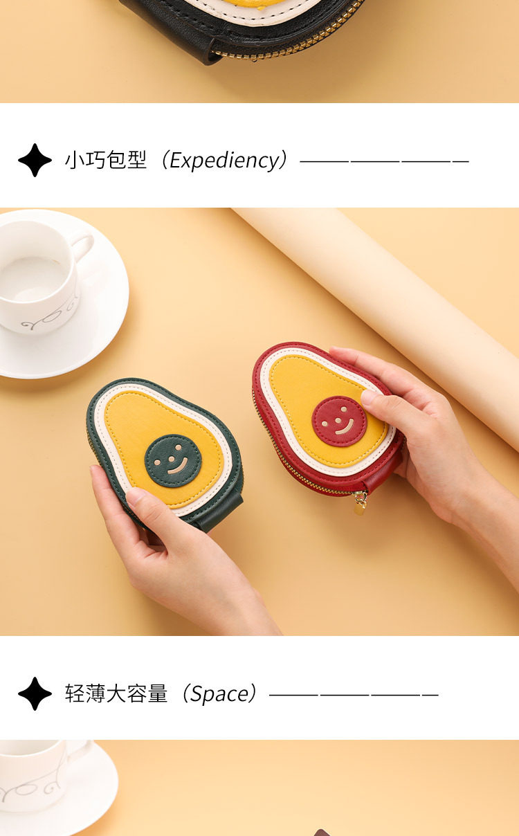 新款多卡位证件零钱包卡通牛油果卡包创意新潮牛油果型风琴卡包