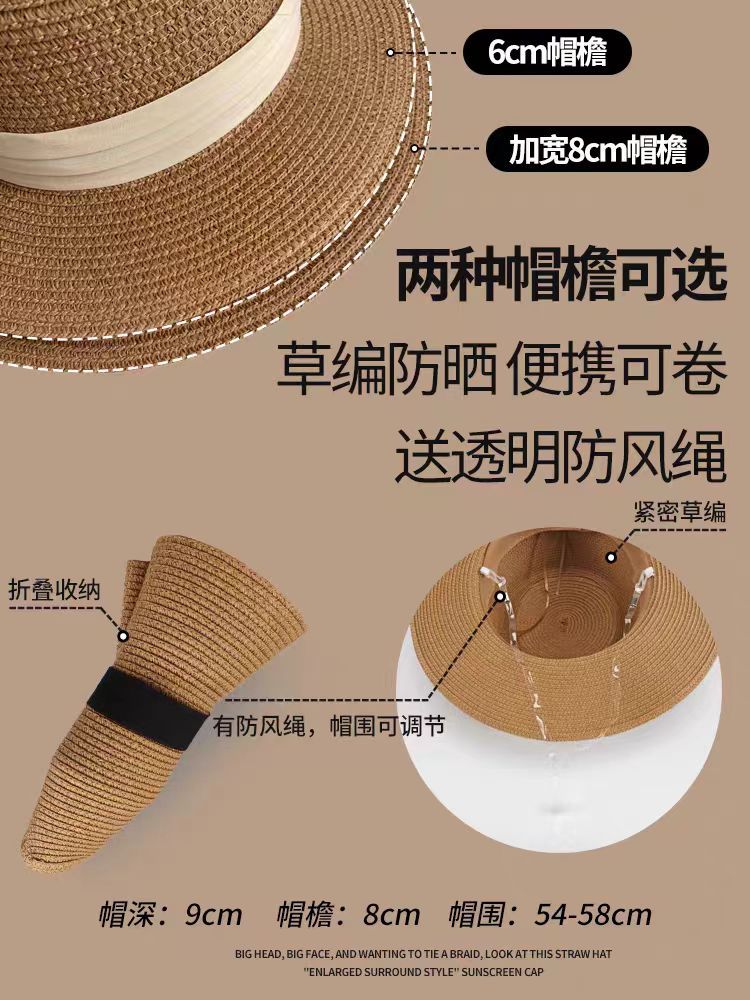 2026新款法式女大头围海边沙滩礼帽编织防晒太阳帽子夏季