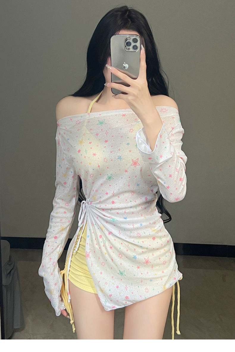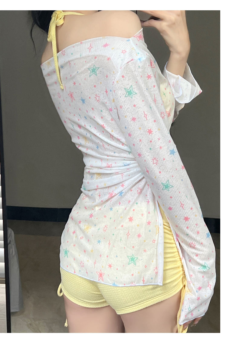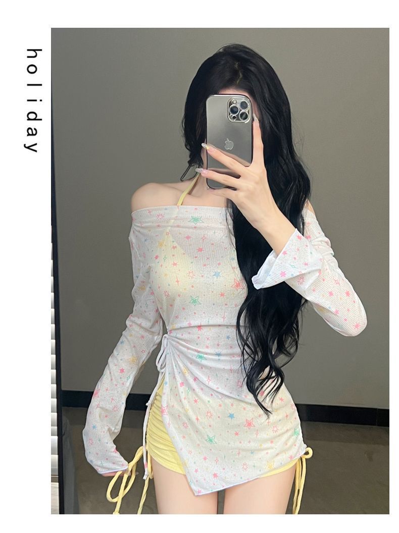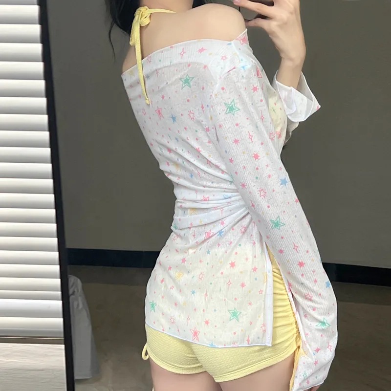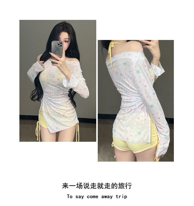 分体泳衣批发新款三件套女士长袖防晒小清新甜美纯欲沙滩度假泳衣