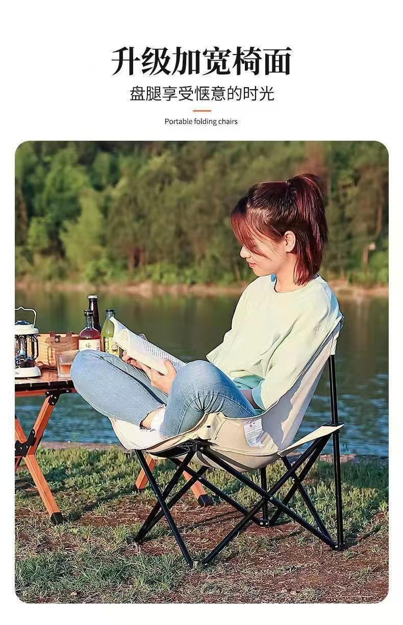 定制露营月亮椅沙滩垂钓椅写生椅钓鱼凳好收纳野营户外露营折叠椅