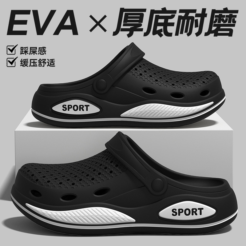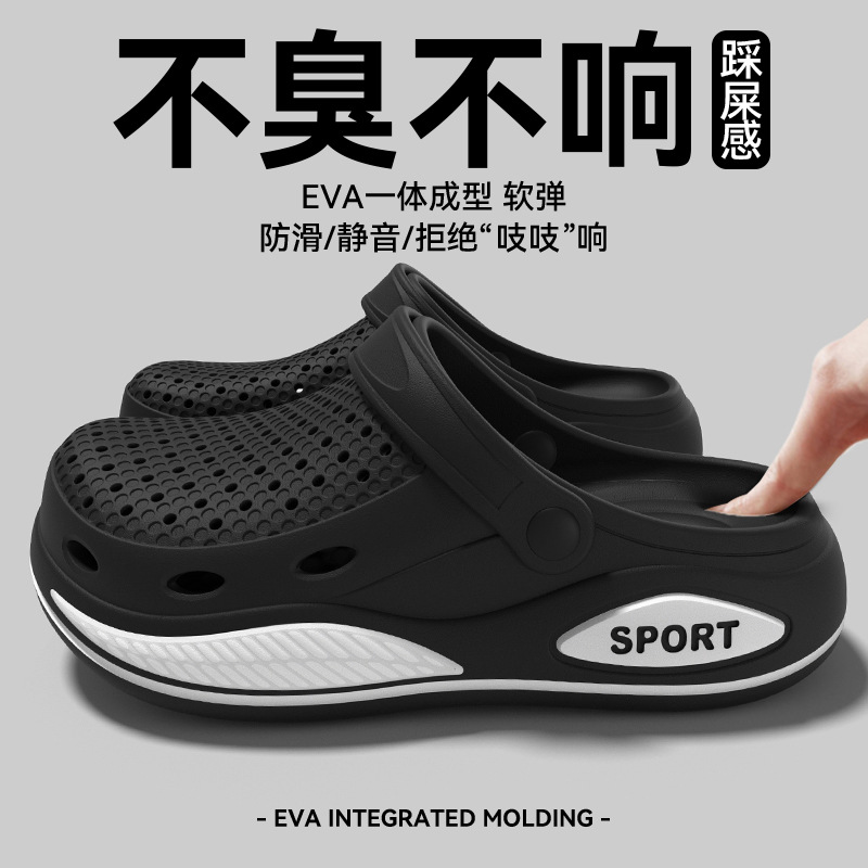 洞洞鞋男士夏季外穿2026新防滑不臭脚厚底沙滩透气两穿包头凉拖男