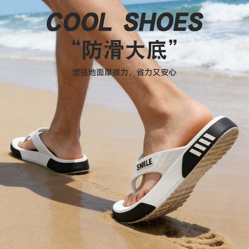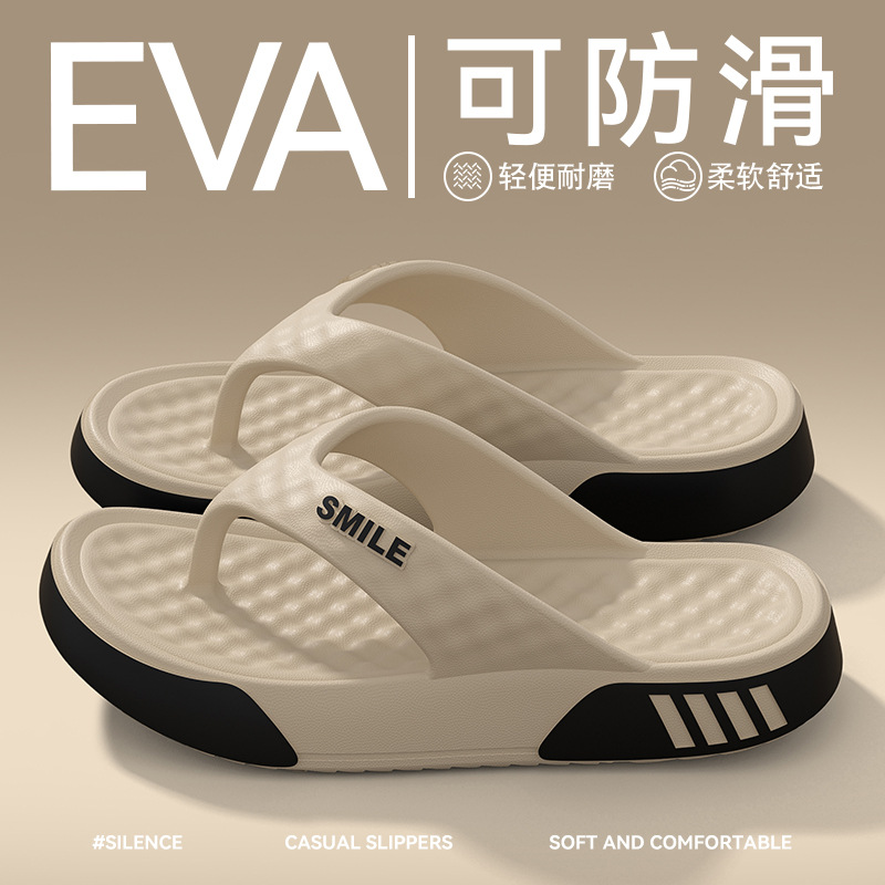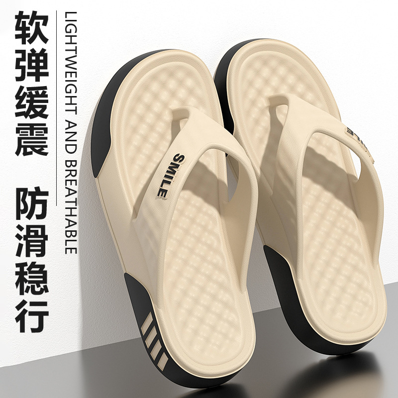 厚底人字拖男士夏季踩屎感防臭静音居家户外沙滩游泳防滑凉拖男