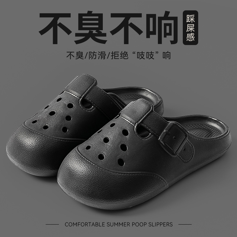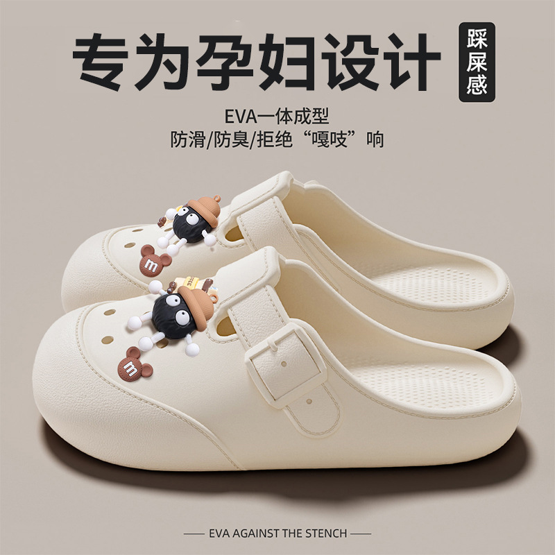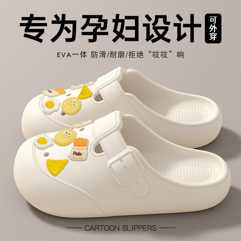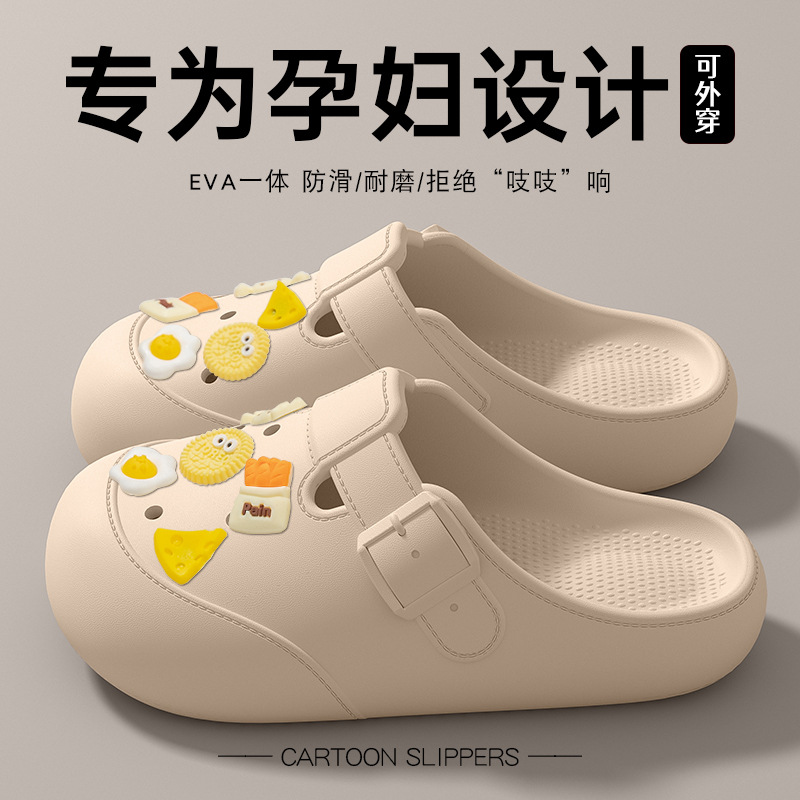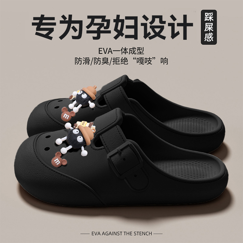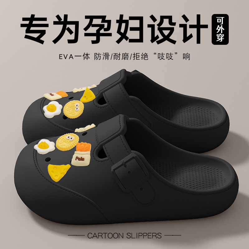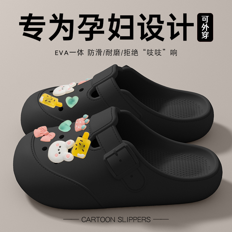 孕妇防滑洞洞鞋女款2025新款外穿夏季海边沙滩软底包头半凉拖女士
