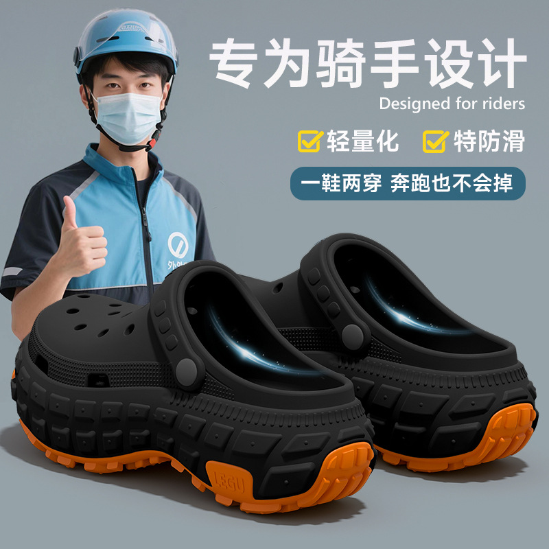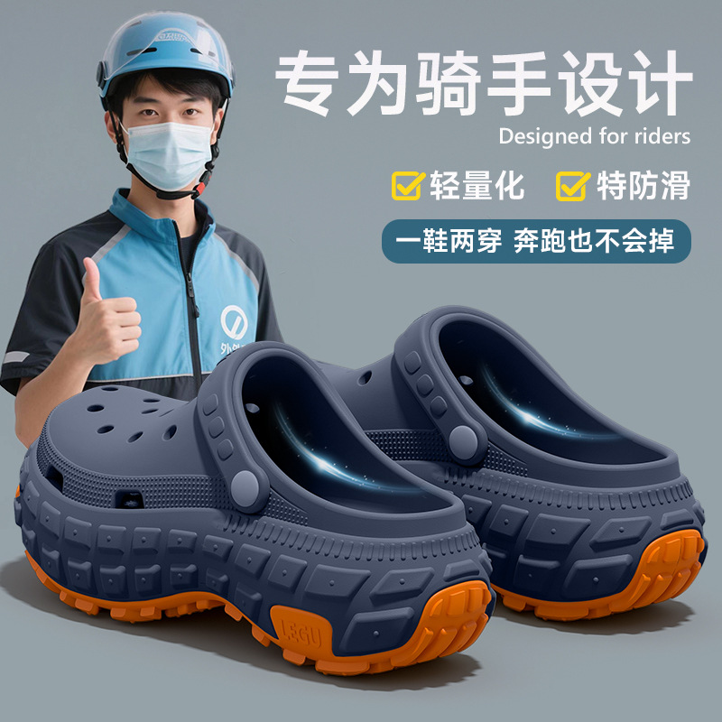 强防滑跑外卖骑手专用男士洞洞鞋男款透气耐磨防臭轻便工作凉拖鞋