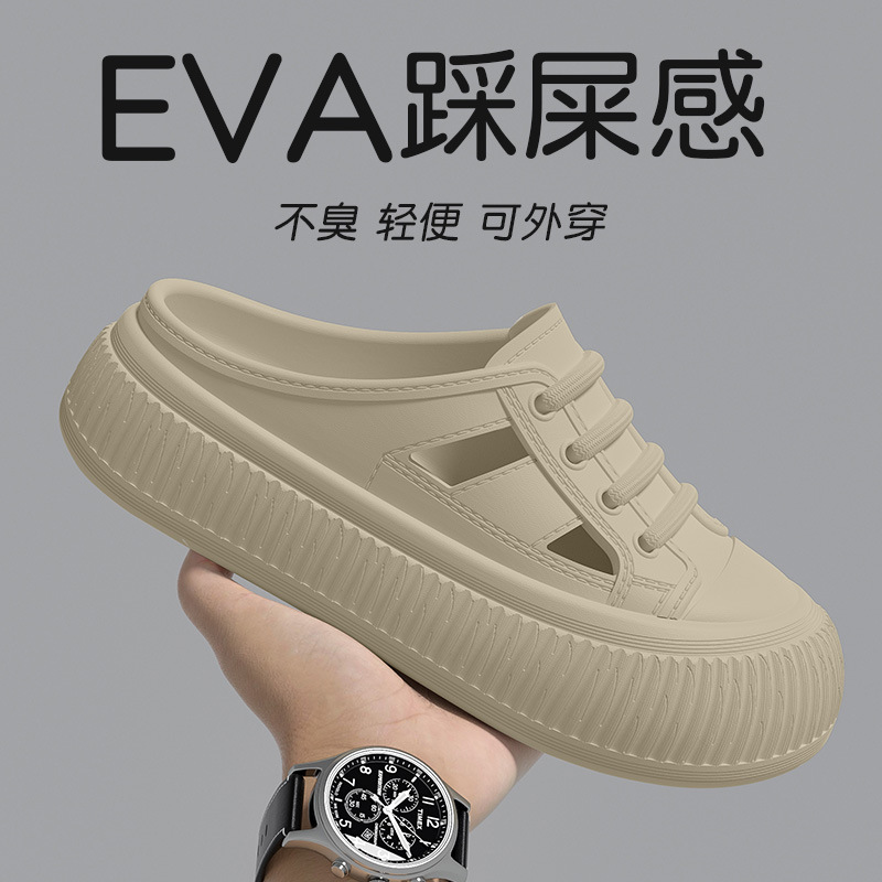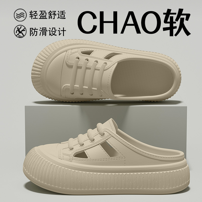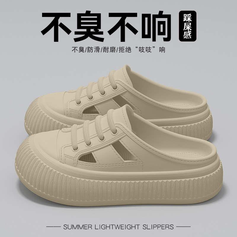 厚底洞洞鞋女夏季2025新款外穿防滑透气踩屎感海边沙滩罗马凉拖鞋